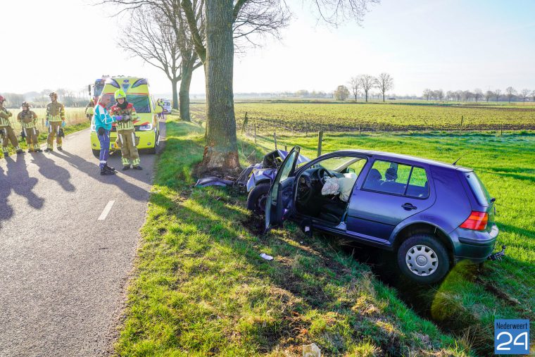 Een automobilist is zondagmorgen met zijn personenauto hard tegen een boom gebotst. Dat gebeurde rond acht uur op de Moostdijk in Ospel.