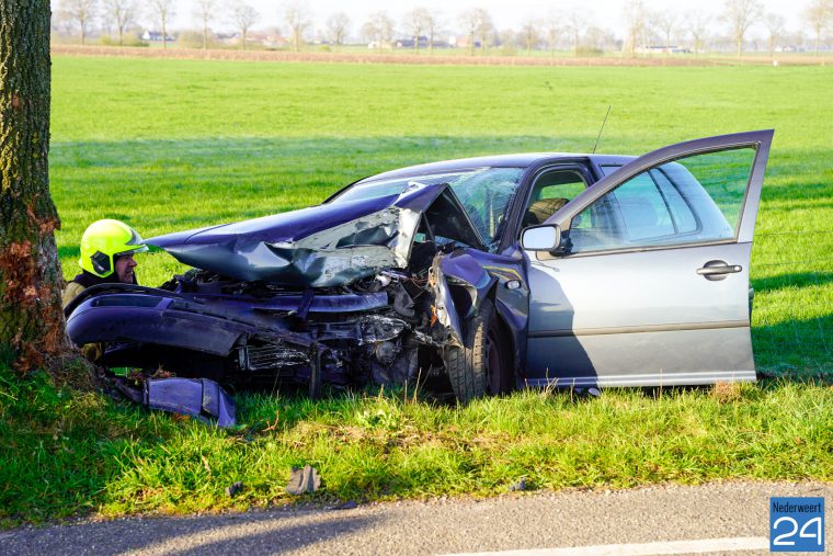 Een automobilist is zondagmorgen met zijn personenauto hard tegen een boom gebotst. Dat gebeurde rond acht uur op de Moostdijk in Ospel.