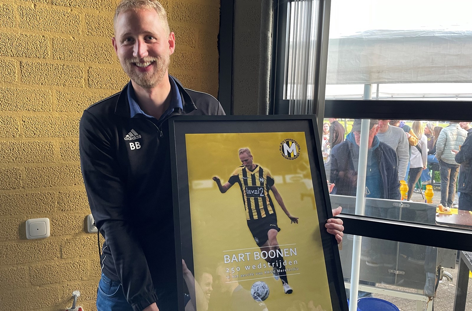 “Bart, namens alle Merefeldianen van harte gefeliciteerd met deze bijzondere mijlpaal en we hopen dat je nog lang onze geelzwarte kleuren verdedigt,” zo schrijft het bestuur van Merefeldia.