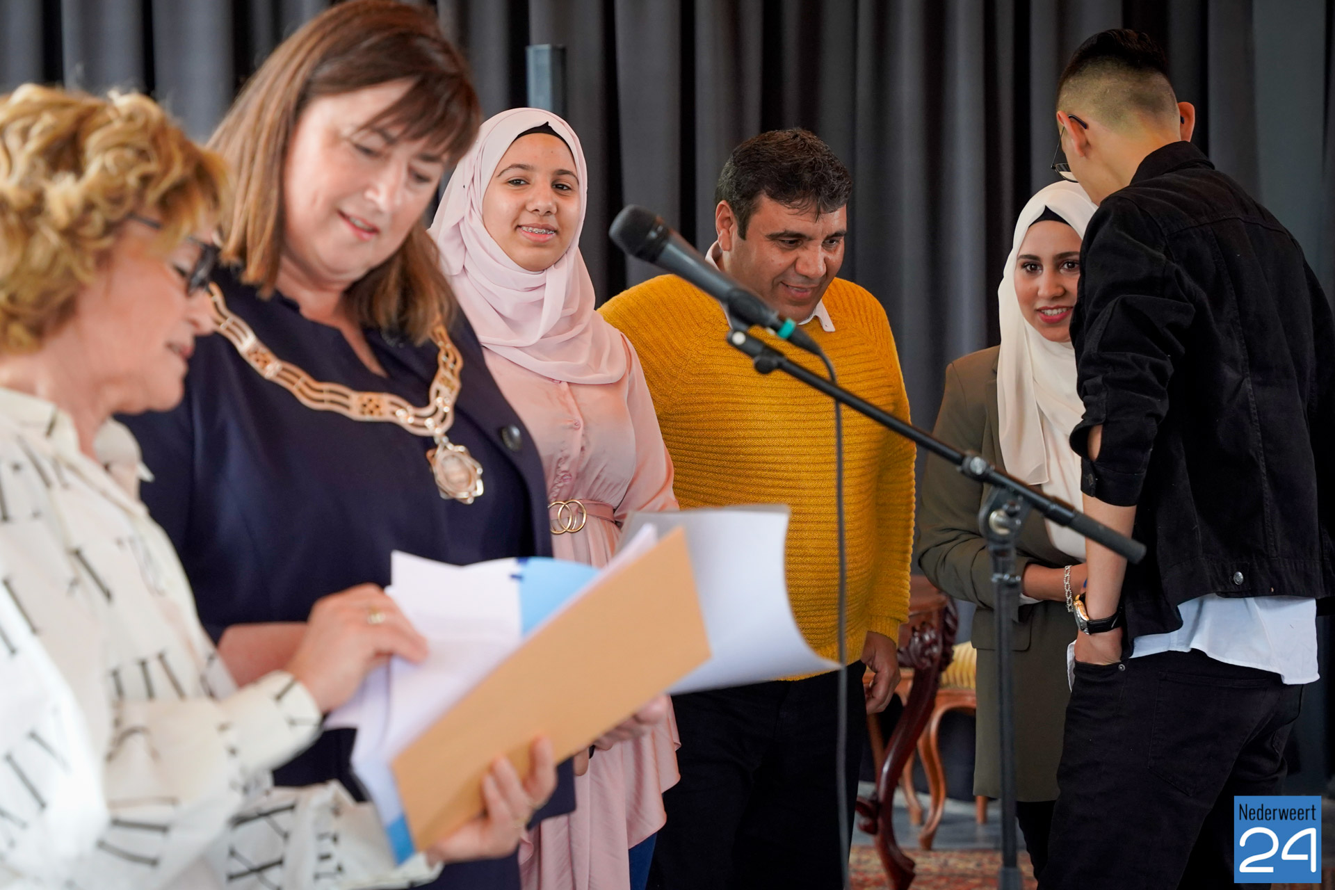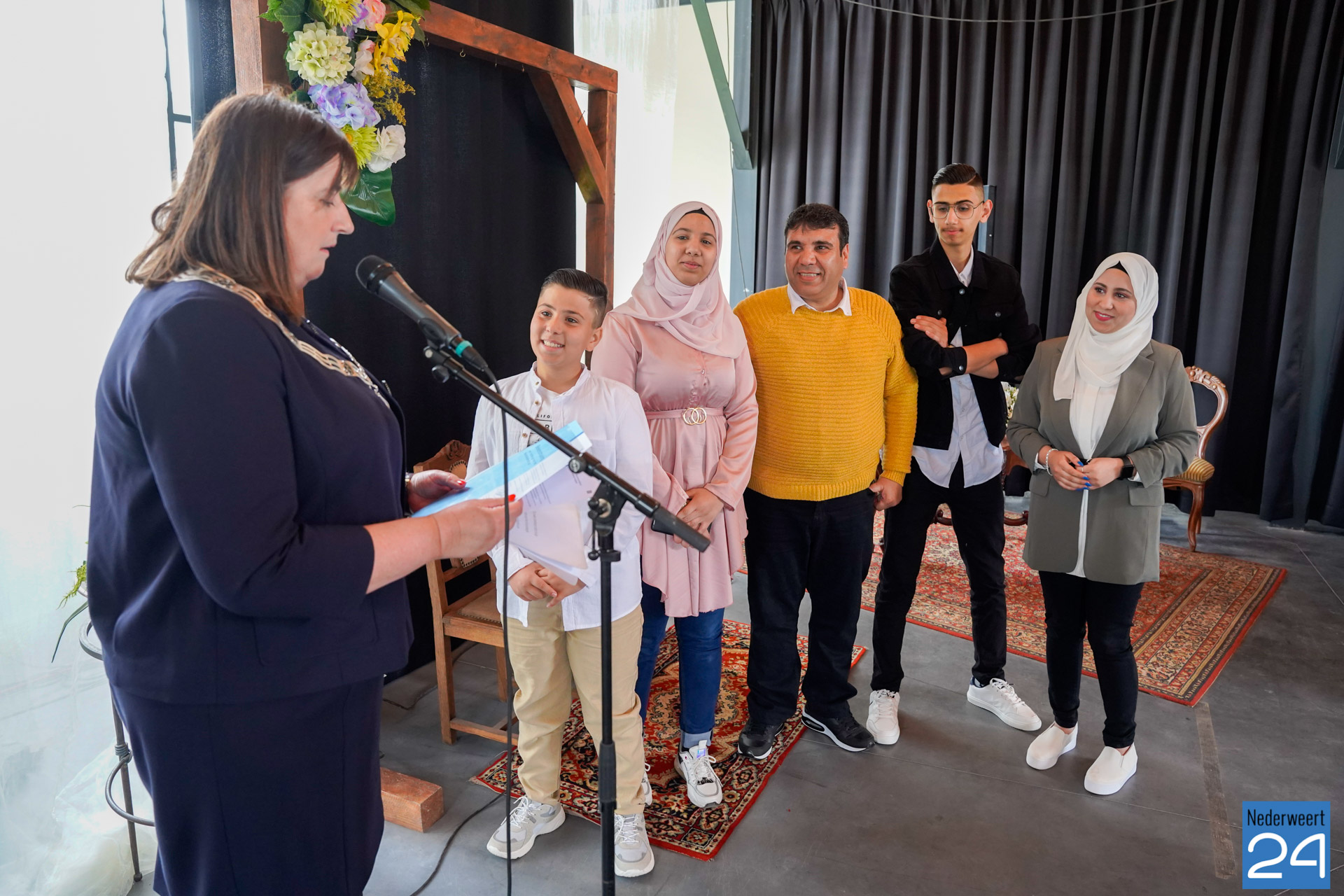 Burgemeester Op de Laak: “Met het opheffen van de beperkende coronamaatregelen zijn deze nieuwe Nederlanders uitgenodigd voor de naturalisatieceremonie. Een waardevol moment om ze welkom te heten.” De meerderheid van de aanwezigen ontving het Koninklijk Besluit noodgedwongen per post in de coronaperiode. Maar bij twee gezinnen kon de burgemeester deze middag wel de verklaring van verbondenheid afnemen. En het Koninklijk Besluit en de verklaring van het Nederlanderschap weer persoonlijk uitreiken aan deze kersverse Nederlanders. “Zoals we dat gewoon zijn in Nederweert”, aldus de burgemeester.