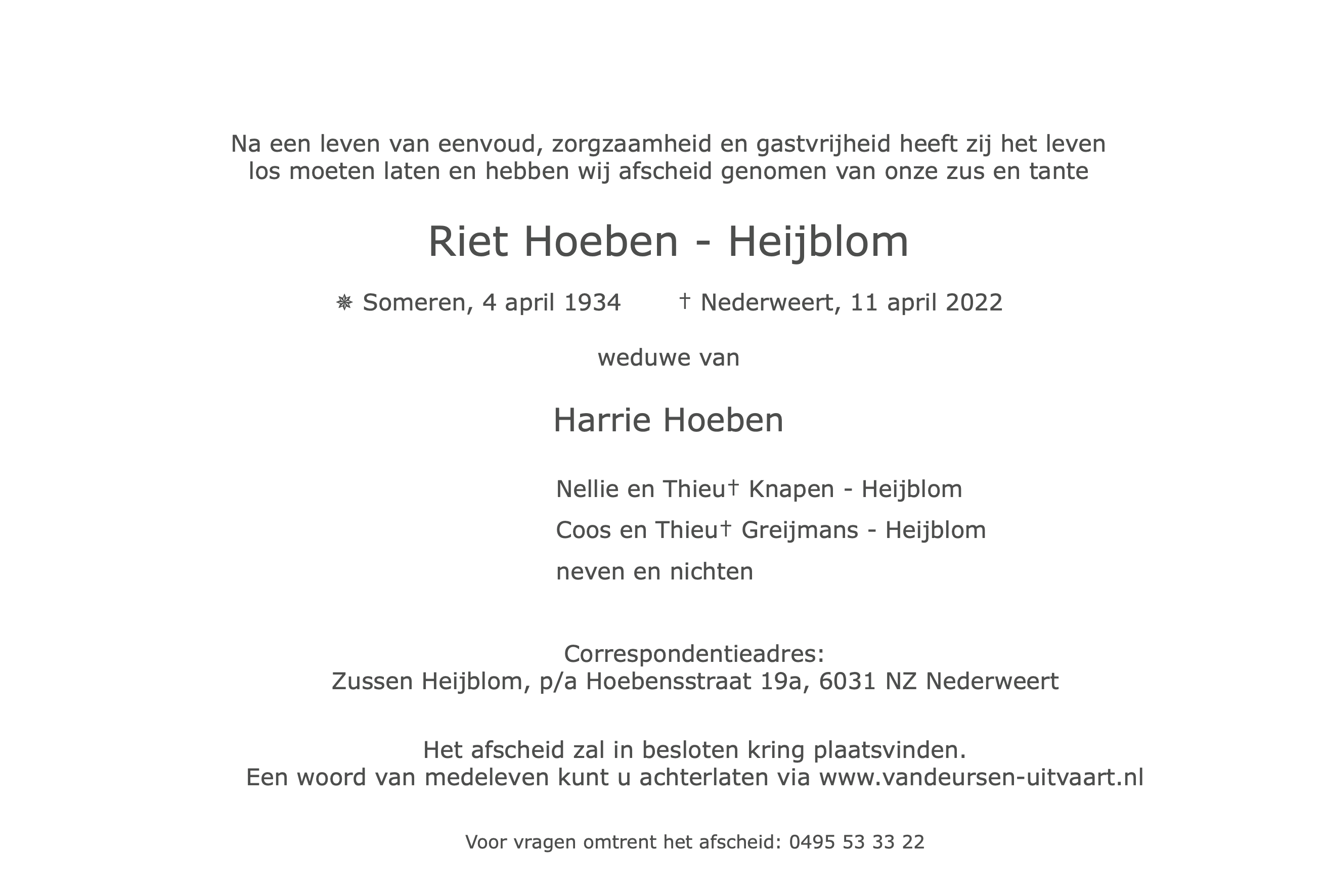 Meijel, Truus Hoeben-Gielen ( van Wiel van Tieske Hoeben-Gielen)