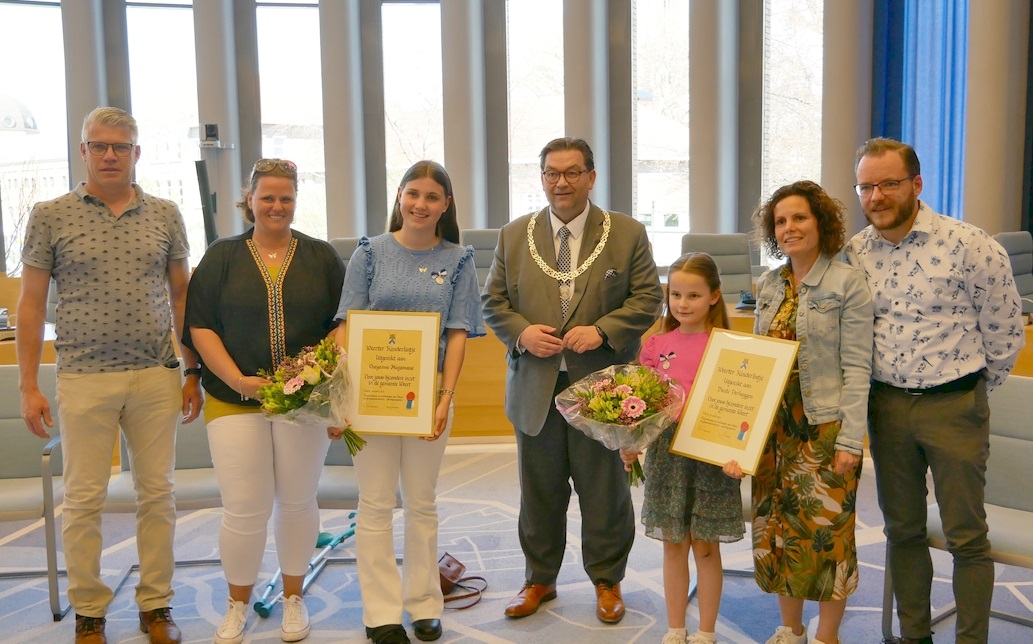 Burgemeester Raymond Vlecken reikte op woensdagmiddag 20 april aan twee kinderen een kinderlintje uit. Deze kinderen hebben zich op bijzondere wijze ingezet voor de medemens of de maatschappij. Met het kinderlintje worden zij beloond voor hun goede werk tegenover andere mensen of voor een door hen geleverde prestatie.