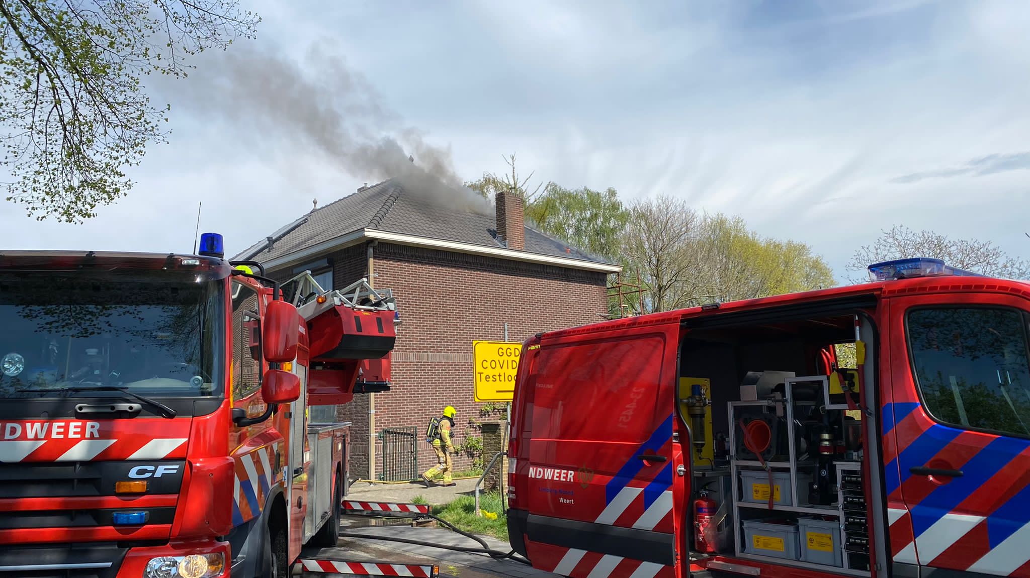 De brandweer schaalde op naar middelbrand en kwam met twee blusvoertuigen, een ladderwagen en een waterwagen ter plaatse. Zover bekend bleef iedereen ongedeerd.
