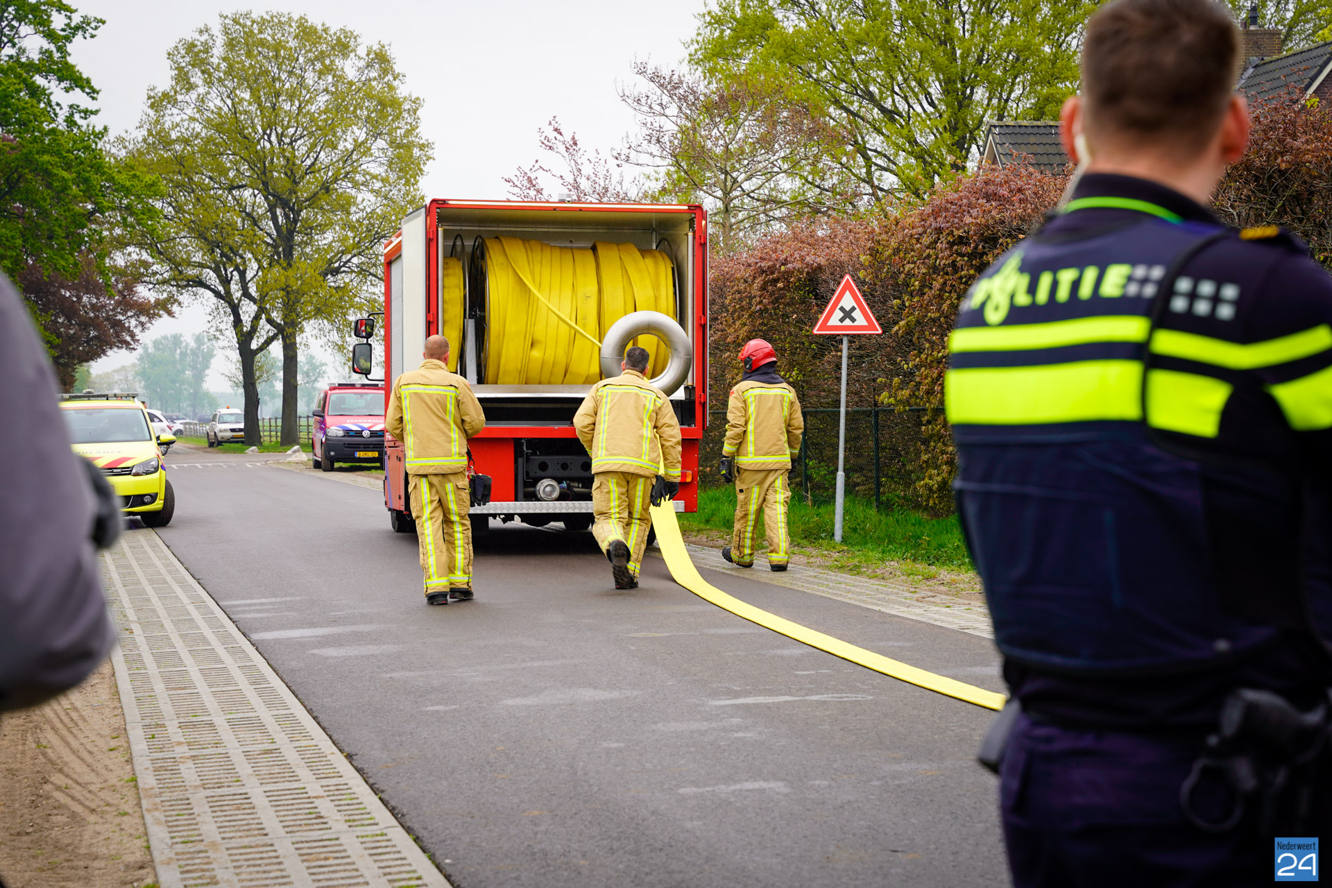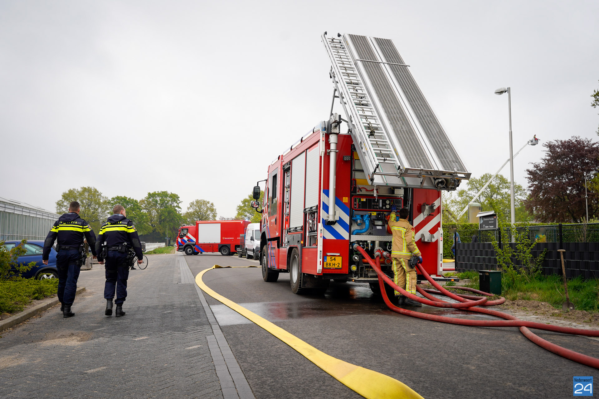 De brandweer probeert te voorkomen dat de brand overslaat naar andere gebouwen. In de buurt van de stallen, die als verloren moeten worden beschouwd, staan nog meer stallen en een woonhuis. Hoeveel kippen er in de stal zitten is nog niet duidelijk.
