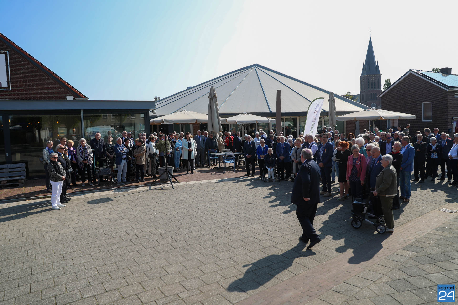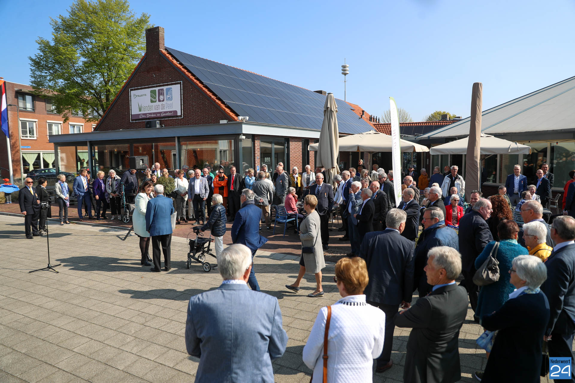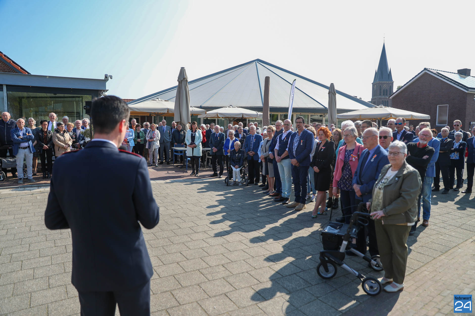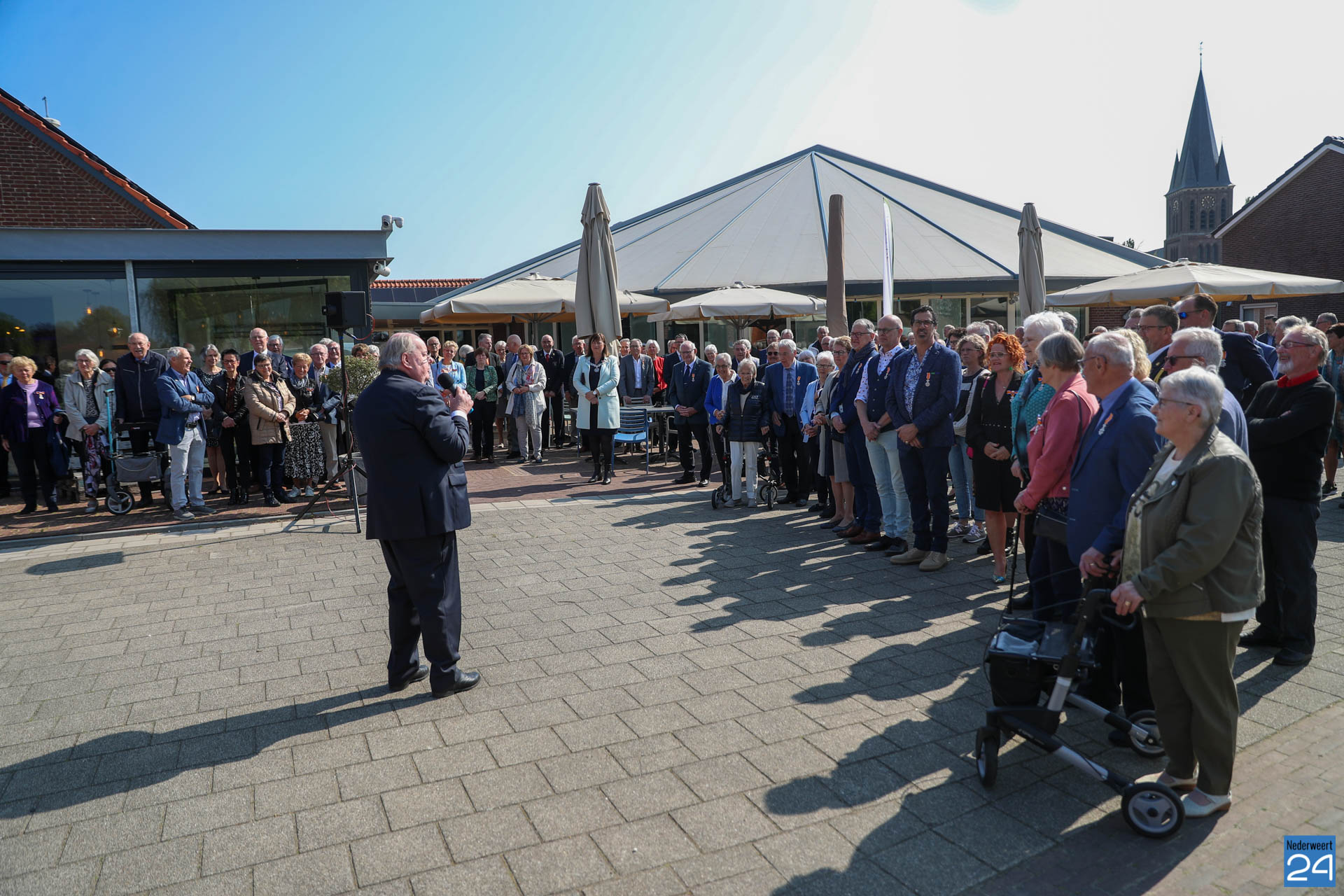 Omdat er werkzaamheden in het gemeentehuis plaatsvinden vanwege de verduurzaming van het gebouw, ontvangende gemeente het gezelschap dit jaar in de Haaze-Hoof in Ospel. Op het Aerthijsplein in Ospel ontvingen de gedecoreerde een aubade door Harmonie Sint Joseph Nederweert samen met Harmonie Melodie der Peel Ospel.