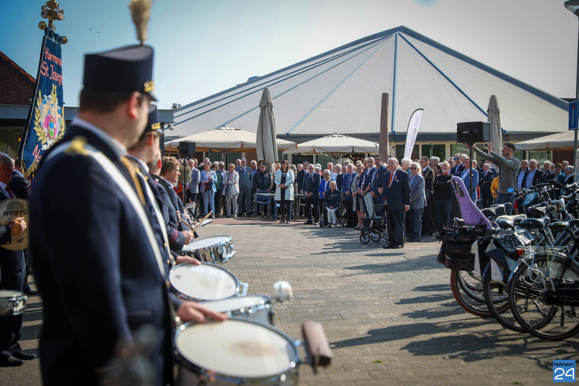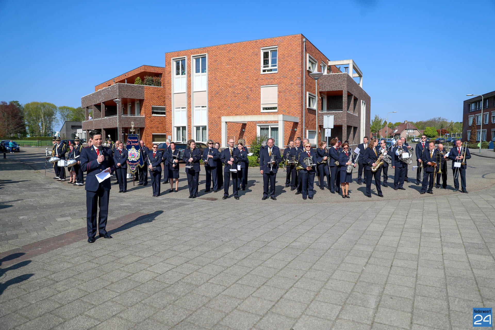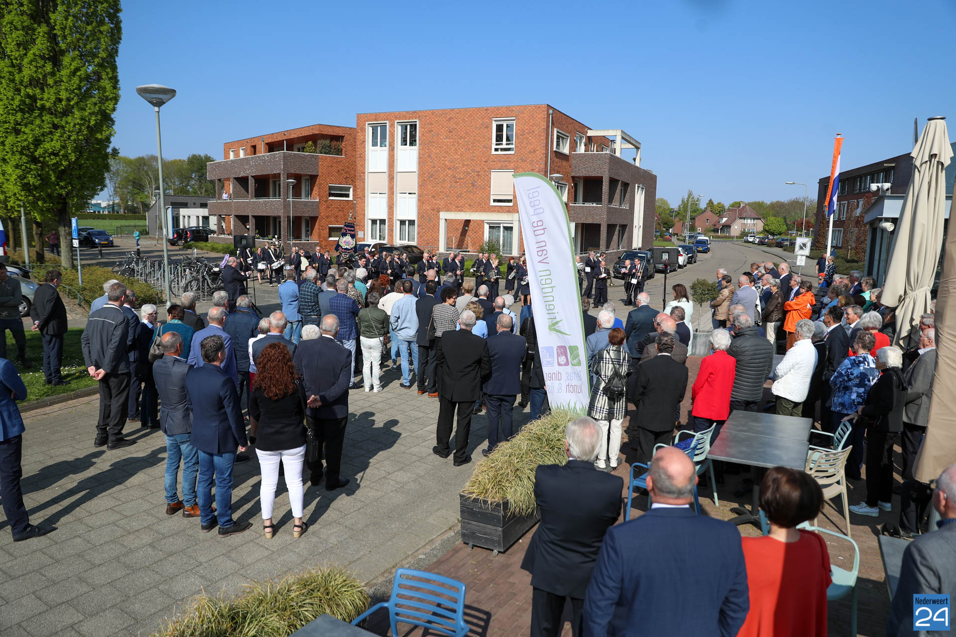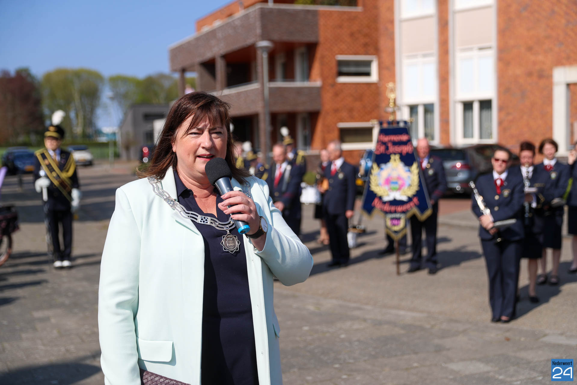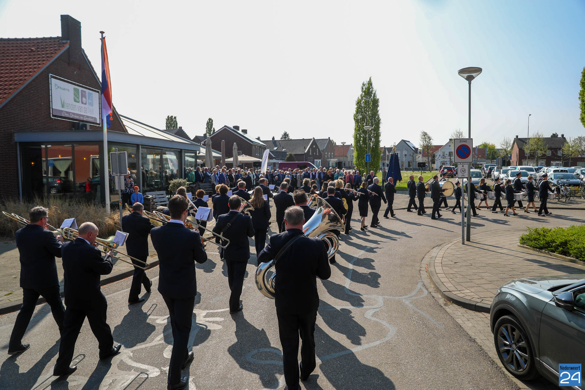 Omdat er werkzaamheden in het gemeentehuis plaatsvinden vanwege de verduurzaming van het gebouw, ontvangende gemeente het gezelschap dit jaar in de Haaze-Hoof in Ospel. Op het Aerthijsplein in Ospel ontvingen de gedecoreerde een aubade door Harmonie Sint Joseph Nederweert samen met Harmonie Melodie der Peel Ospel.
