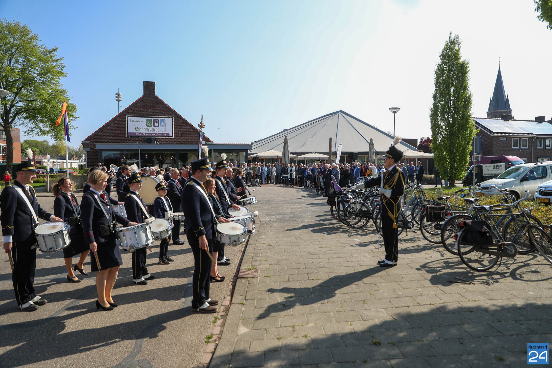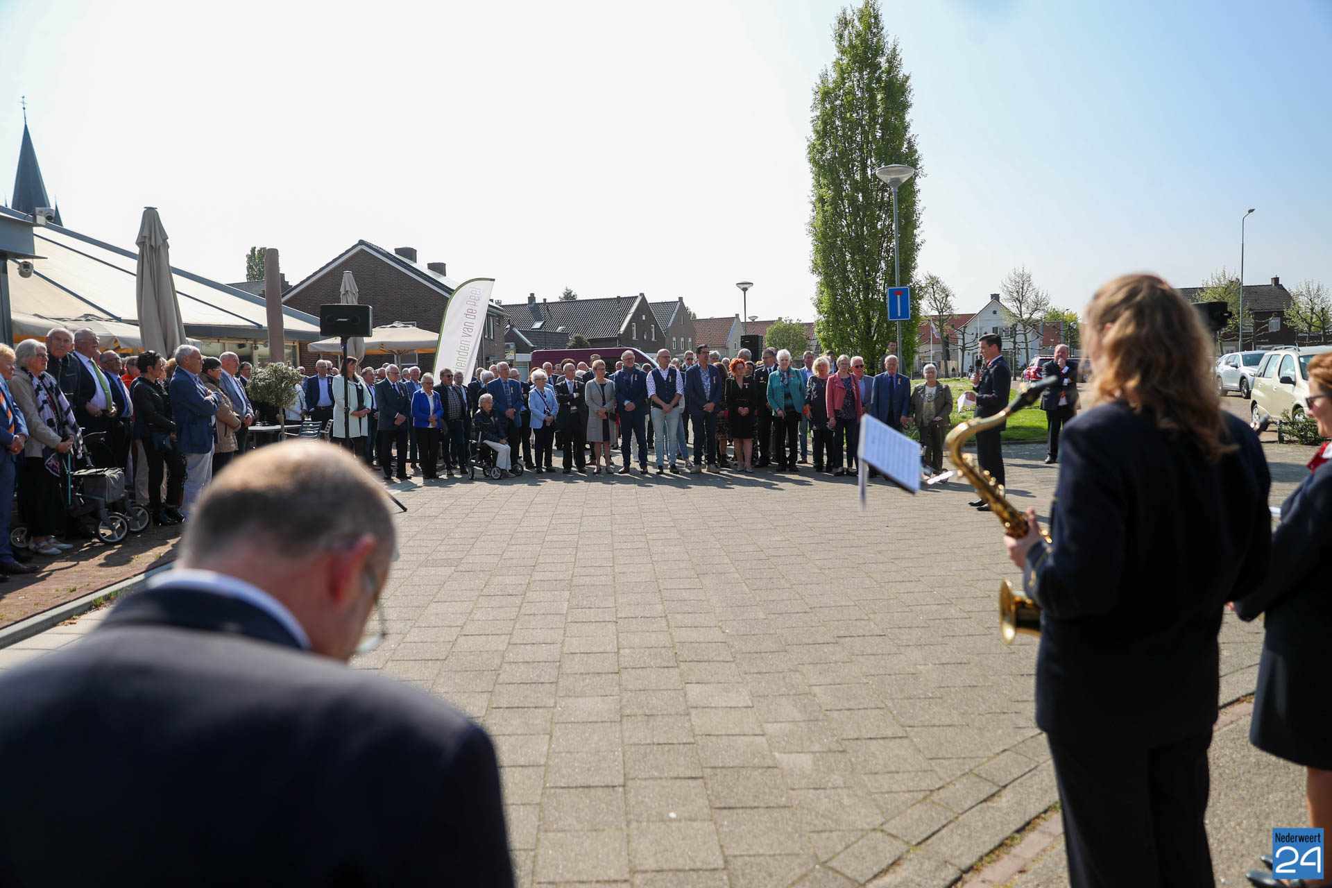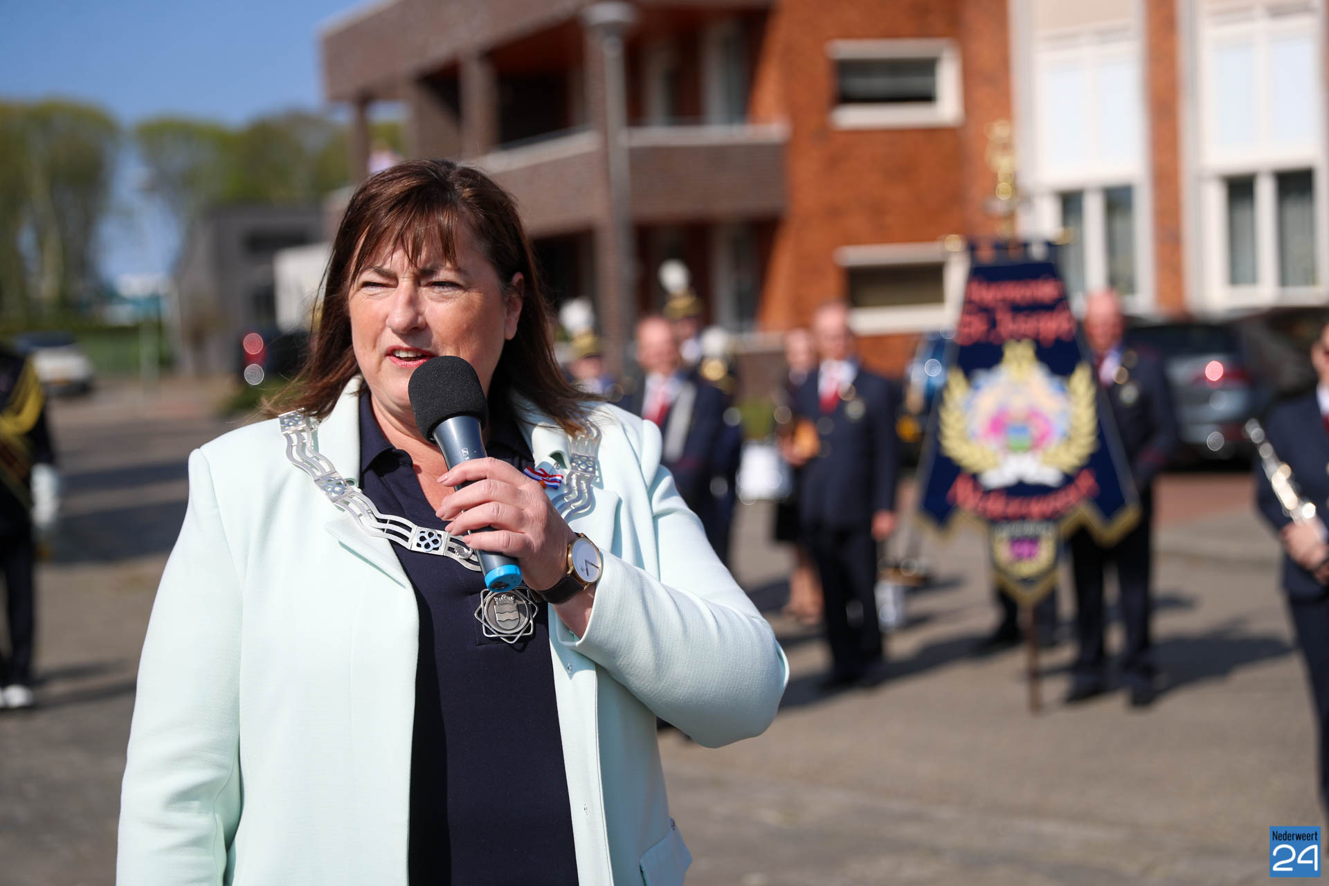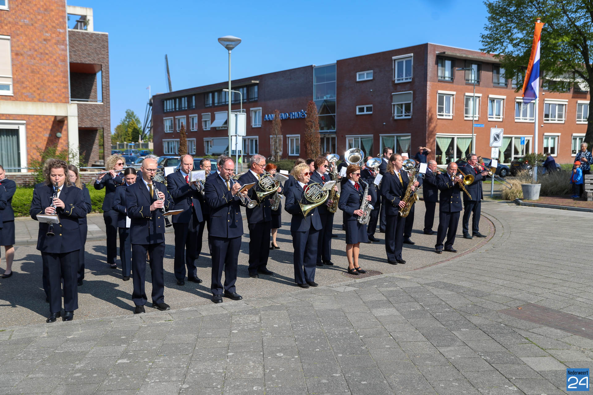 Omdat er werkzaamheden in het gemeentehuis plaatsvinden vanwege de verduurzaming van het gebouw, ontvangende gemeente het gezelschap dit jaar in de Haaze-Hoof in Ospel. Op het Aerthijsplein in Ospel ontvingen de gedecoreerde een aubade door Harmonie Sint Joseph Nederweert samen met Harmonie Melodie der Peel Ospel.