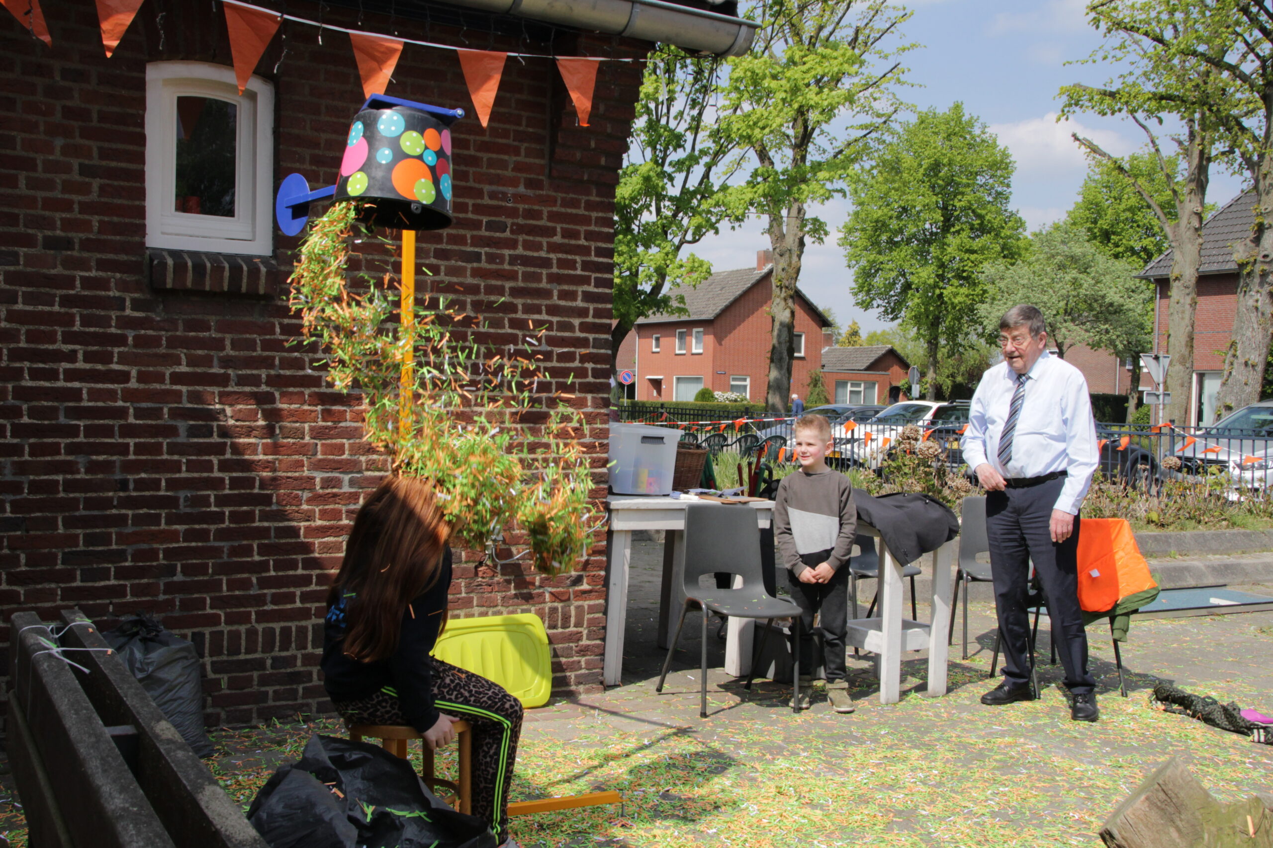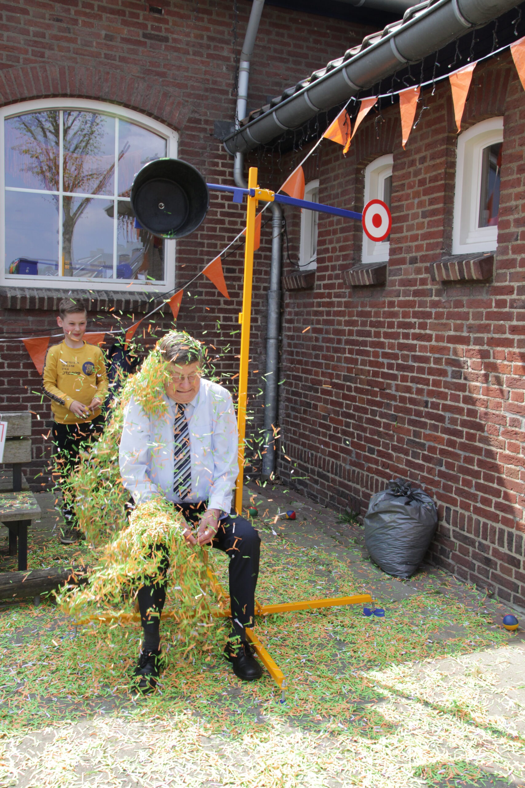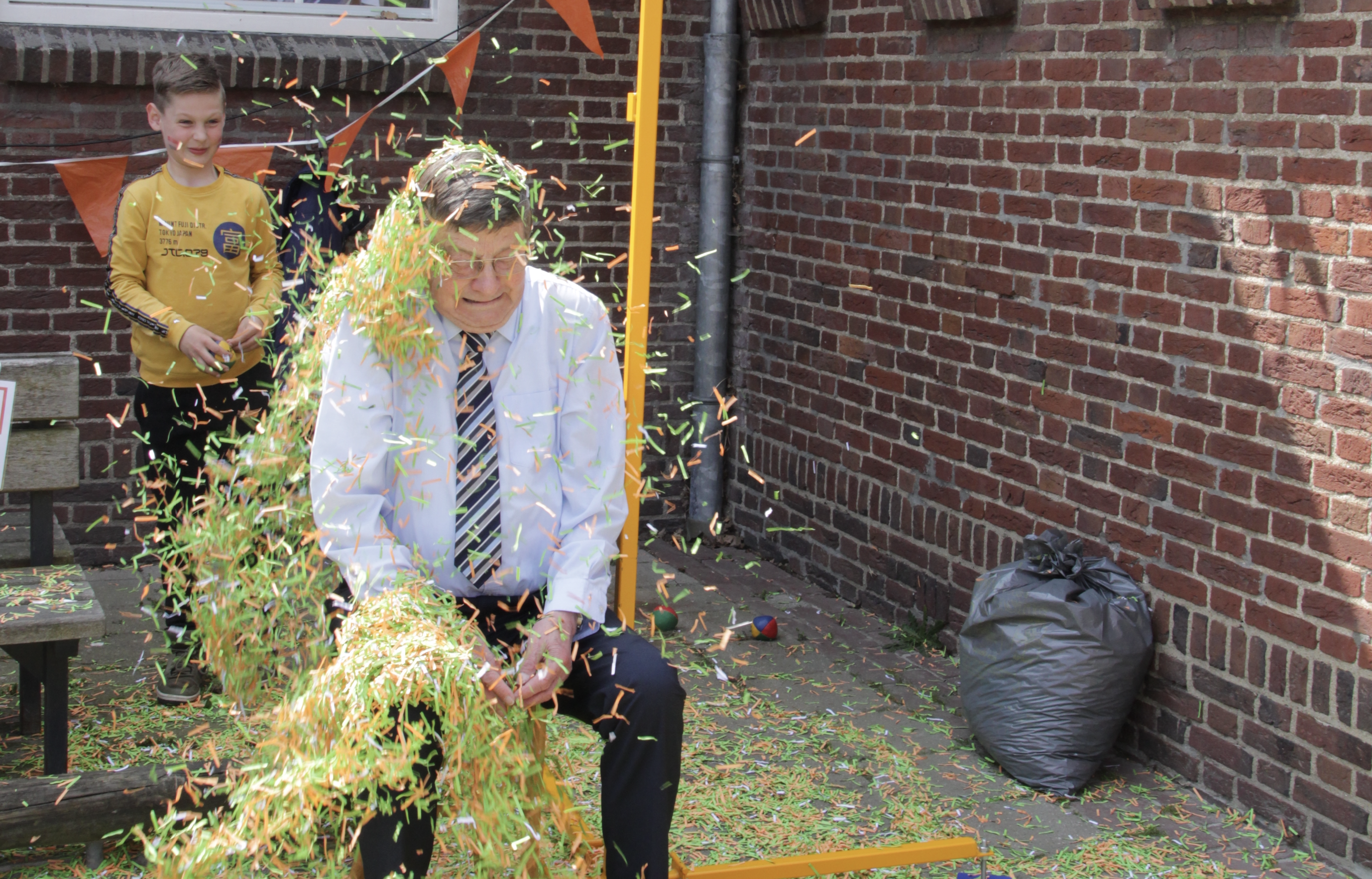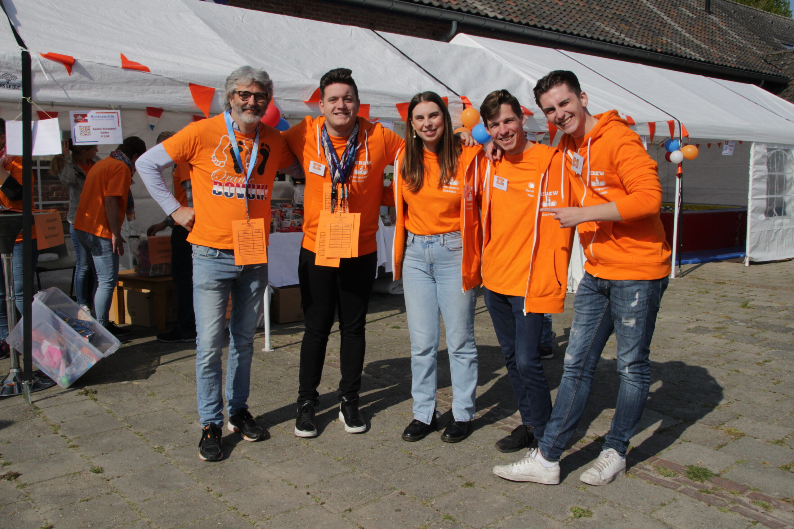 Dit jaar heeft de organisatie samen met 4 studenten van Avans Social Work in Den Bosch, Lisanne, Joris, Kevin en Max, een geweldige Koningsdag neergezet. Deze keer werden ze verrast met het bezoek van Pastoor Koumans. Dat heeft hij geweten. Ook meneer Pastoor was ‘de klos’.