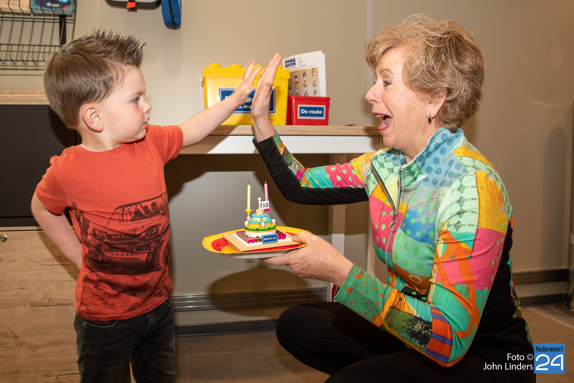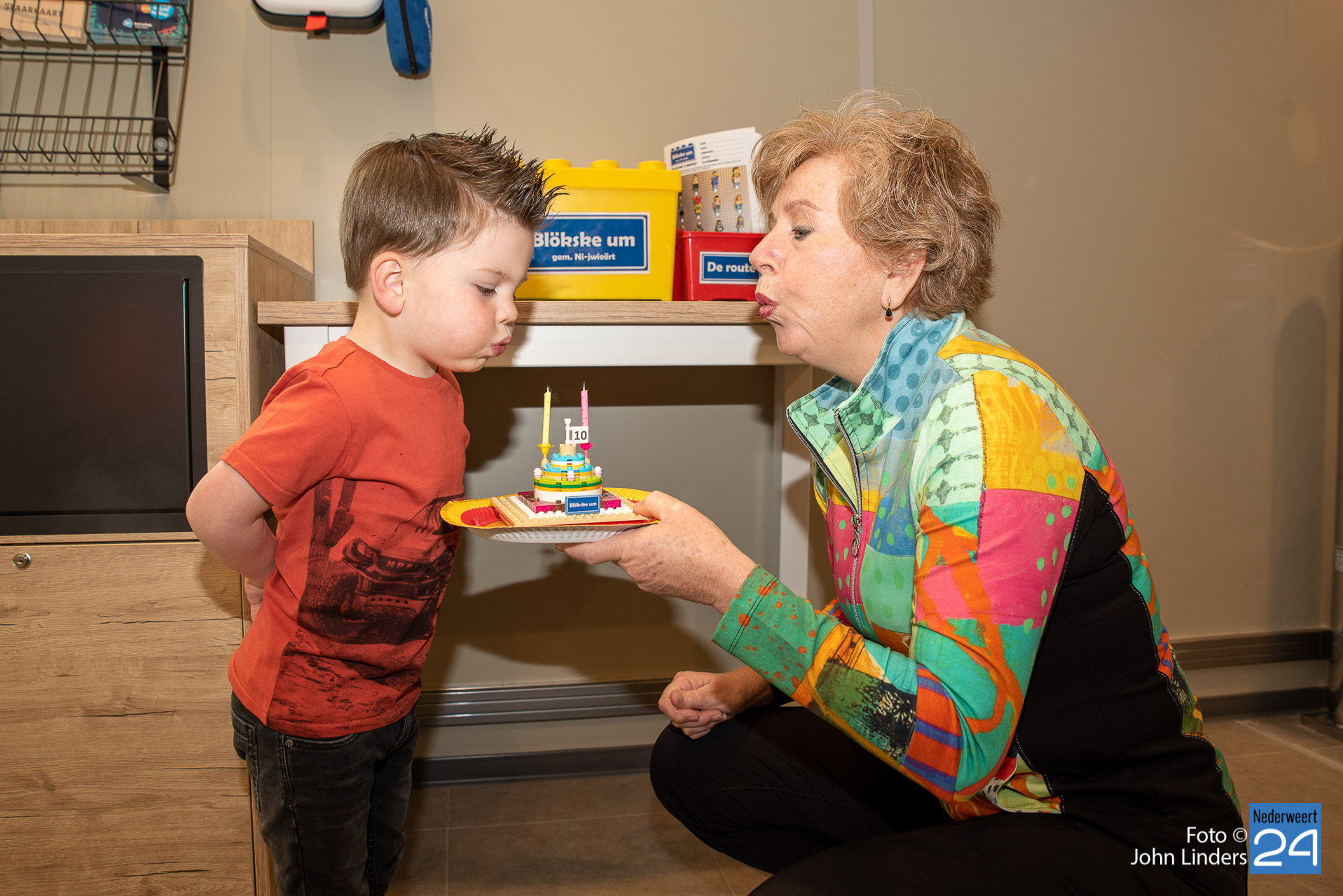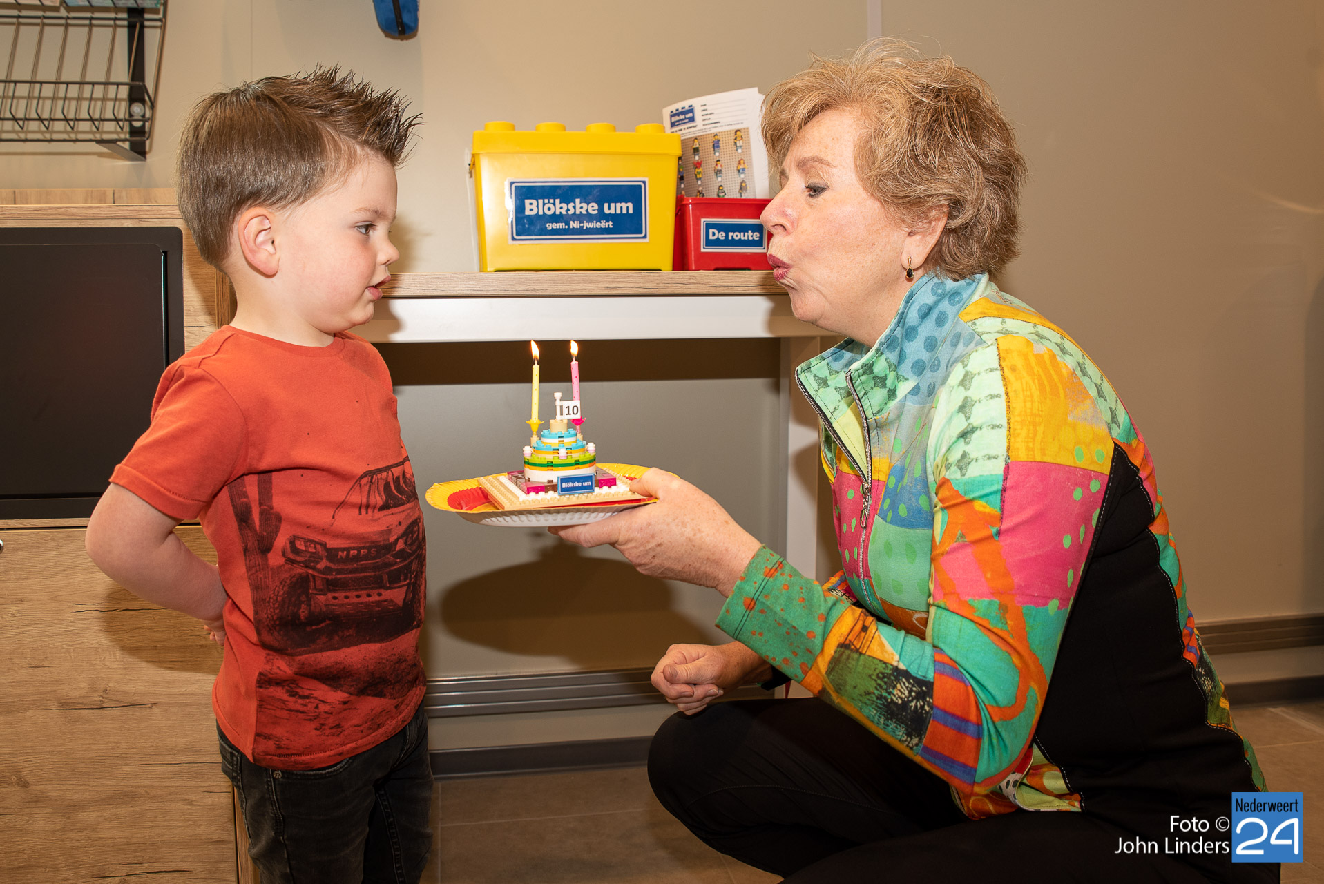 Zaterdagmiddag hebben Jayson Linders (met 2 jaar jongste deelnemer van Blökske um) en Karin Wering van Toypro ‘Blökske um Nederweert’ officieel geopend. Samen bliezen zij twee kaarsjes uit voor deze 2e editie van dit Lego evenement. Voor Karin extra speciaal, want haar bedrijf viert dit jaar haar 10-jarig jubileum.  Samen met een aantal deelnemers en organisatie liepen ze een gedeelte van de route, klonken er al vele oh’s, ah’s en wow’s en werd er al volop gezocht naar de minifigs.