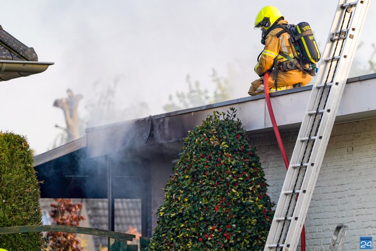 De brand was ontstaan onder de overkapping aan de achterzijde van de woning. Al snel werd er opgeschaald naar middelbrand. Twee blusvoertuigen en een hoogwerker kwamen ter plaatse om het vuur te doven. De overkapping is flink beschadigd geraakt door de brand. De brand is ontstaan in, of nabij, een loungeset. Het dak is grotendeels gesloopt. De glazen pui van de woning is gesprongen. Daardoor heeft de woning ook flinke schade opgelopen. Stichting Salvage komt ter plaatse om de bewoners bij te staan bij de schadeafhandeling. Team Brandonderzoek komt ter plaatse om de oorzaak van de brand te achterhalen.