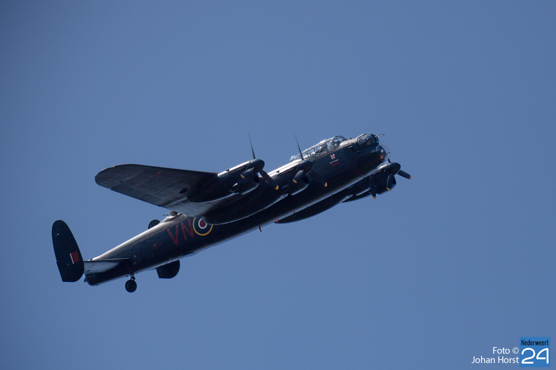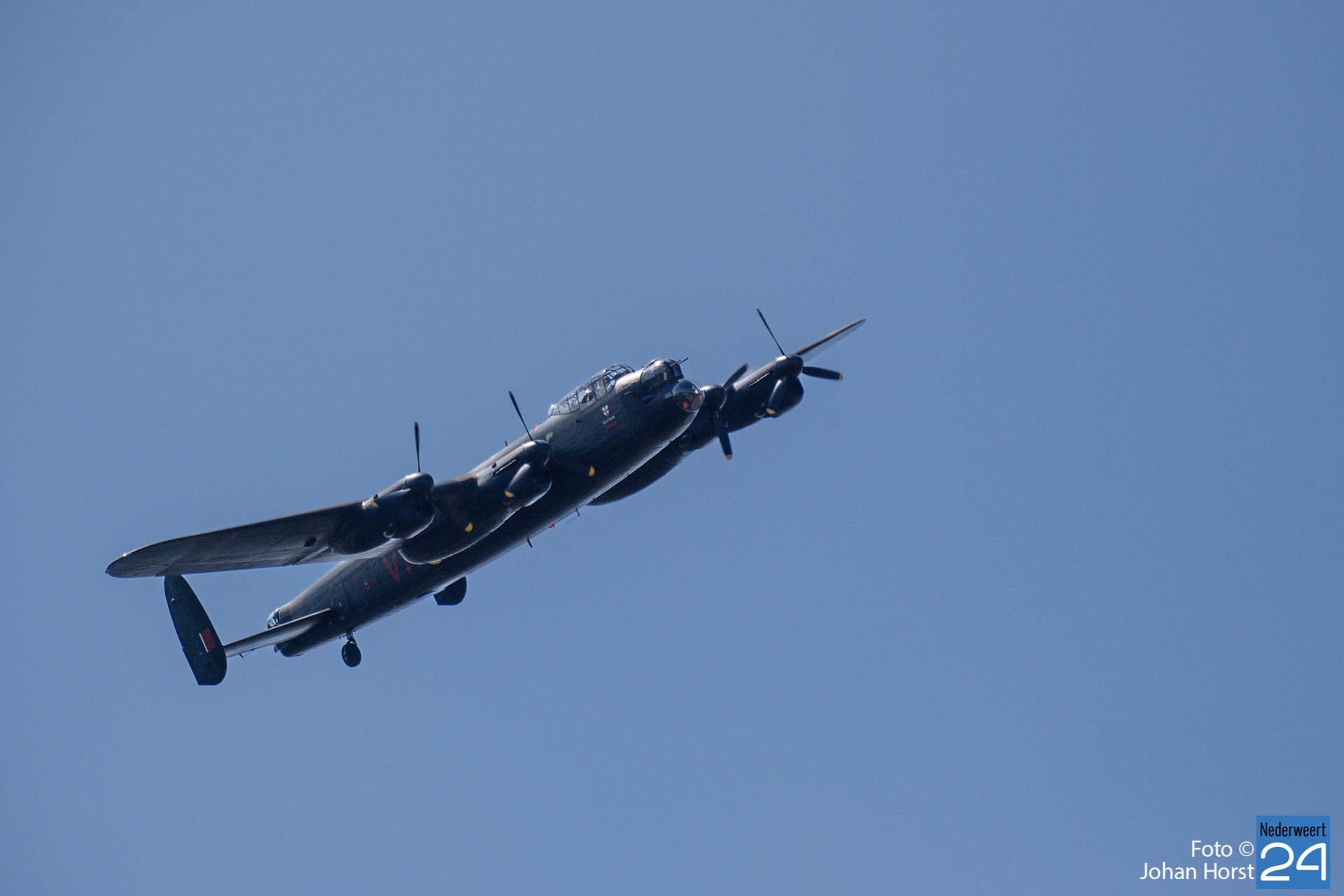 Ruim 77 jaar na de bevrijding van Zuid-Nederland vond woensdagmiddag in Heythuysen een flypast plaats van de authentieke AVRO Lancaster bommenwerper PA474 van de Battle of Britain Memorial Flight.