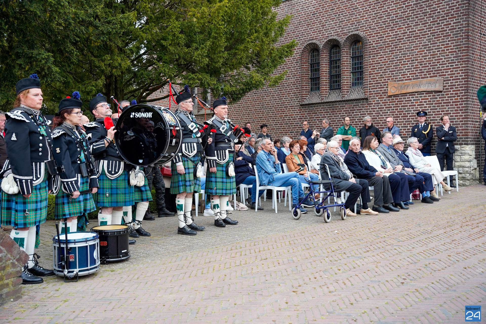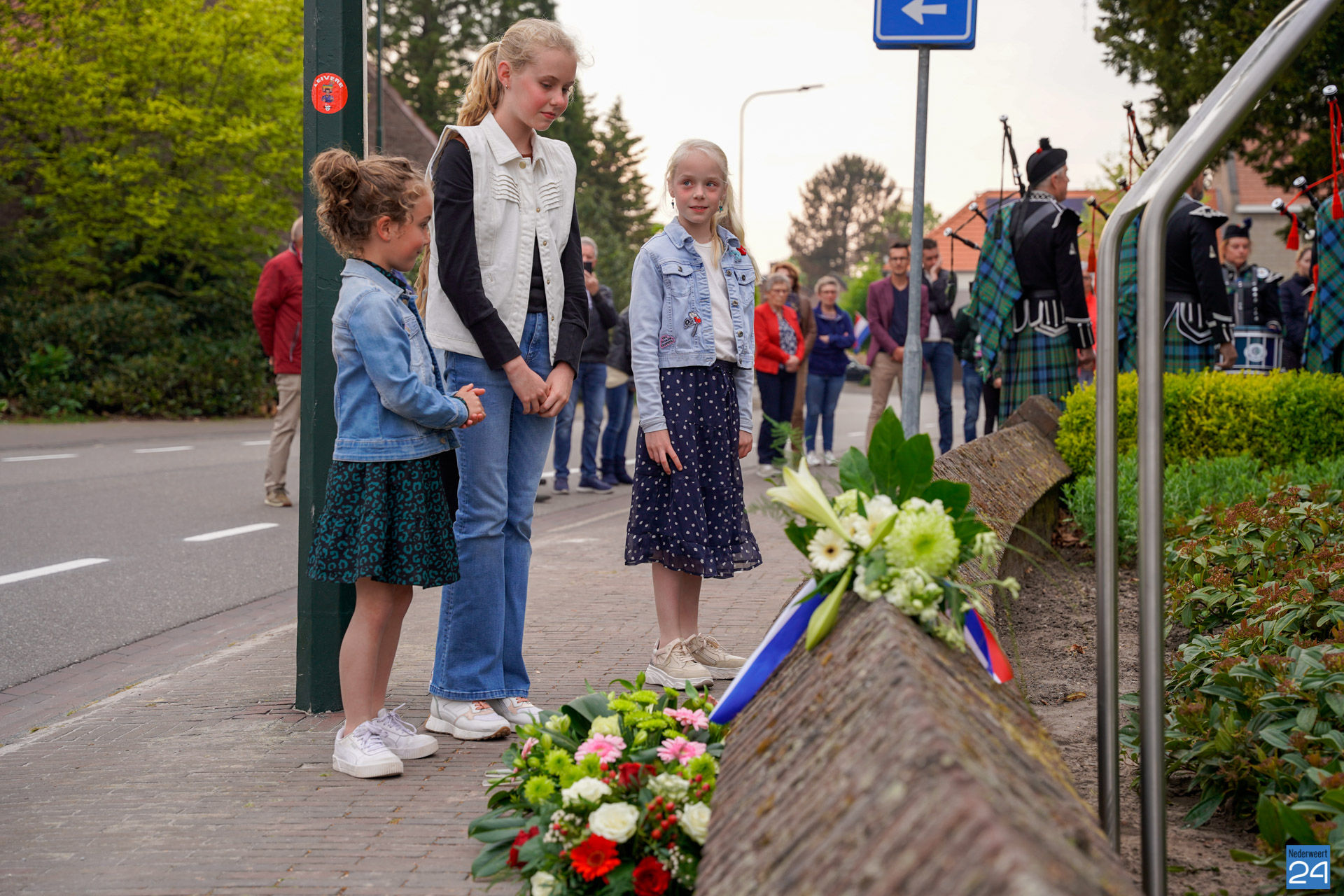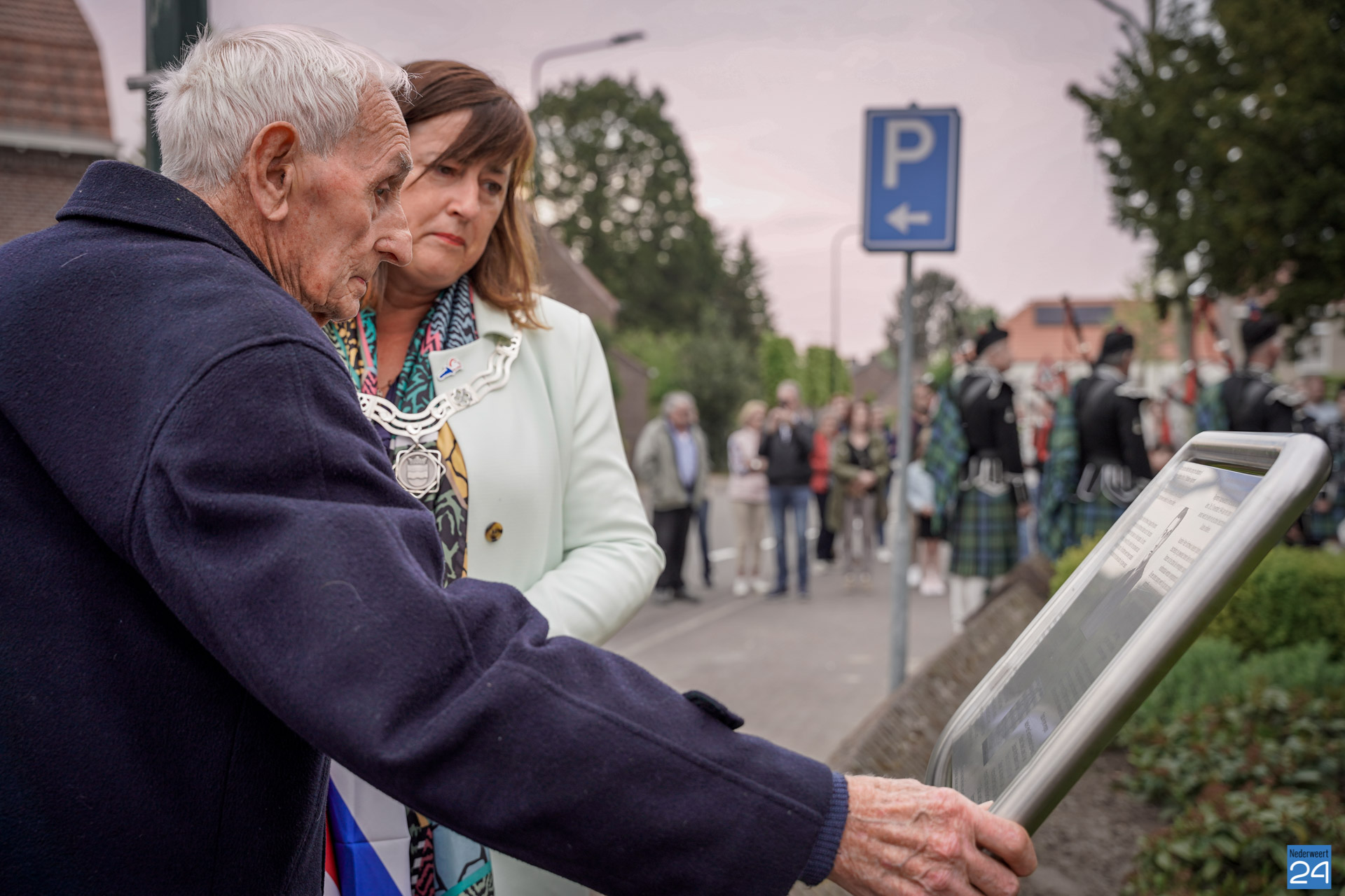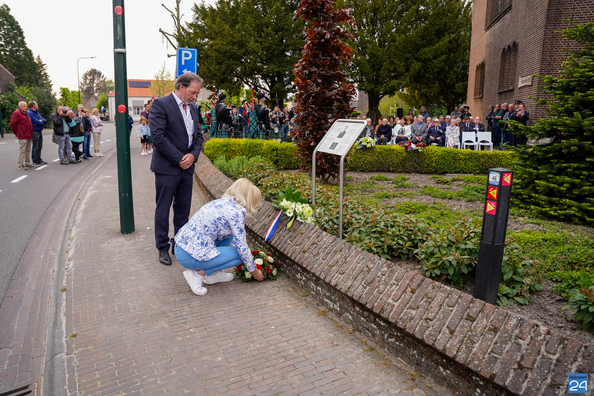 Onder de aanwezigen ook Leo Hendriks uit Heel, voormalig piloot voor de Royal Air Force in de Tweede Wereldoorlog en Pierre van Bommel uit Leveroy, een van de laatste getuigen. Om 19.00 uur begon de ceremonie na het spelen van de doedelzakspelers van Pipers Society Castle Aldenghoor uit Haelen met een begroeting door Pastoor Marcus Vankan, die daarna het woord gaf aan Niek Hendrix namens het Comité. Burgemeester Birgit Op de Laak sprak namens de gemeente Nederweert de aanwezigen toe waarna het monument onthuld werd door de burgemeester en vertegenwoordigers van het comité met op de achtergrond de muziek van fanfare Concordia.