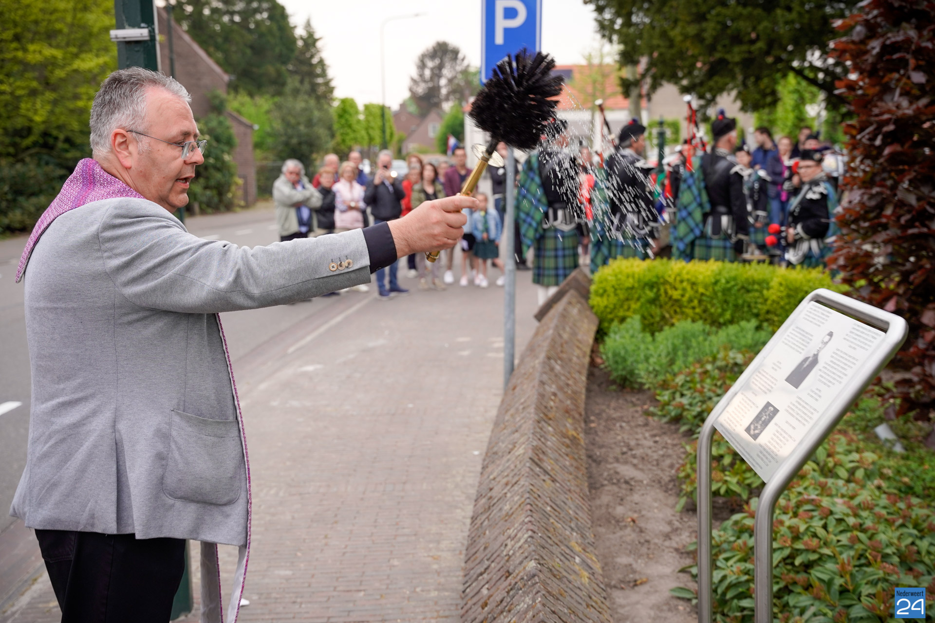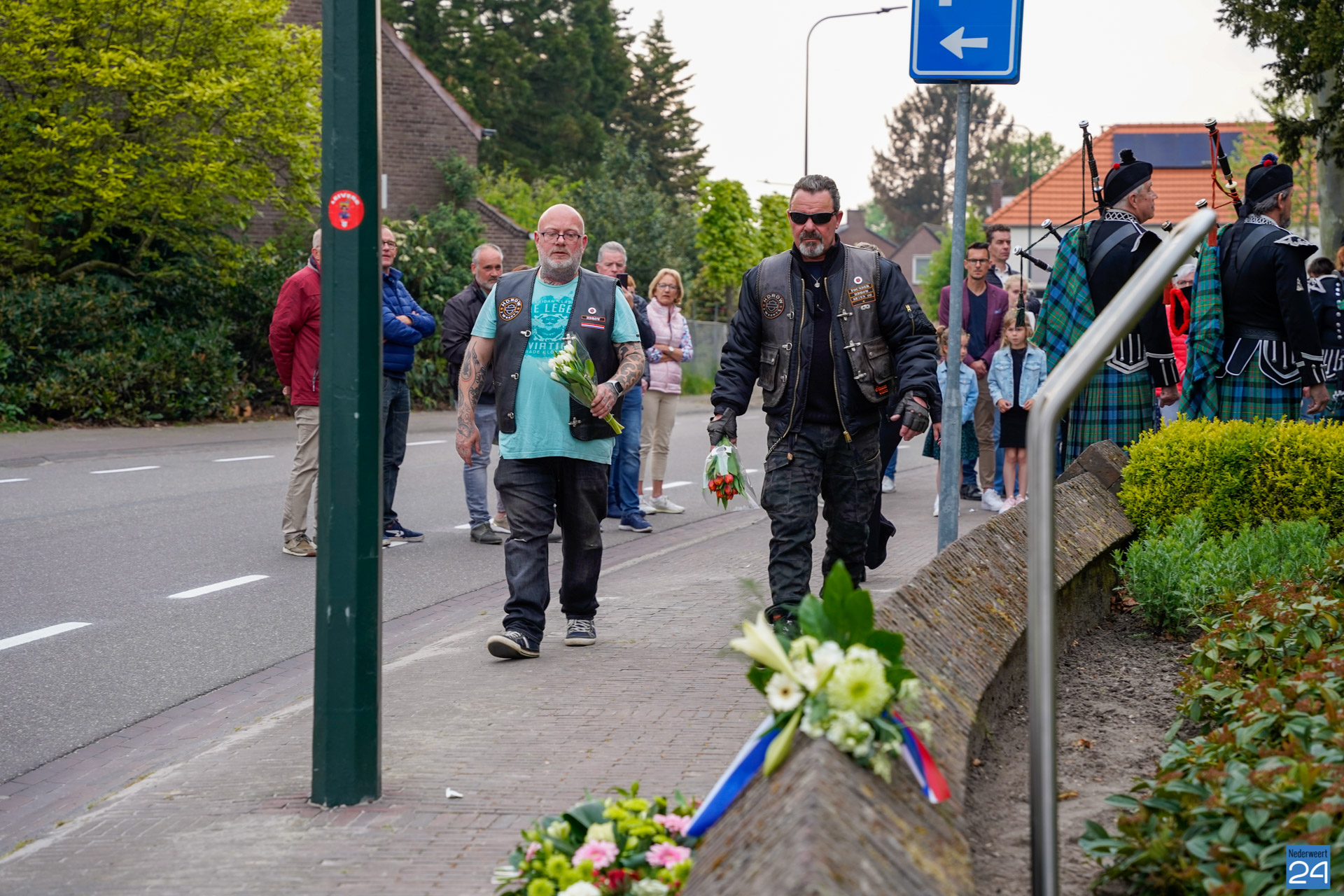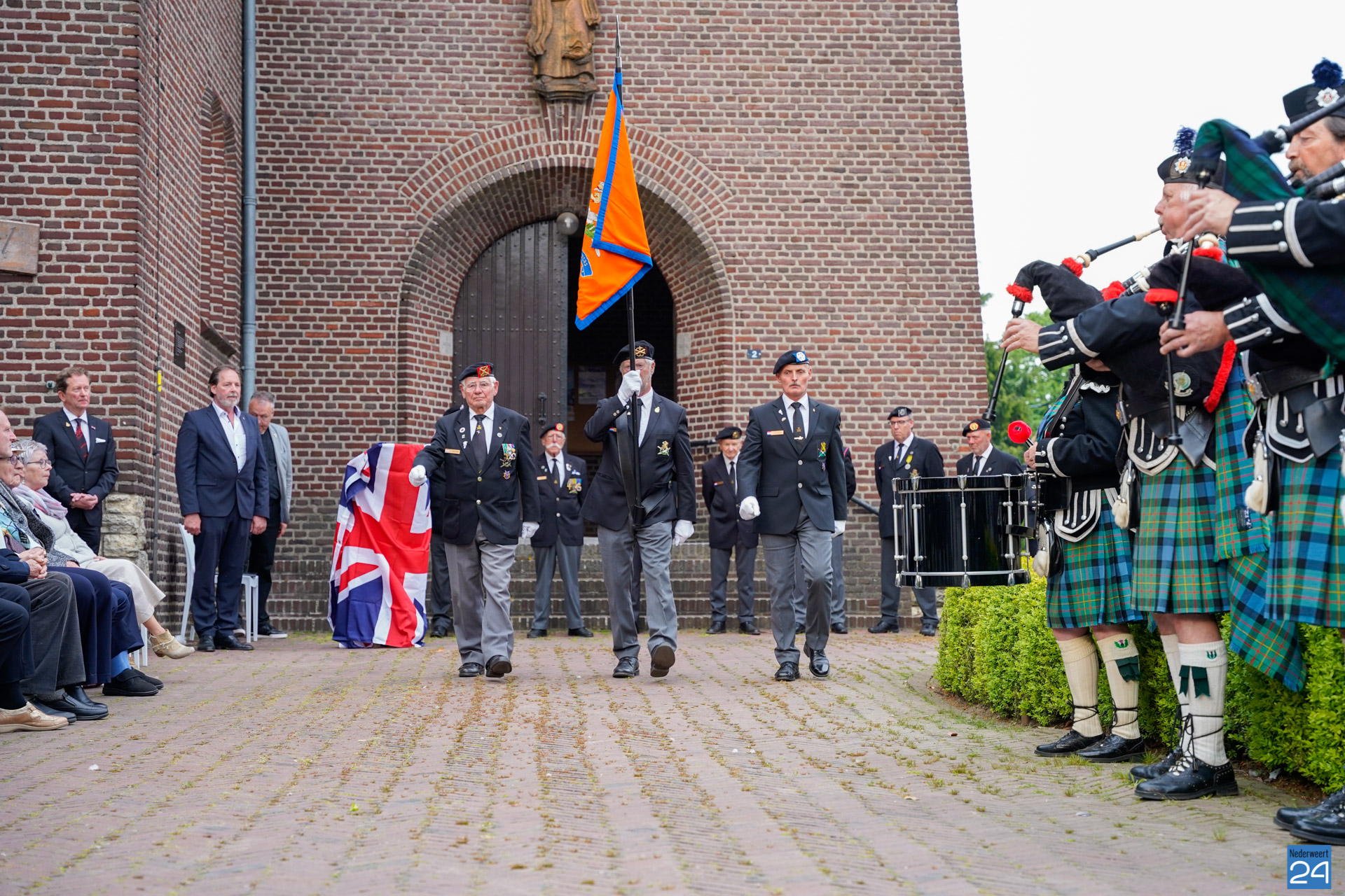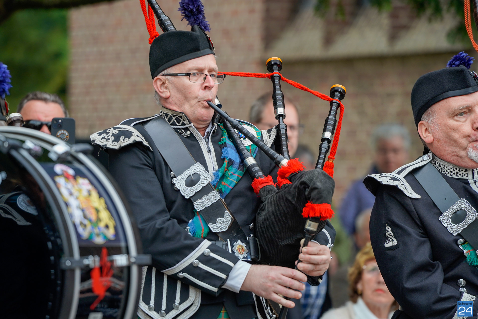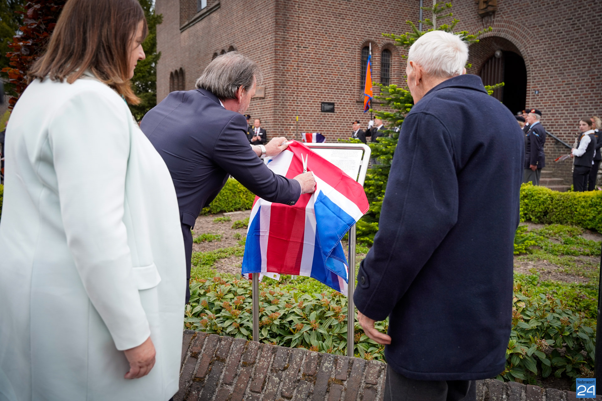 Onder de aanwezigen ook Leo Hendriks uit Heel, voormalig piloot voor de Royal Air Force in de Tweede Wereldoorlog en Pierre van Bommel uit Leveroy, een van de laatste getuigen. Om 19.00 uur begon de ceremonie na het spelen van de doedelzakspelers van Pipers Society Castle Aldenghoor uit Haelen met een begroeting door Pastoor Marcus Vankan, die daarna het woord gaf aan Niek Hendrix namens het Comité. Burgemeester Birgit Op de Laak sprak namens de gemeente Nederweert de aanwezigen toe waarna het monument onthuld werd door de burgemeester en vertegenwoordigers van het comité met op de achtergrond de muziek van fanfare Concordia.