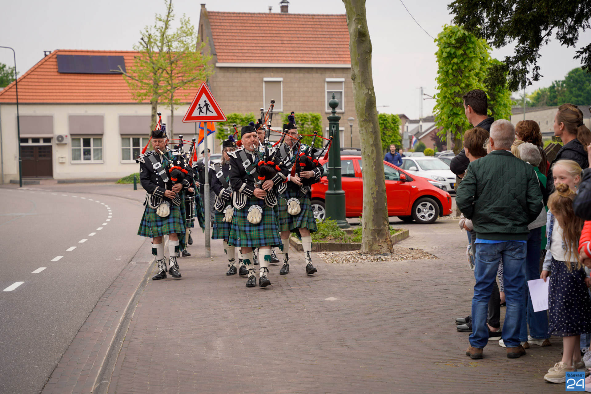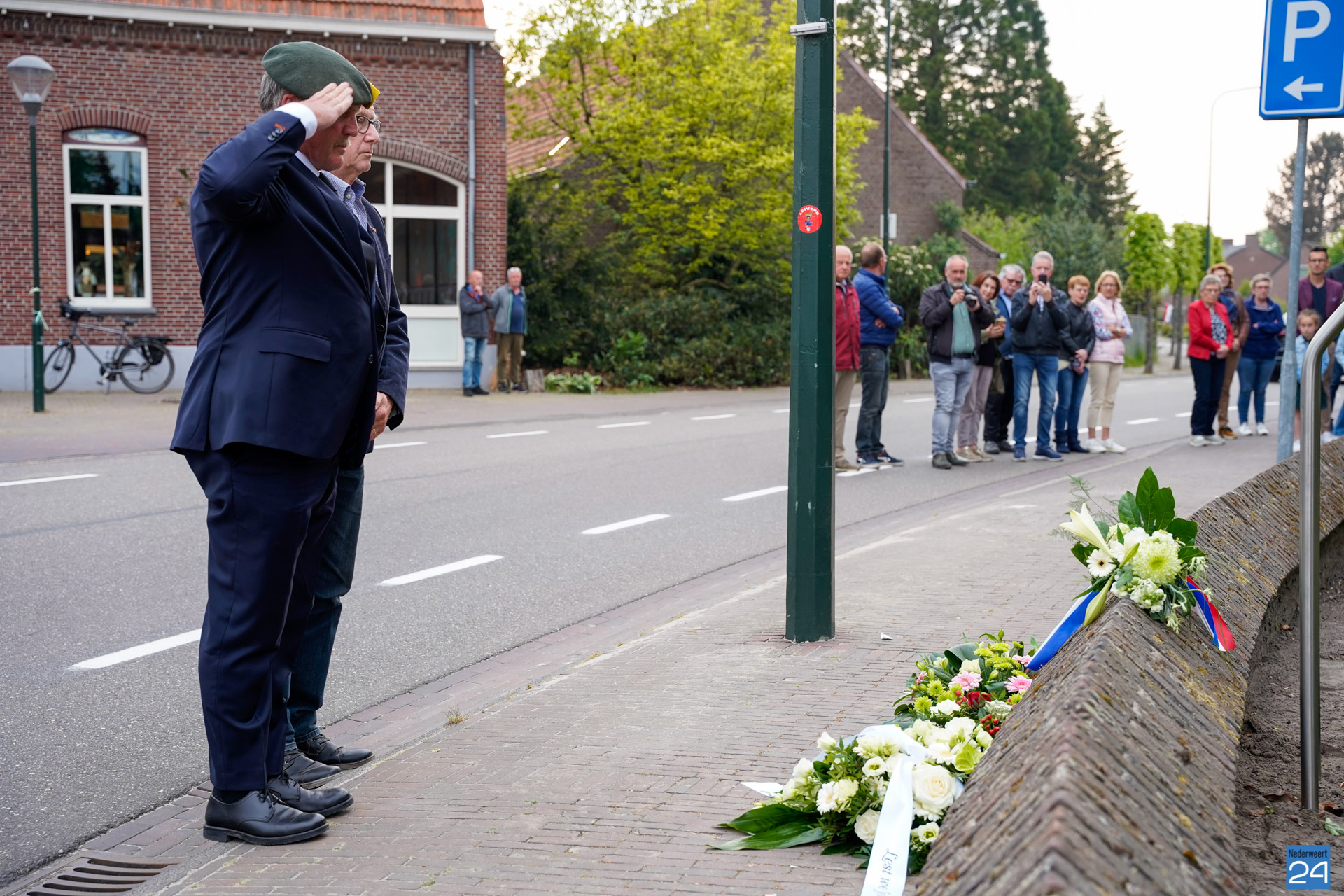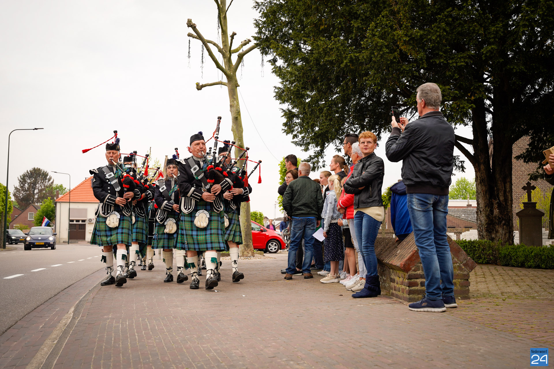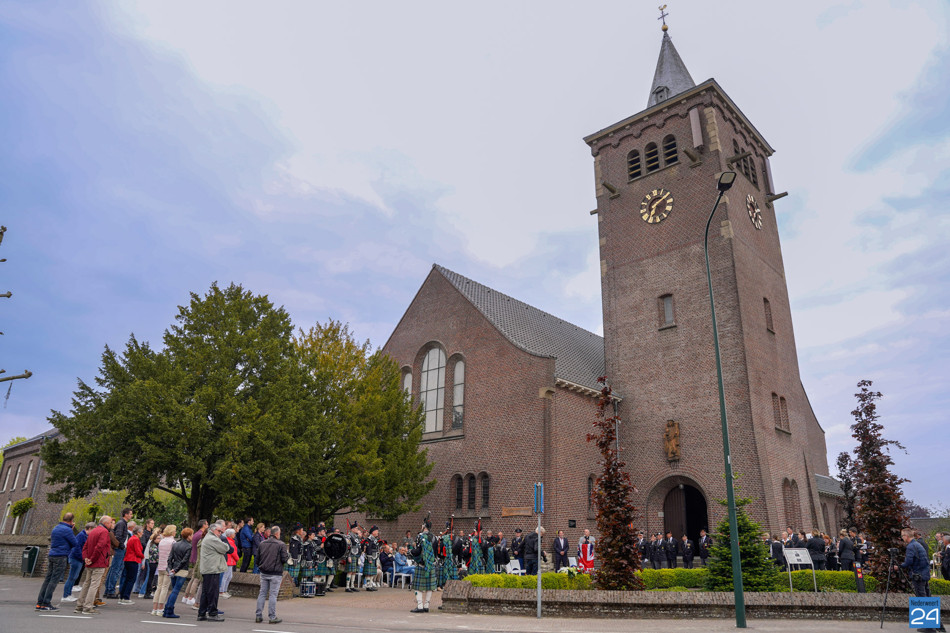 Onder de aanwezigen ook Leo Hendriks uit Heel, voormalig piloot voor de Royal Air Force in de Tweede Wereldoorlog en Pierre van Bommel uit Leveroy, een van de laatste getuigen. Om 19.00 uur begon de ceremonie na het spelen van de doedelzakspelers van Pipers Society Castle Aldenghoor uit Haelen met een begroeting door Pastoor Marcus Vankan, die daarna het woord gaf aan Niek Hendrix namens het Comité. Burgemeester Birgit Op de Laak sprak namens de gemeente Nederweert de aanwezigen toe waarna het monument onthuld werd door de burgemeester en vertegenwoordigers van het comité met op de achtergrond de muziek van fanfare Concordia.