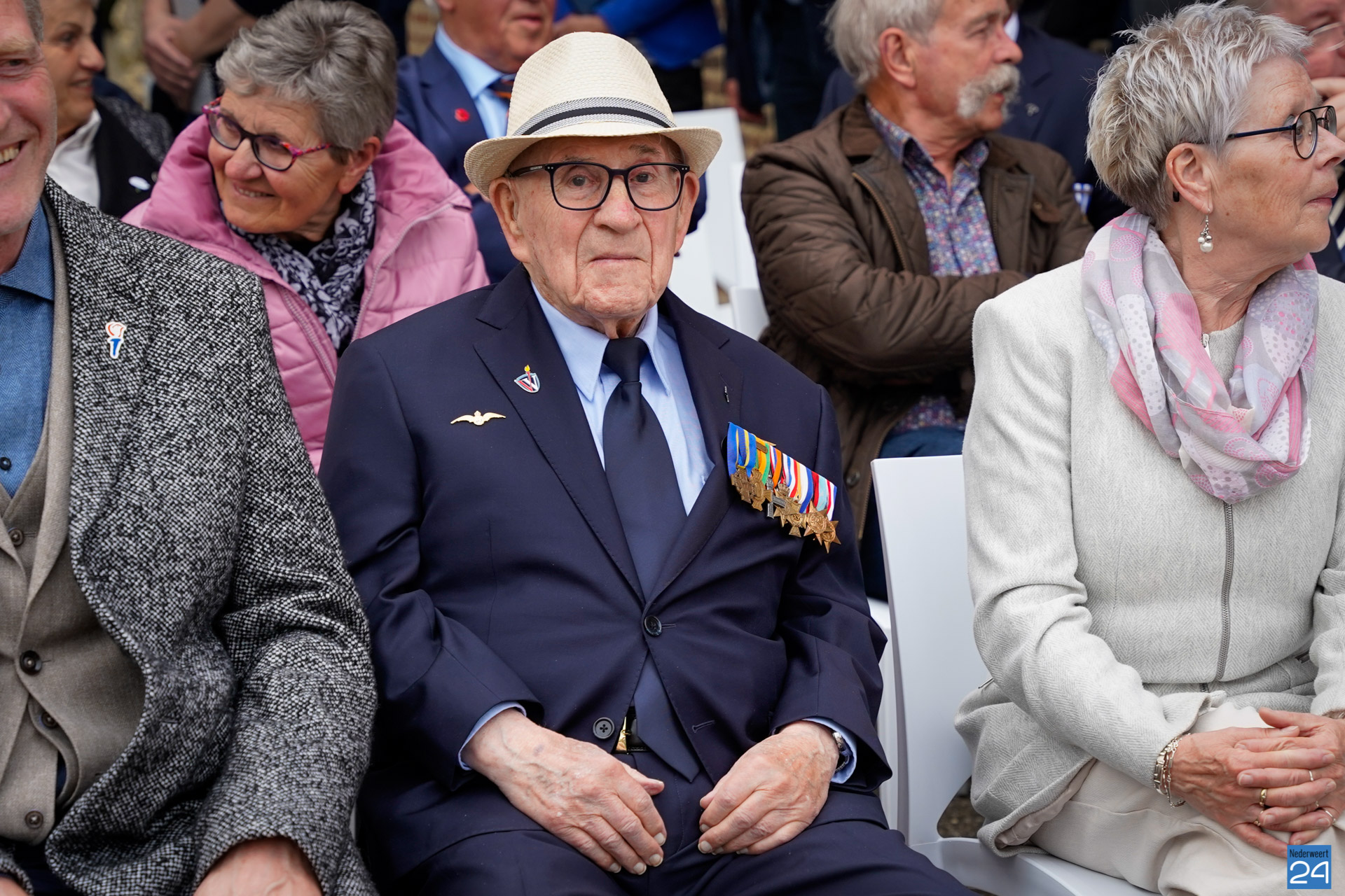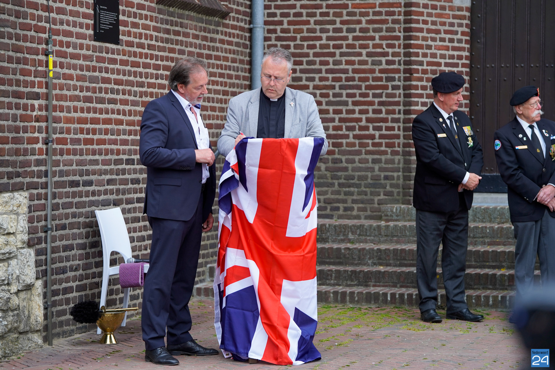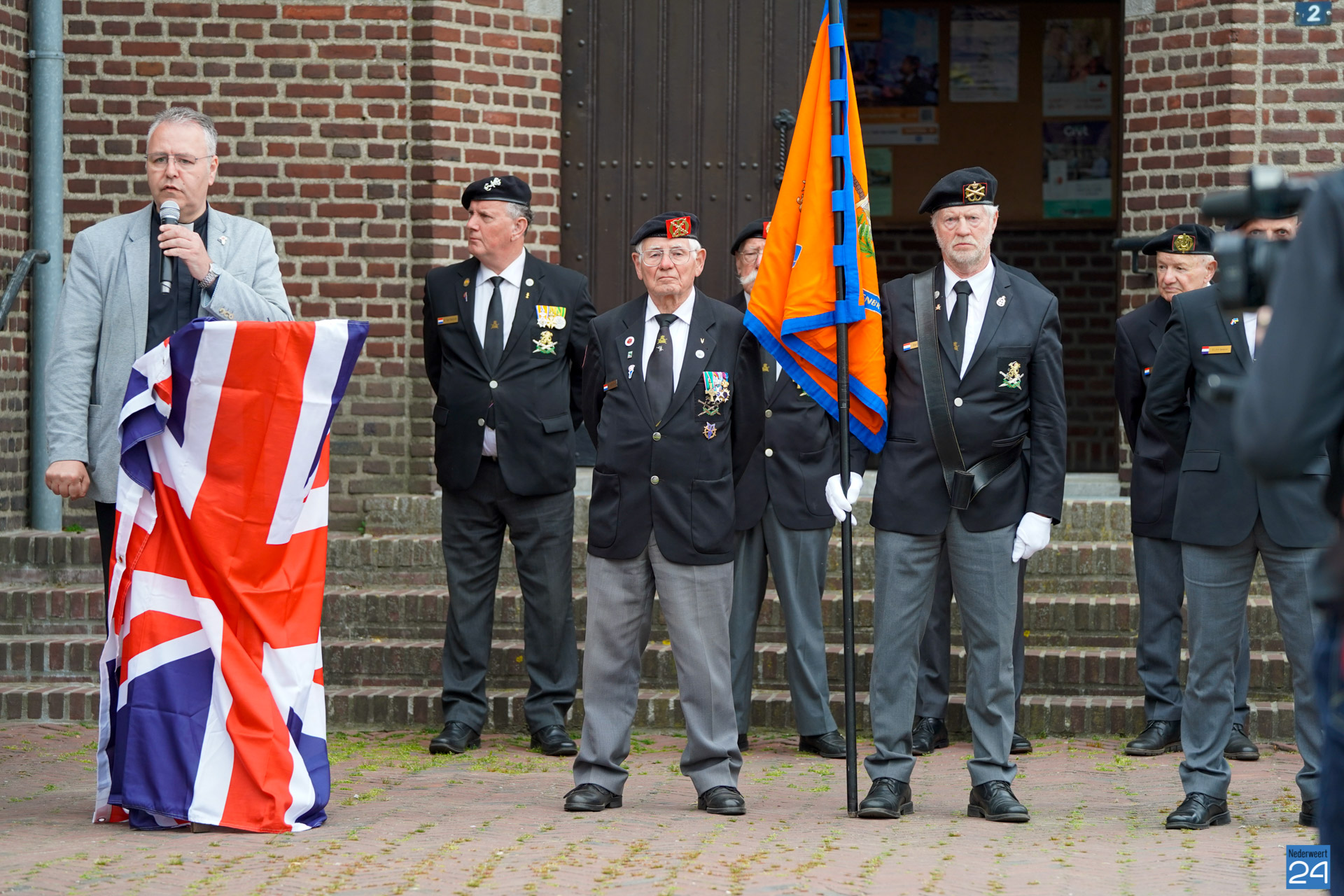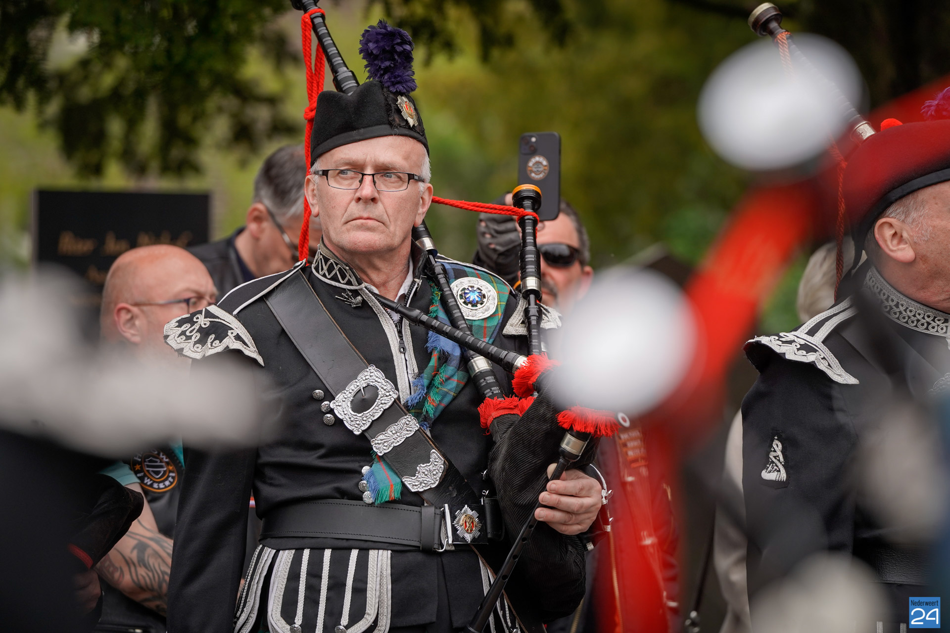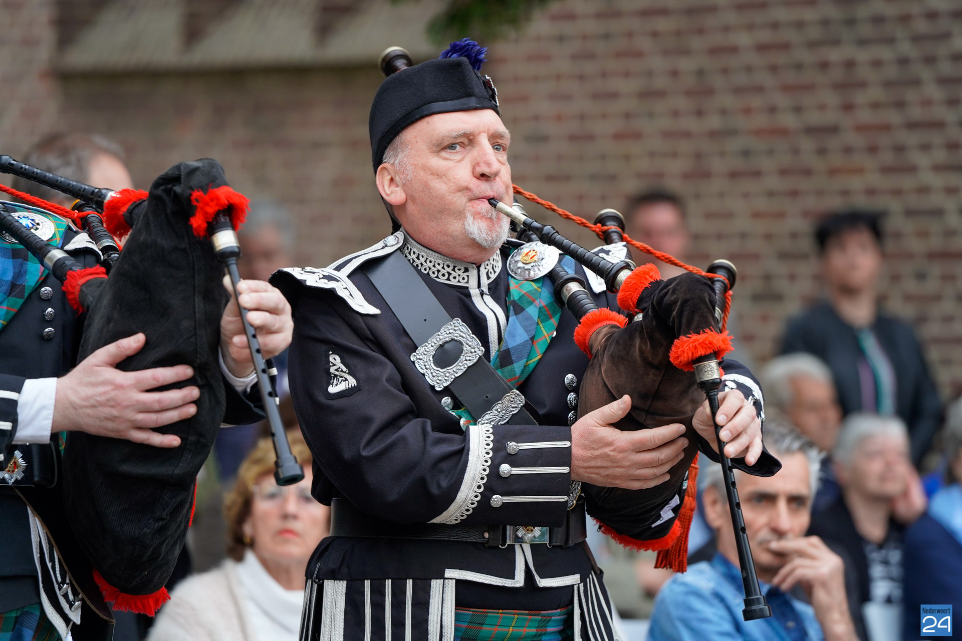 Onder de aanwezigen ook Leo Hendriks uit Heel, voormalig piloot voor de Royal Air Force in de Tweede Wereldoorlog en Pierre van Bommel uit Leveroy, een van de laatste getuigen. Om 19.00 uur begon de ceremonie na het spelen van de doedelzakspelers van Pipers Society Castle Aldenghoor uit Haelen met een begroeting door Pastoor Marcus Vankan, die daarna het woord gaf aan Niek Hendrix namens het Comité. Burgemeester Birgit Op de Laak sprak namens de gemeente Nederweert de aanwezigen toe waarna het monument onthuld werd door de burgemeester en vertegenwoordigers van het comité met op de achtergrond de muziek van fanfare Concordia.