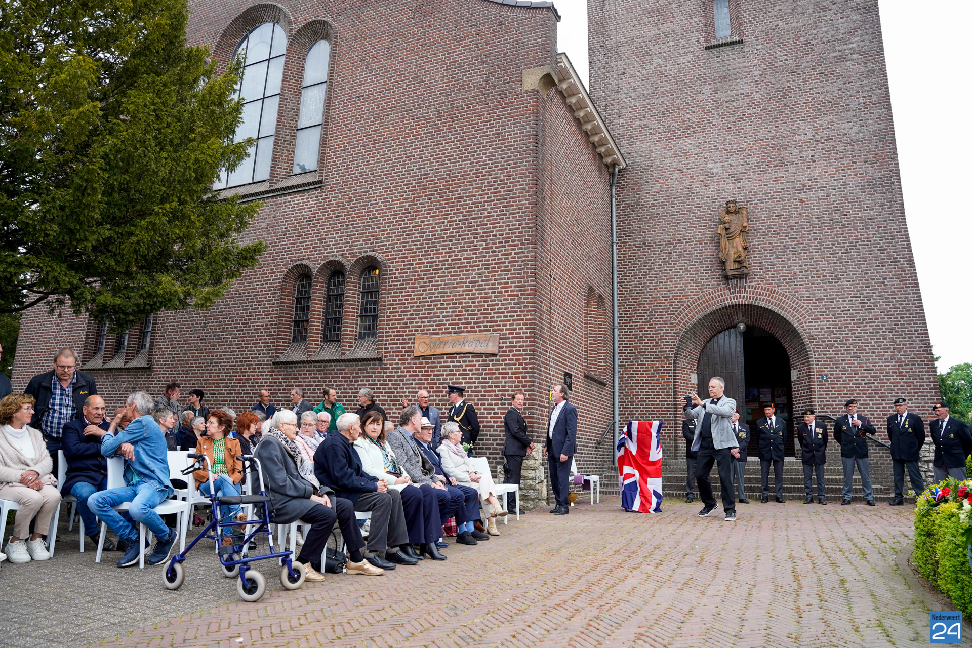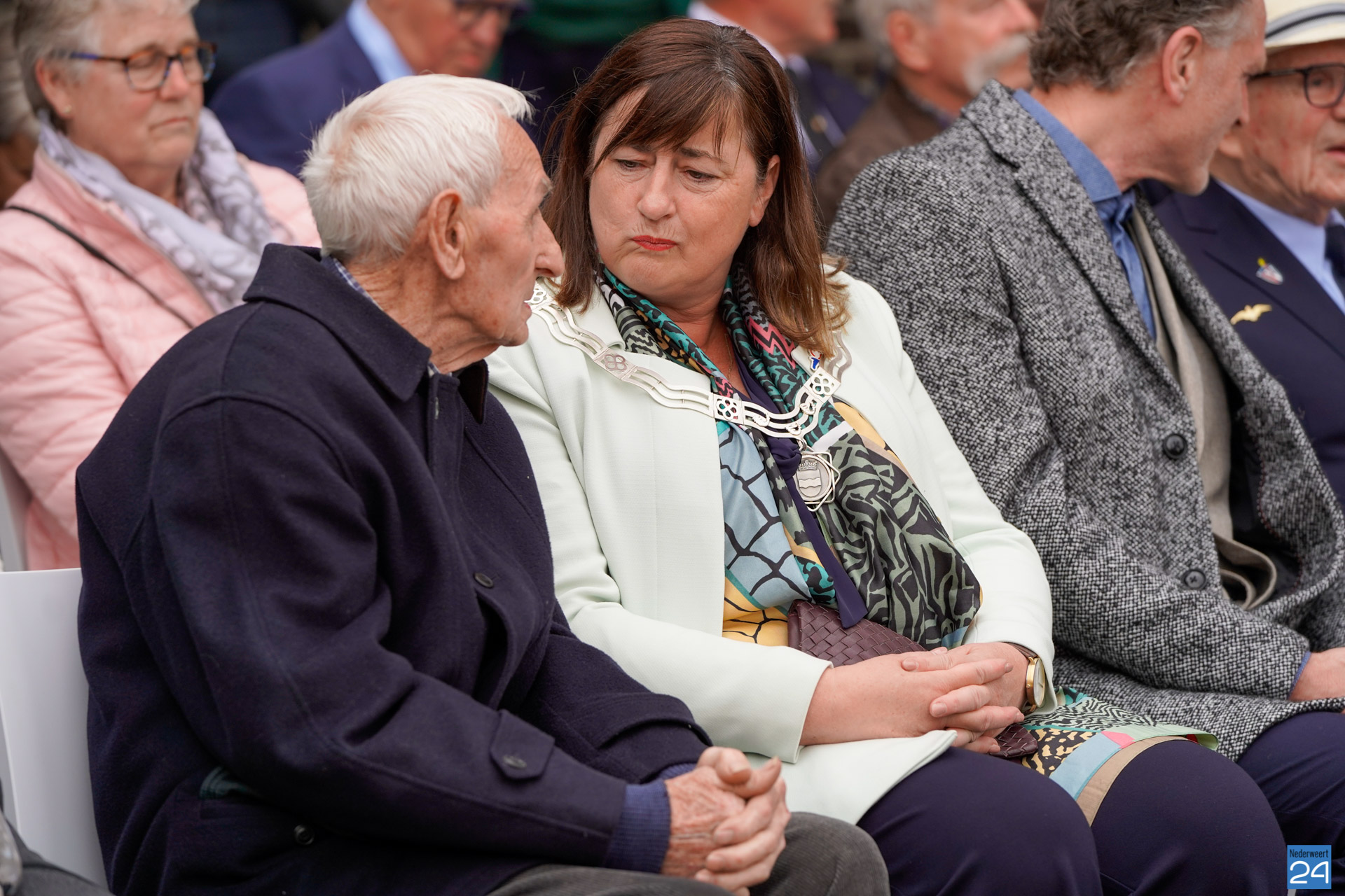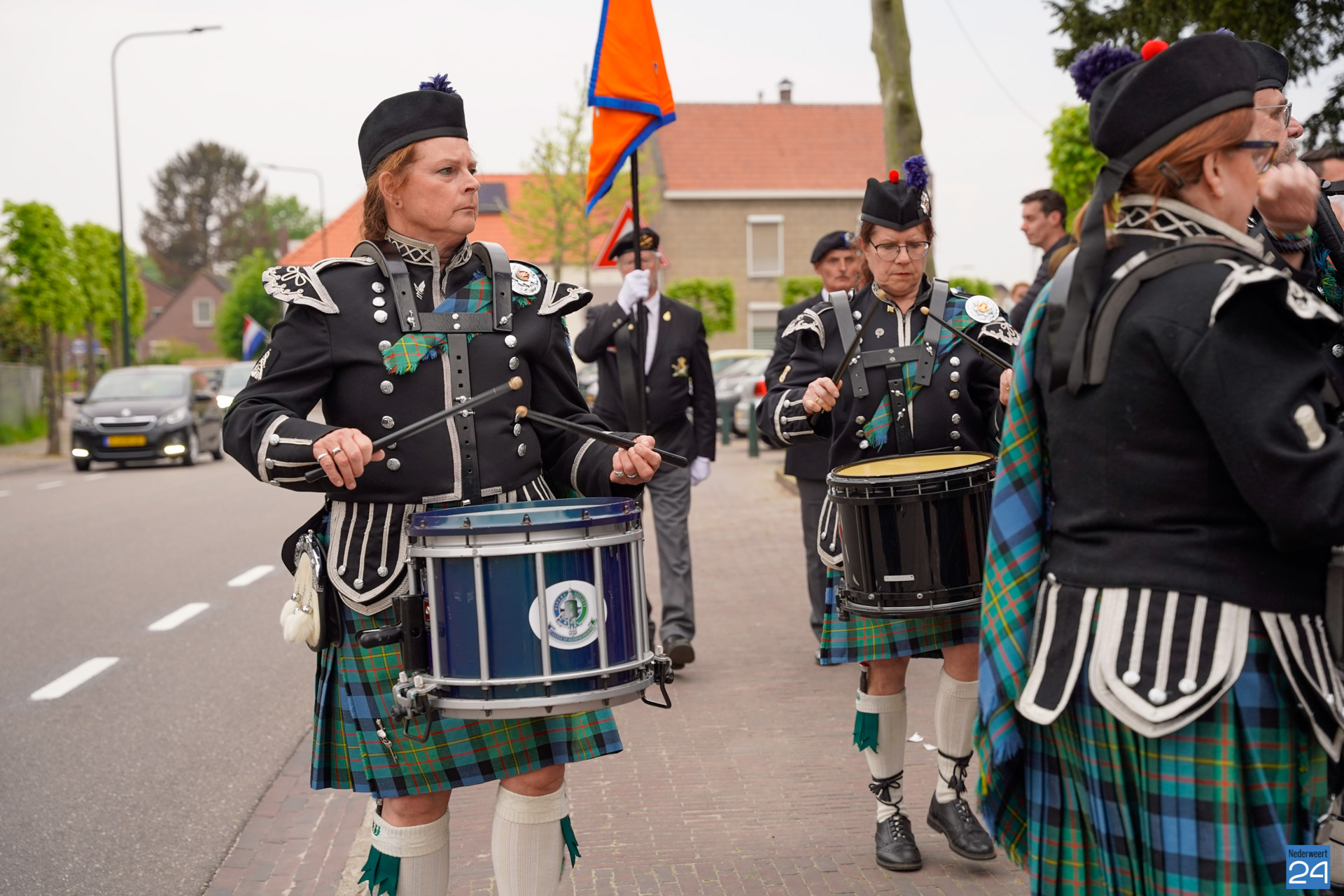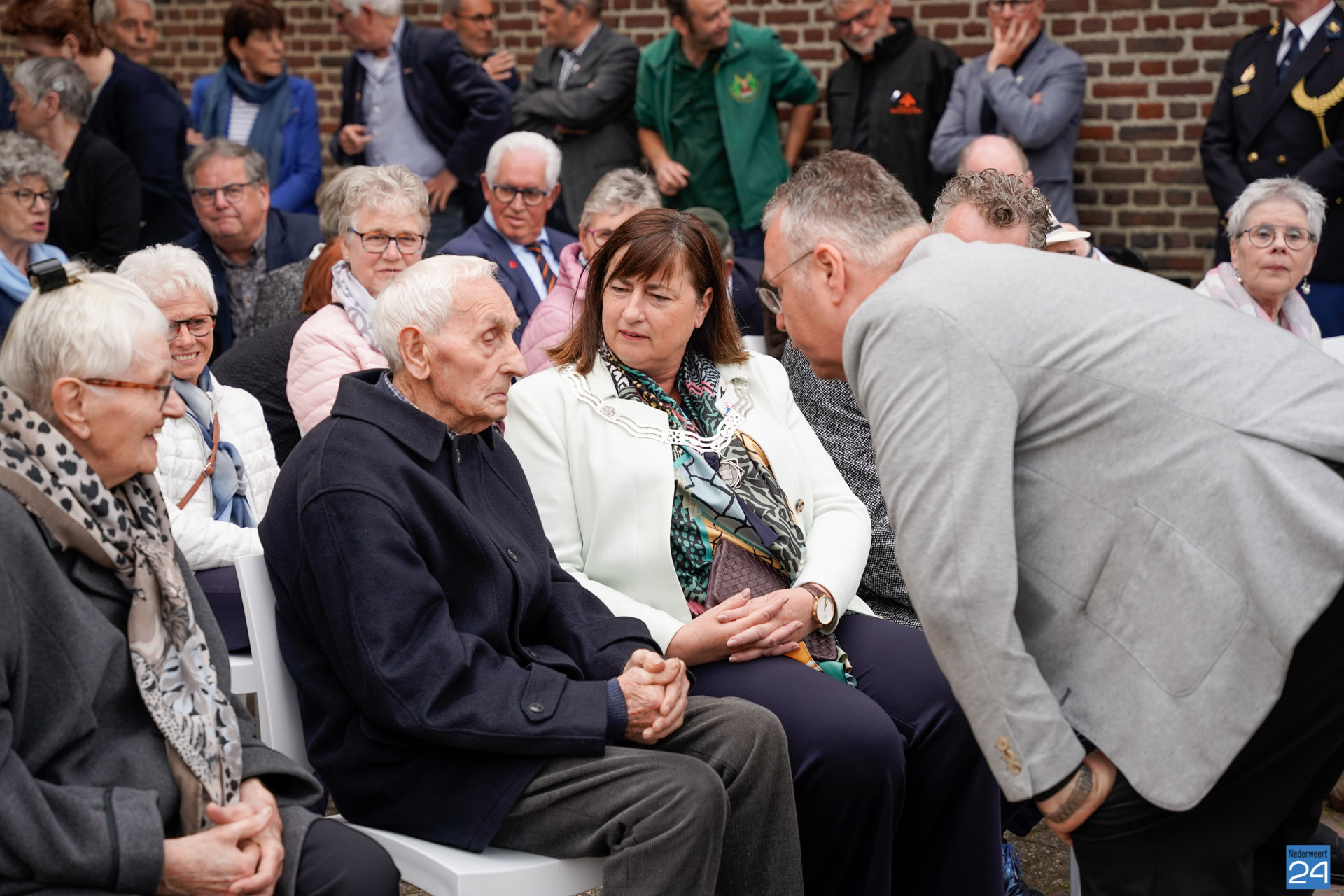 Onder de aanwezigen ook Leo Hendriks uit Heel, voormalig piloot voor de Royal Air Force in de Tweede Wereldoorlog en Pierre van Bommel uit Leveroy, een van de laatste getuigen. Om 19.00 uur begon de ceremonie na het spelen van de doedelzakspelers van Pipers Society Castle Aldenghoor uit Haelen met een begroeting door Pastoor Marcus Vankan, die daarna het woord gaf aan Niek Hendrix namens het Comité. Burgemeester Birgit Op de Laak sprak namens de gemeente Nederweert de aanwezigen toe waarna het monument onthuld werd door de burgemeester en vertegenwoordigers van het comité met op de achtergrond de muziek van fanfare Concordia.