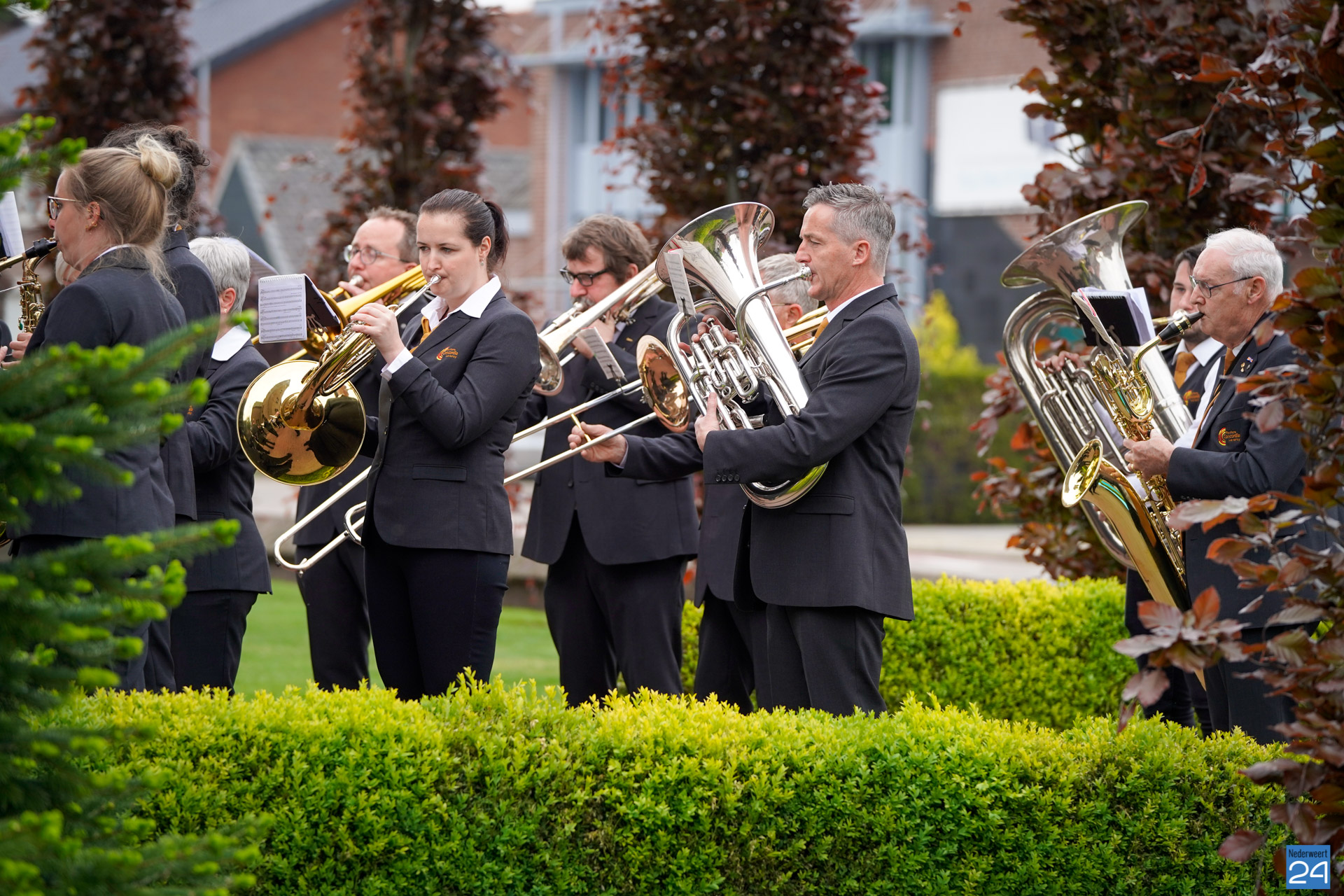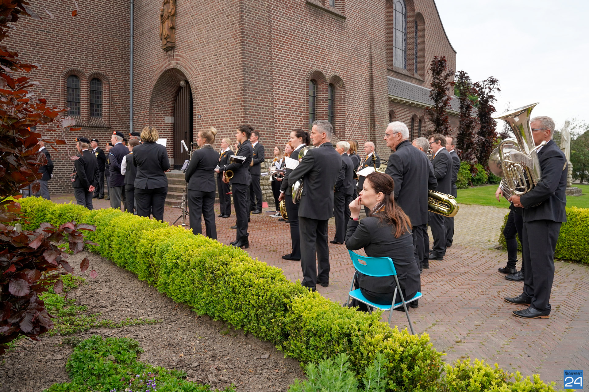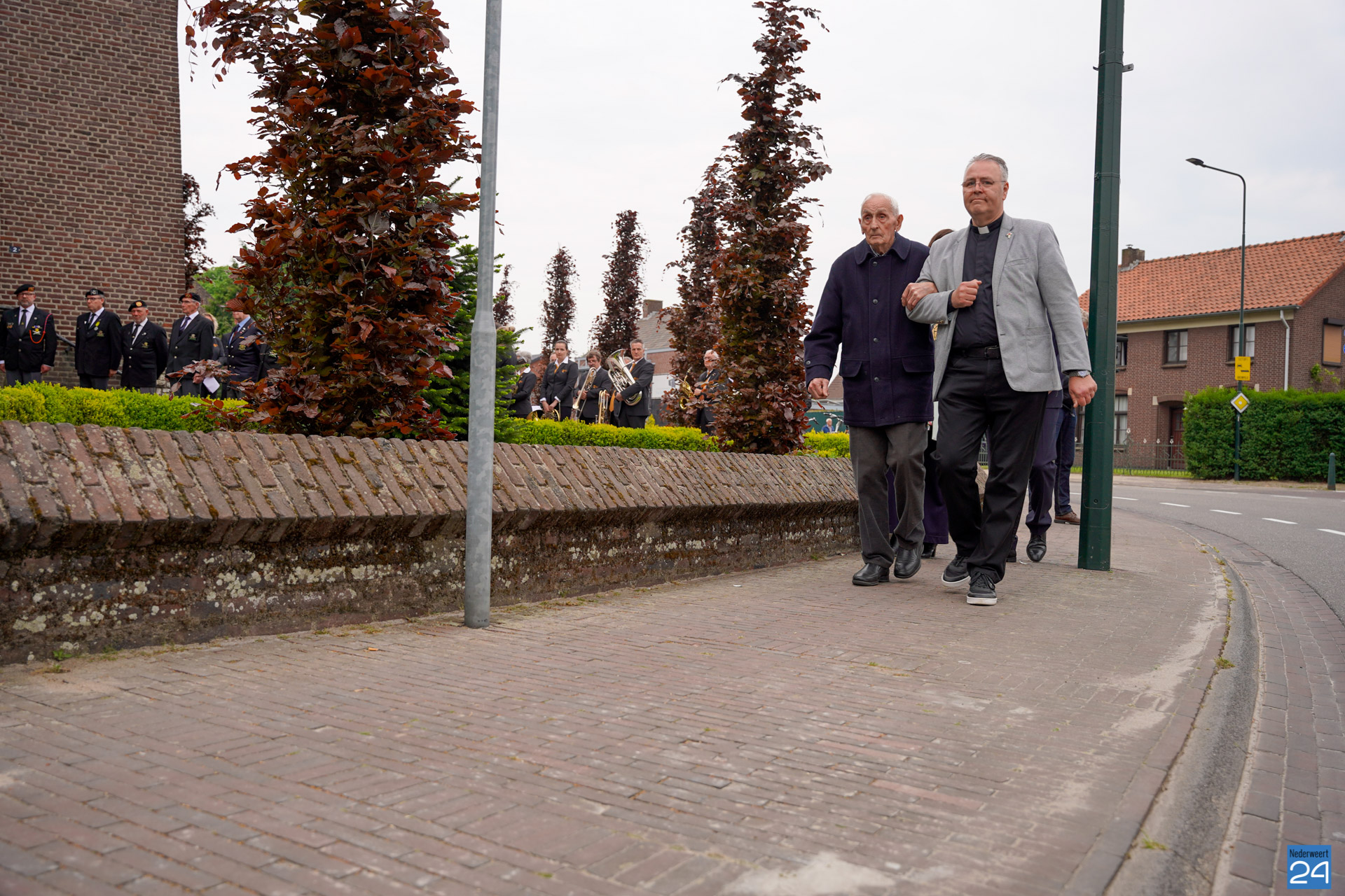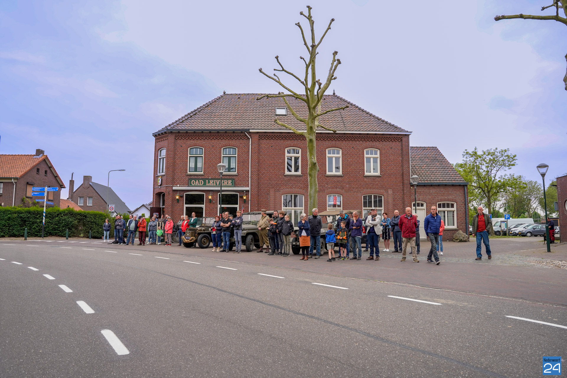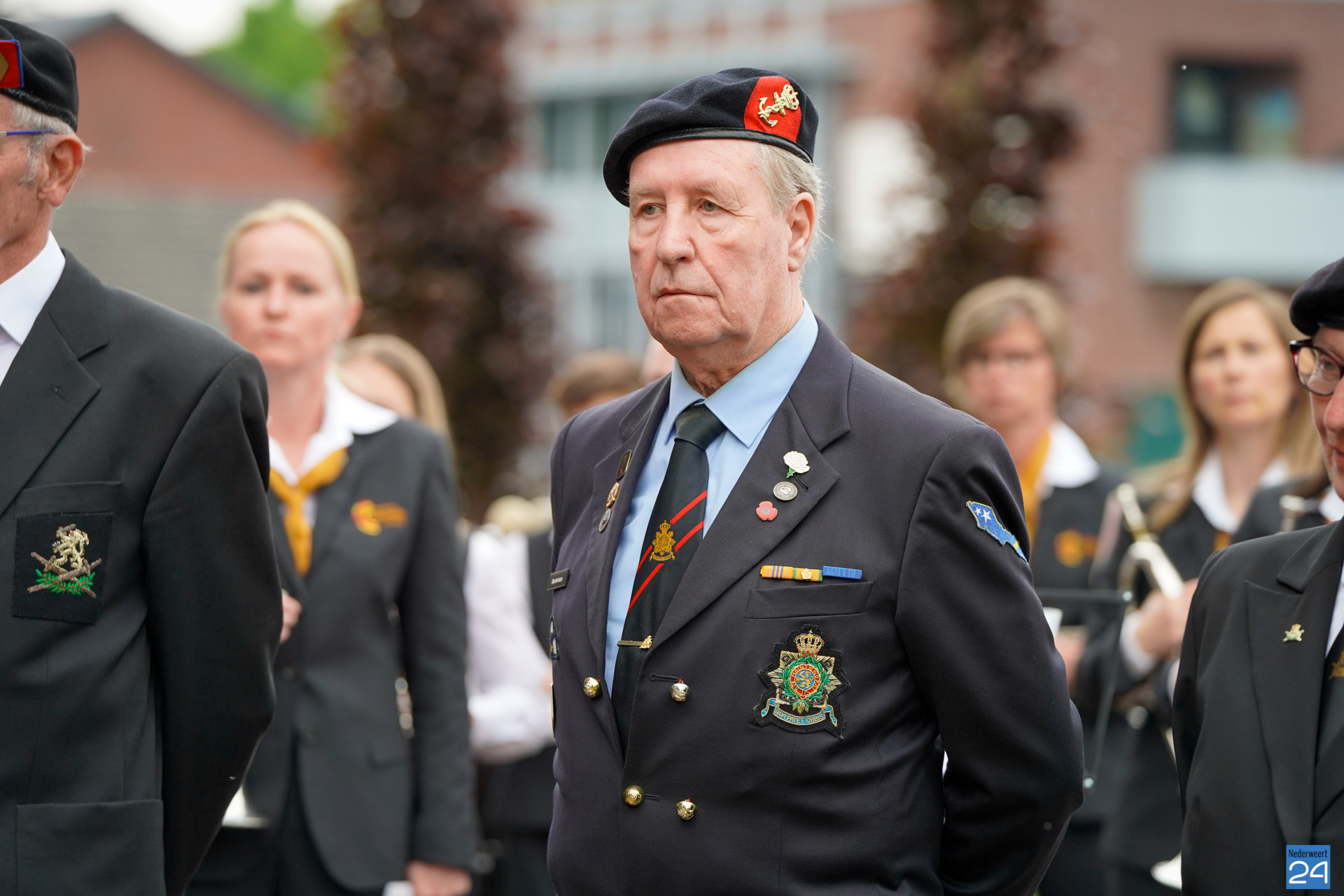 Onder de aanwezigen ook Leo Hendriks uit Heel, voormalig piloot voor de Royal Air Force in de Tweede Wereldoorlog en Pierre van Bommel uit Leveroy, een van de laatste getuigen. Om 19.00 uur begon de ceremonie na het spelen van de doedelzakspelers van Pipers Society Castle Aldenghoor uit Haelen met een begroeting door Pastoor Marcus Vankan, die daarna het woord gaf aan Niek Hendrix namens het Comité. Burgemeester Birgit Op de Laak sprak namens de gemeente Nederweert de aanwezigen toe waarna het monument onthuld werd door de burgemeester en vertegenwoordigers van het comité met op de achtergrond de muziek van fanfare Concordia.