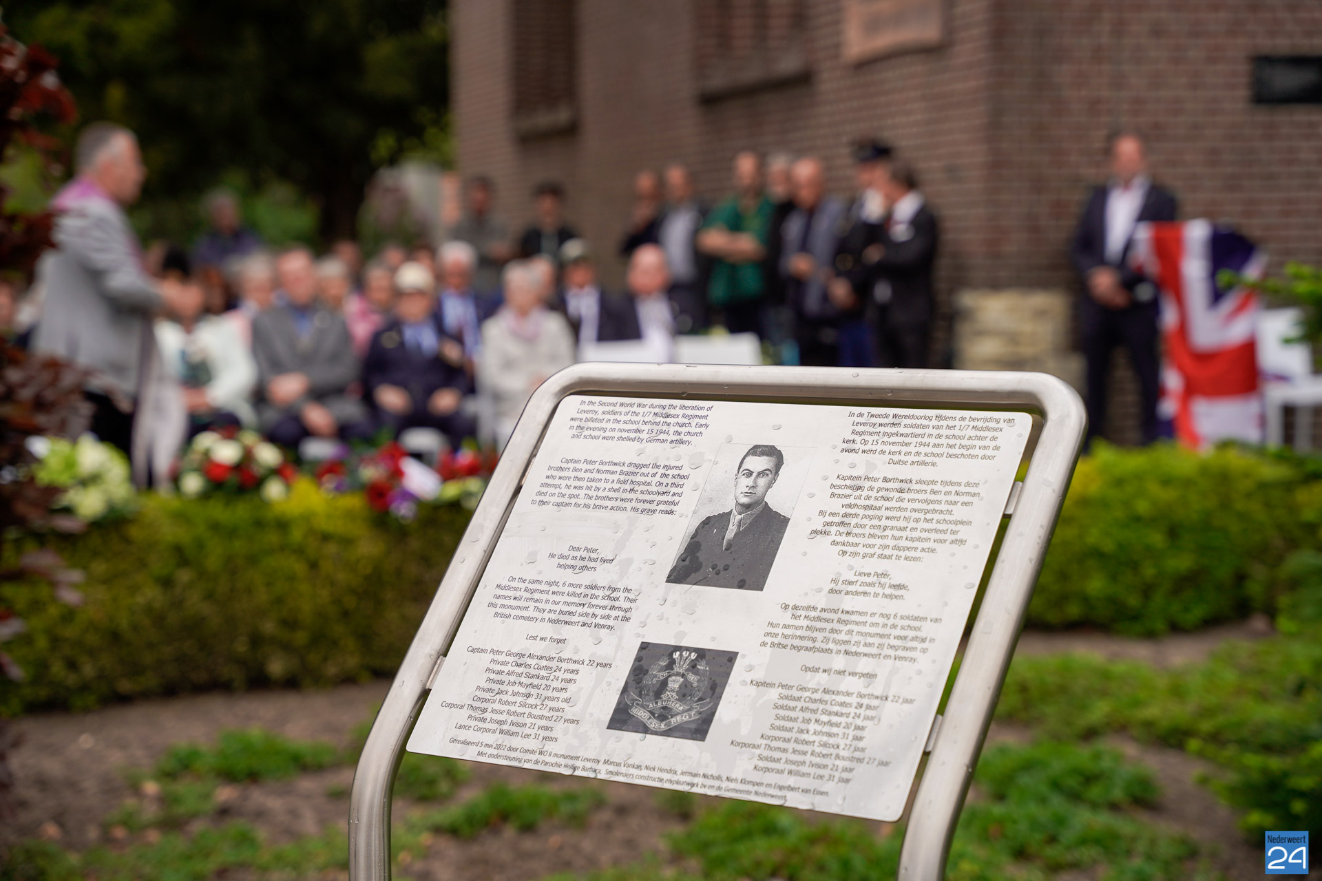 Op donderdag 5 mei, Bevrijdingsdag werd er in Leveroy voor de kerk een nieuw oorlogsmonument onthuld ter herinnering aan de heroïsche inzet van kapitein Peter Borthwick. Hij offerde op 15 november 1944 letterlijk zijn leven op om zijn kameraden te redden tijdens de zware beschietingen door Duitse artillerie op de kerk en de achterliggende school. Soldaten van het 1/7 Middlesex Regiment waren destijds ingekwartierd in de school.