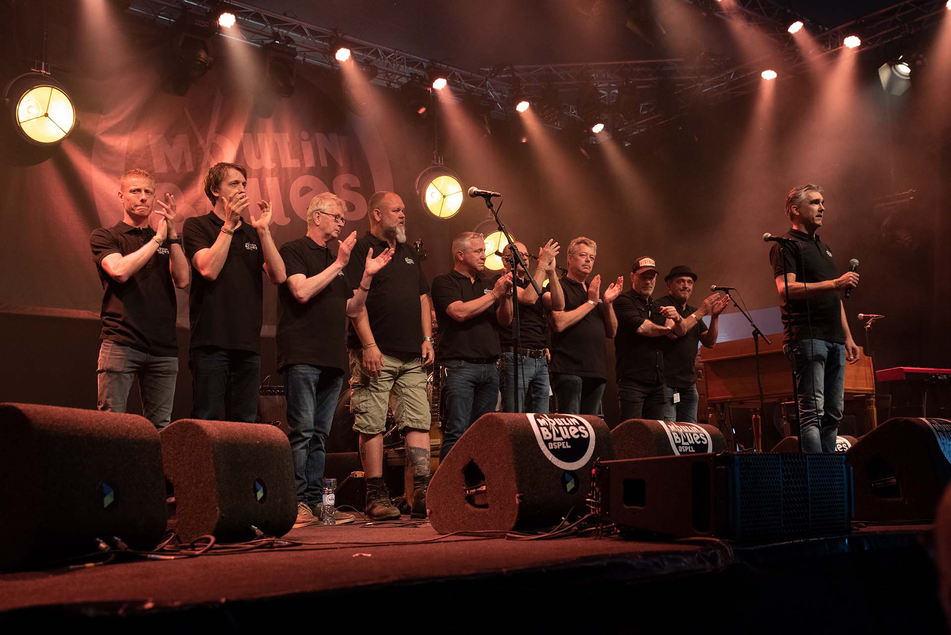 Ook een woord van dank voor alle vrijwilligers, bezoekers, medewerkers en een ieder die iets met Moulin Blues te maken heeft of heeft gehad. Er was een eerbetoon voor iedereen die de afgelopen jaren iemand verloren is of er zelf niet meer bij kan zijn. Er werd niet gevraagd om stilte, maar om luid applaus voor alle dierbaren van Moulin Blues én voor Fons. Hier werd massaal gehoor aan gegeven. De grote tent was één grote mensenmassa met de handen op elkaar voor alle kanjers van de Moulin Blues. “Een groot woord van dank, namens organisatie van Moulin Blues“.
