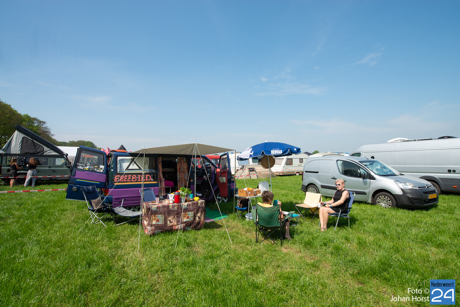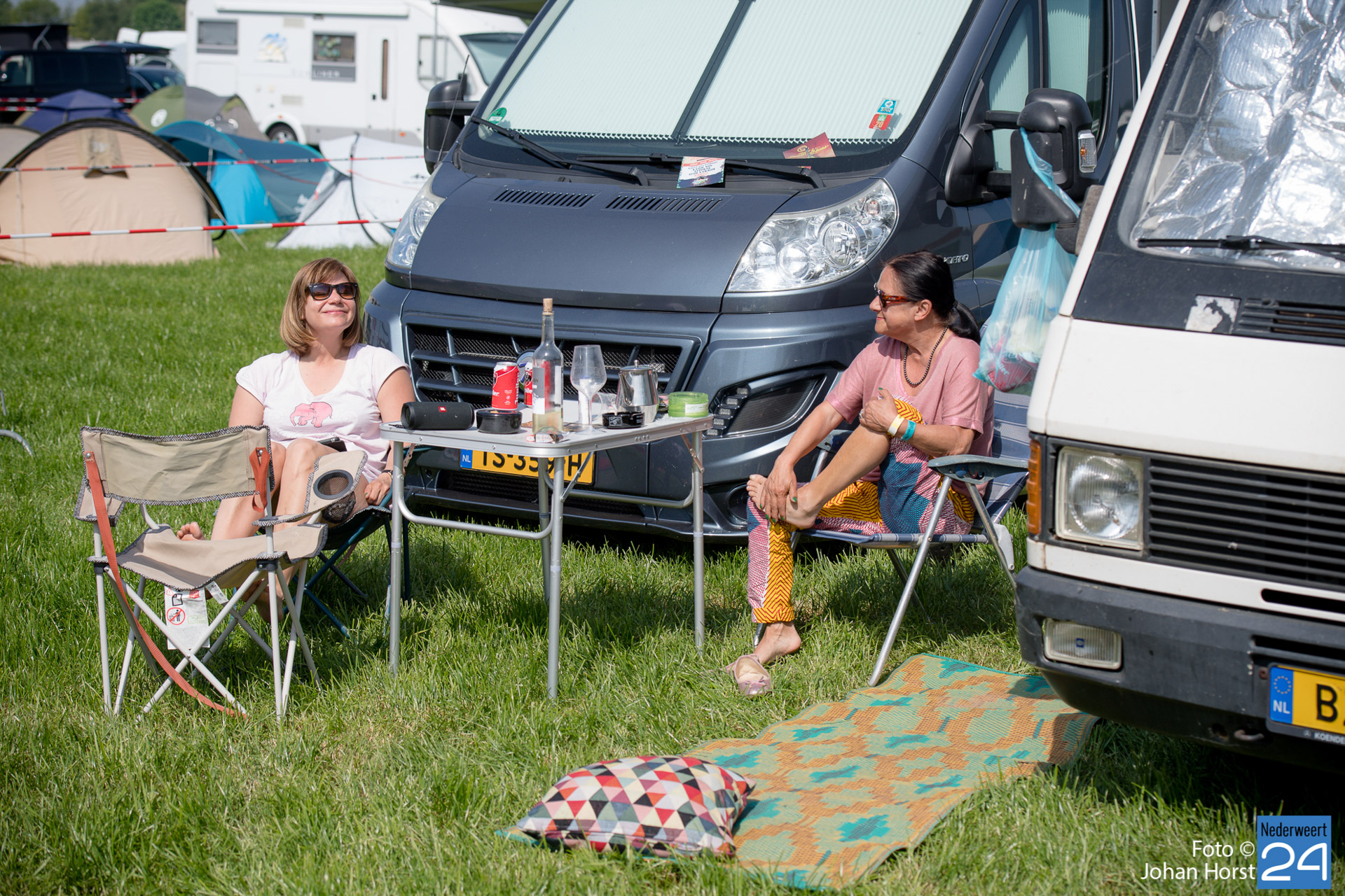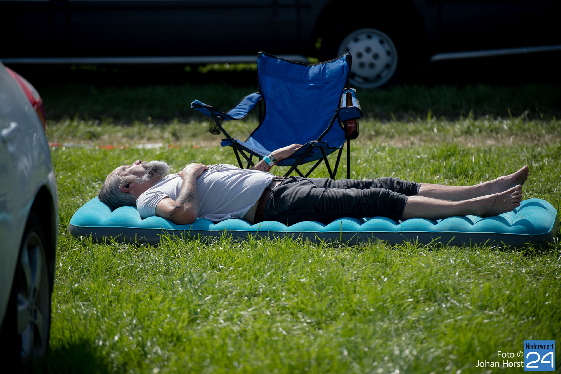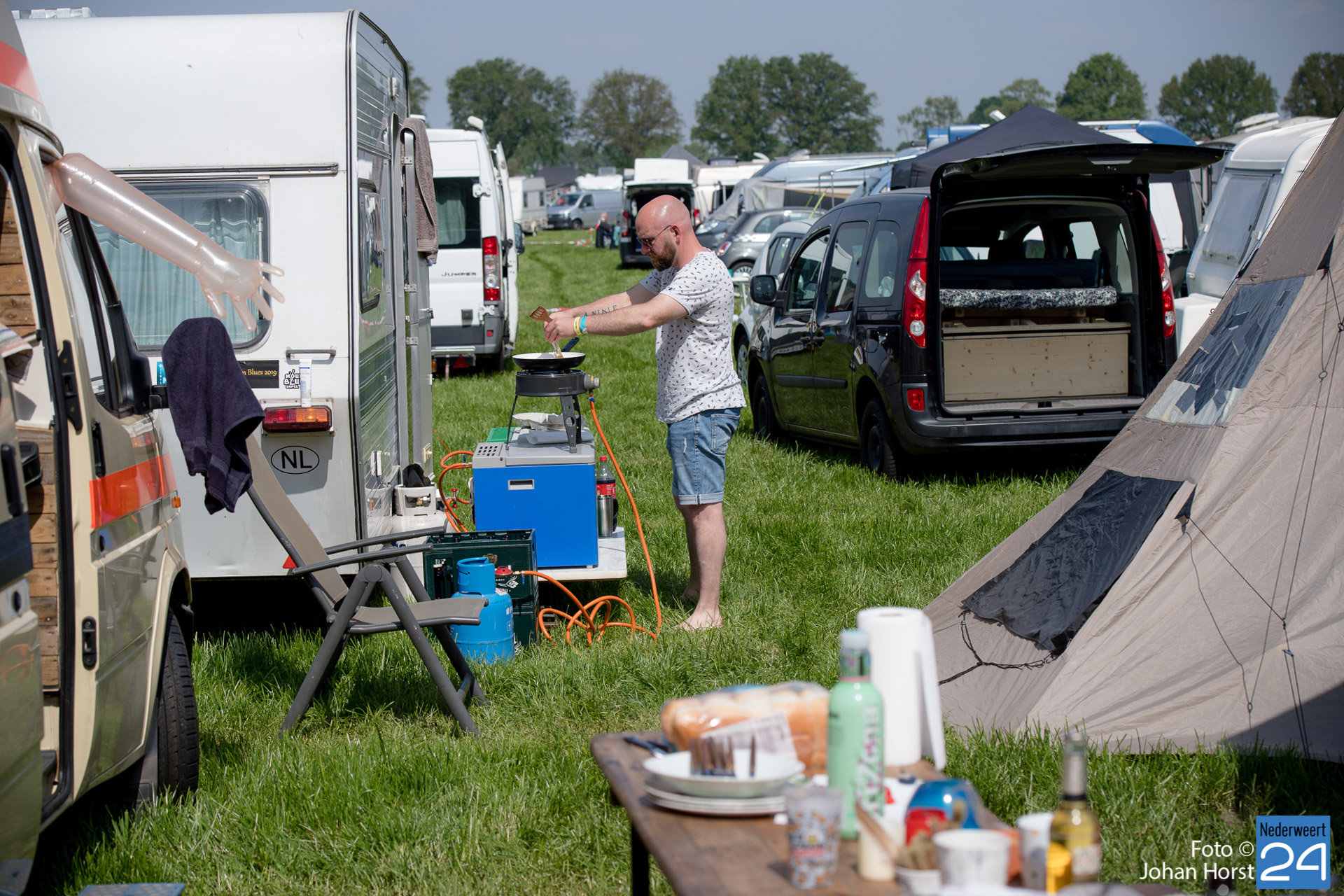 Ontwaken op Moulin Blues. Dat deed zaterdagochtend iedereen op zijn of haar eigen manier. De eerste biertjes gingen er in de vroege uurtjes al door. Terwijl de een lekker rustig in een boekje zit te lezen, proosten anderen op een nieuwe festival dag in de wei in Ospel.