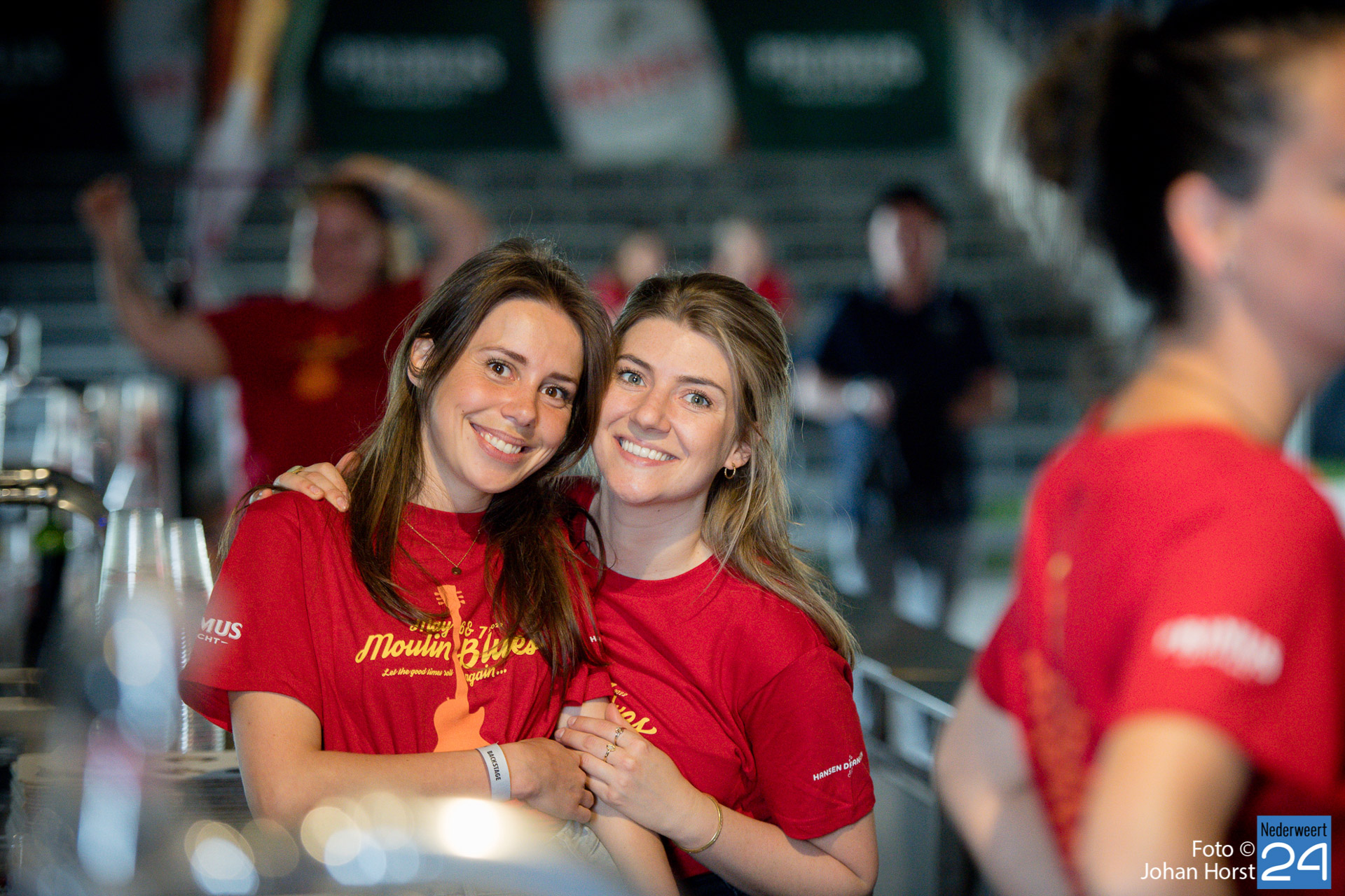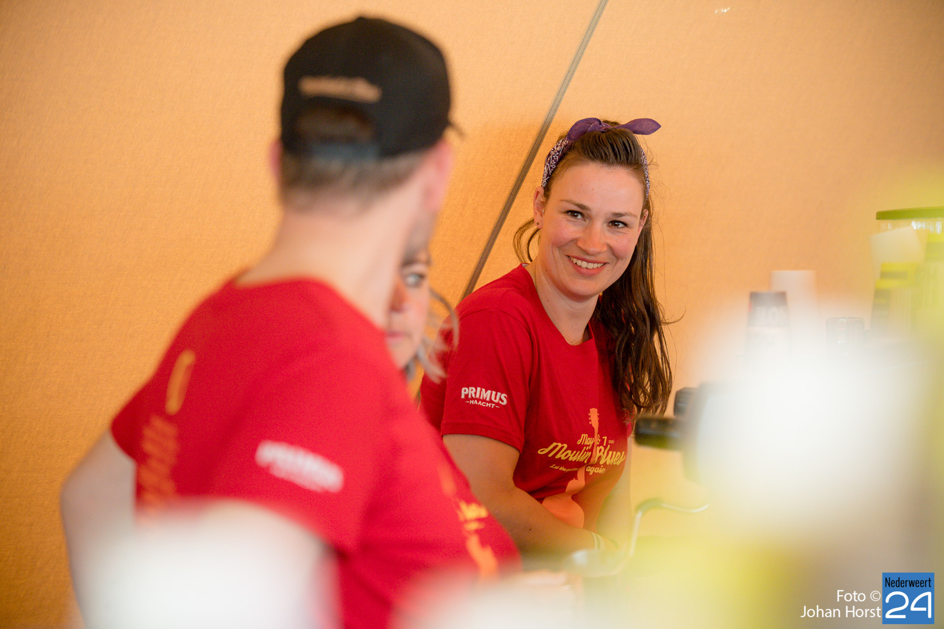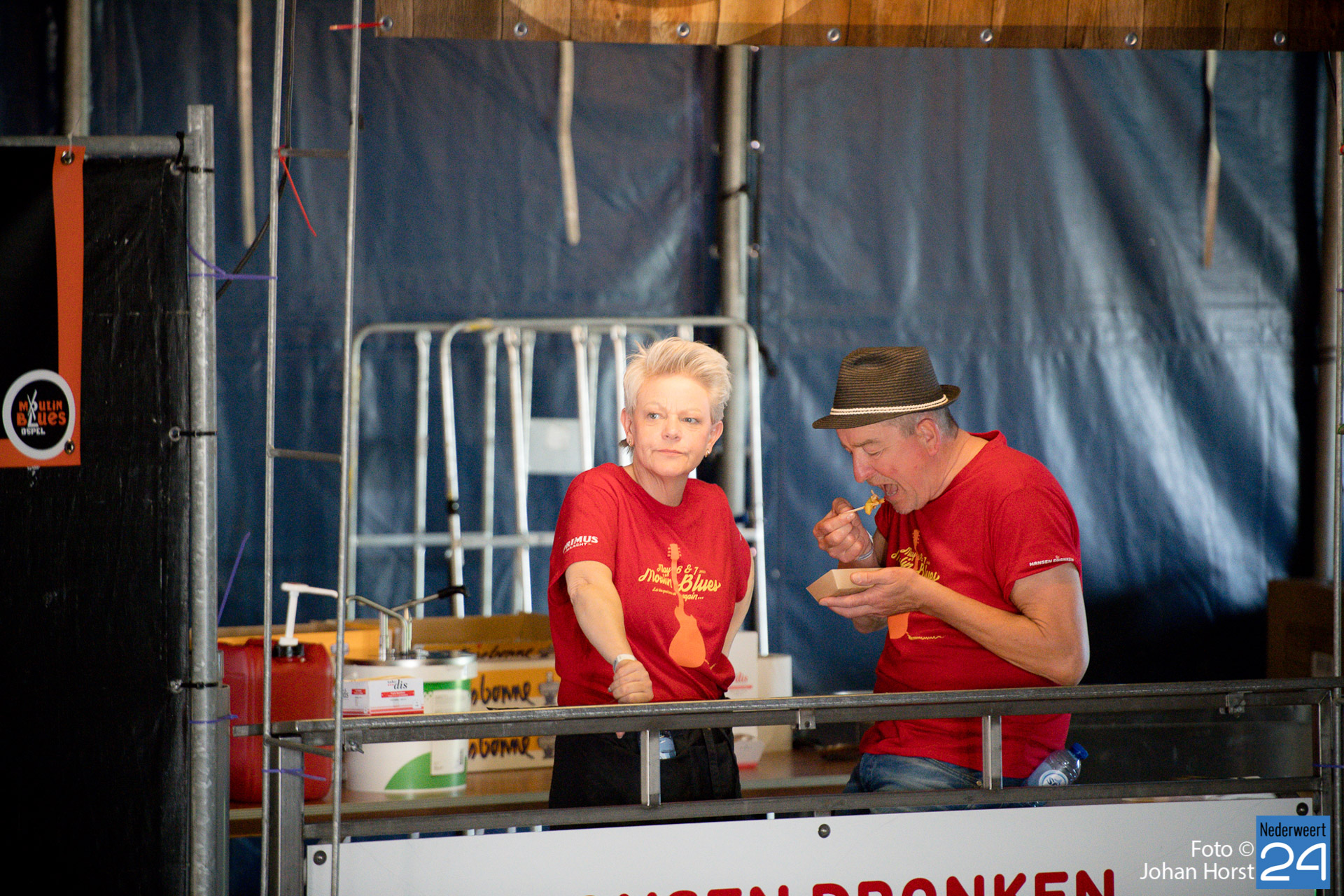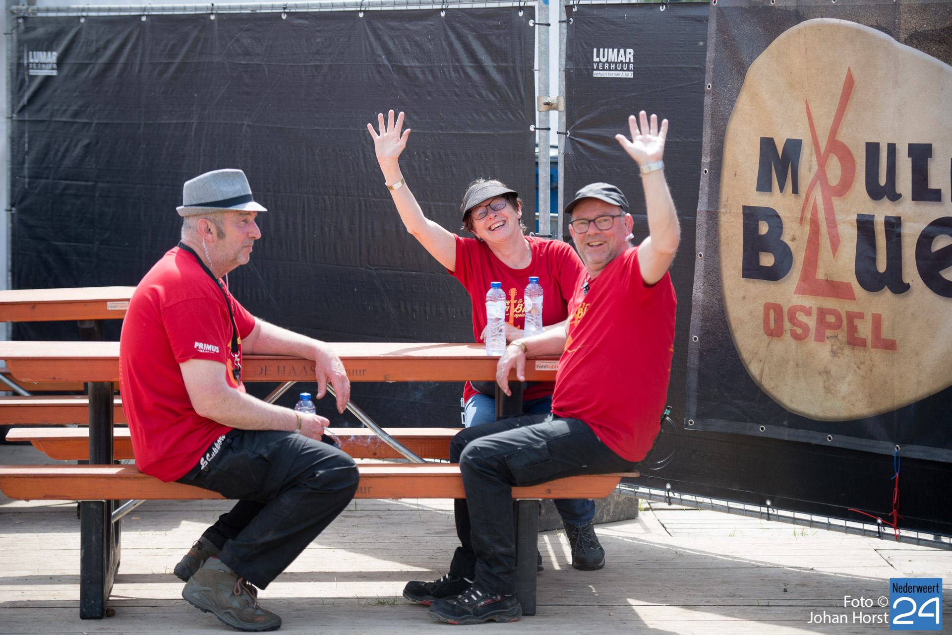 De rode shirtjes, ze zijn onmisbaar op Moulin Blues in Ospel. De vele vrijwilligers, je ziet ze werkelijk overal op het festivalterrein. Ze helpen ook dit jaar weer mee om er een fantastische editie van te maken. Ondanks het harde werk hebben de vrijwilligers natuurlijk ook een hoop plezier in de Ospelse-wei.