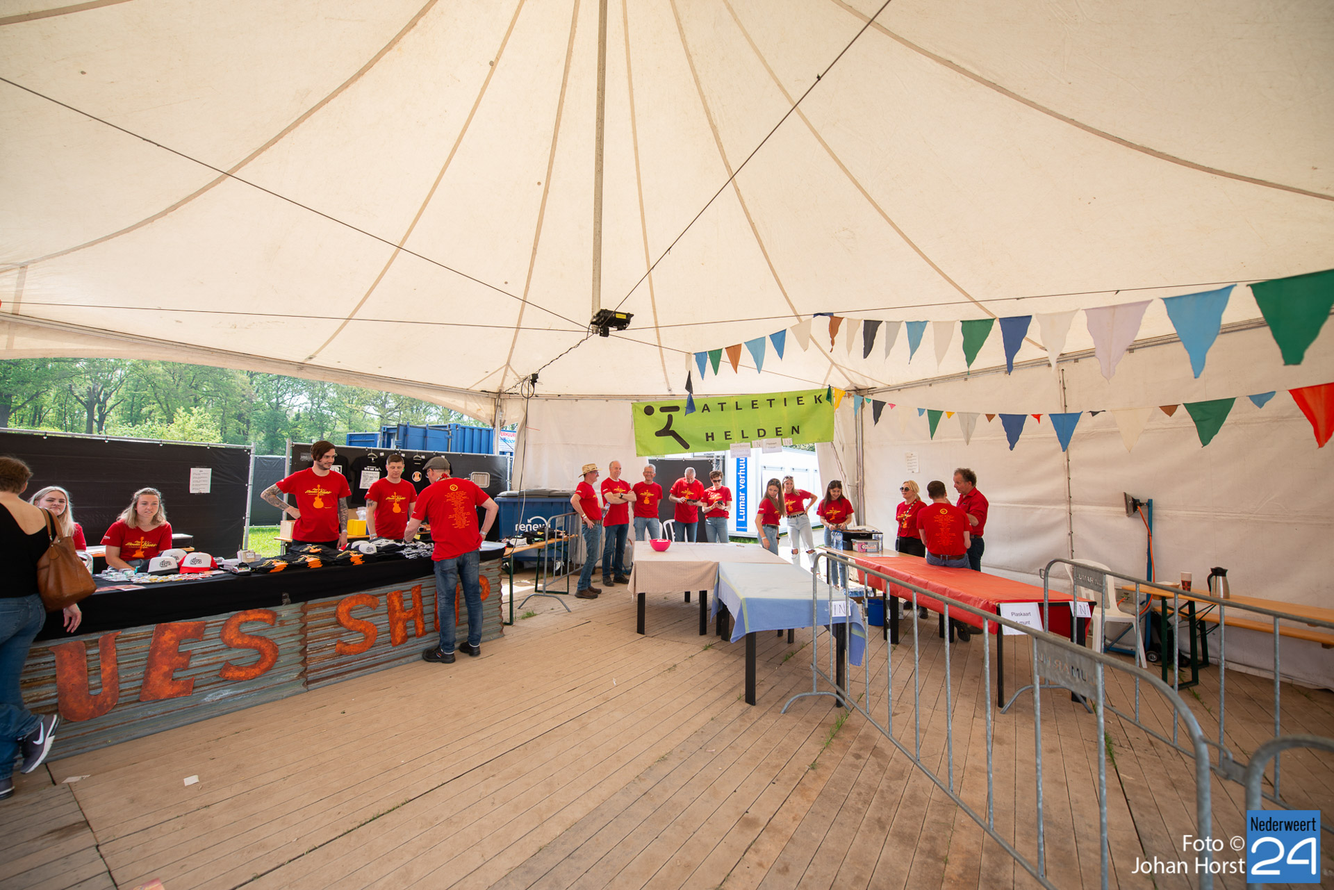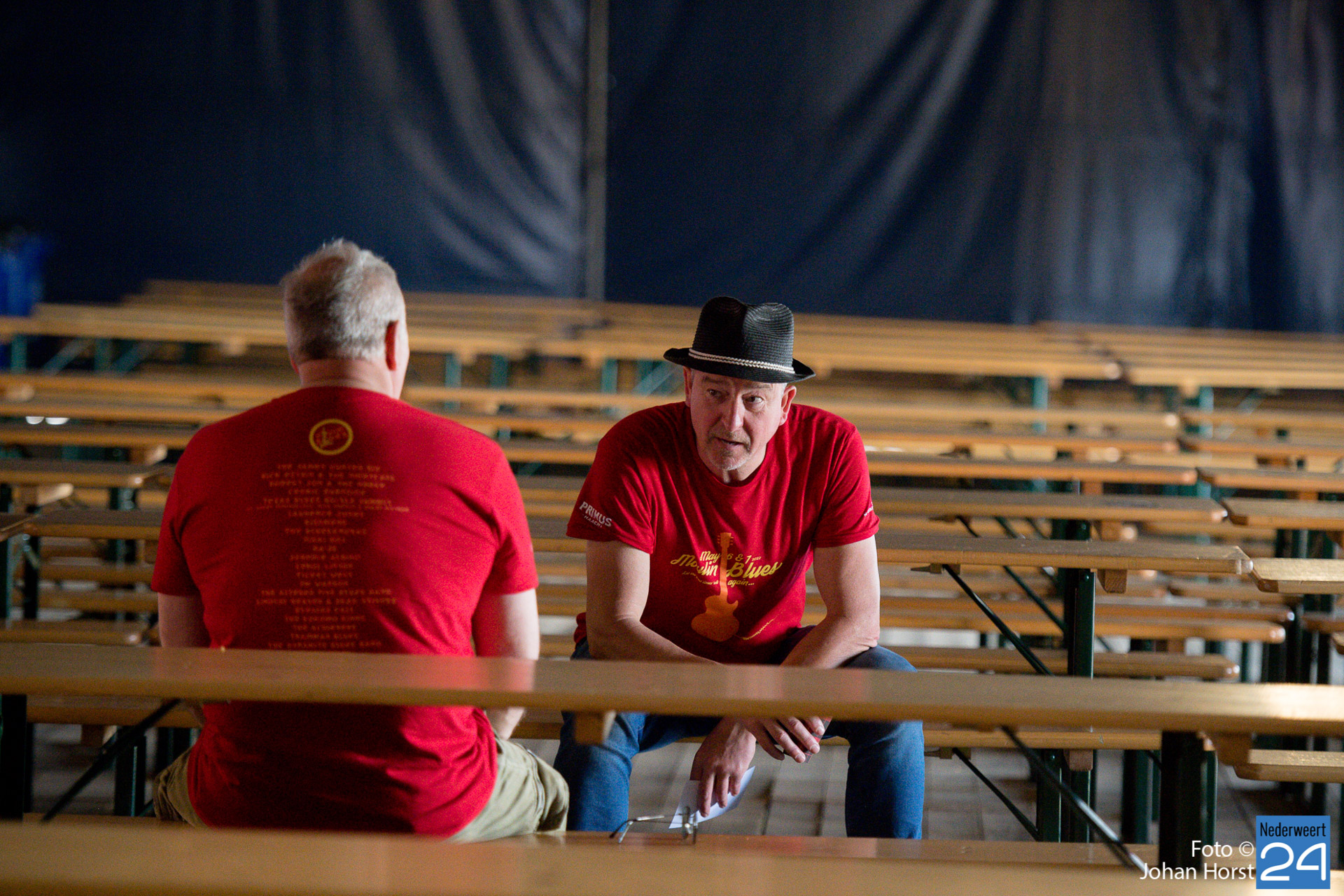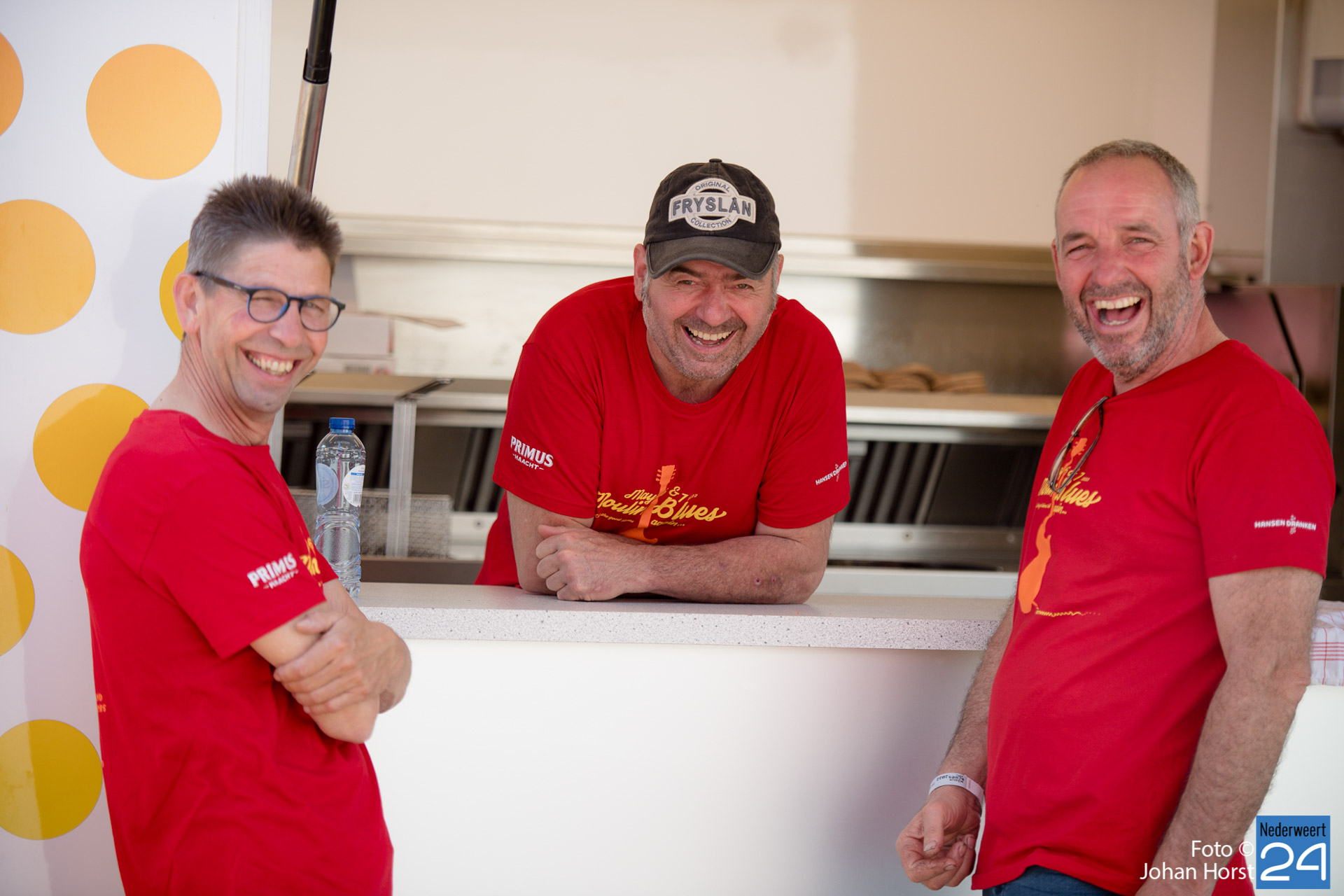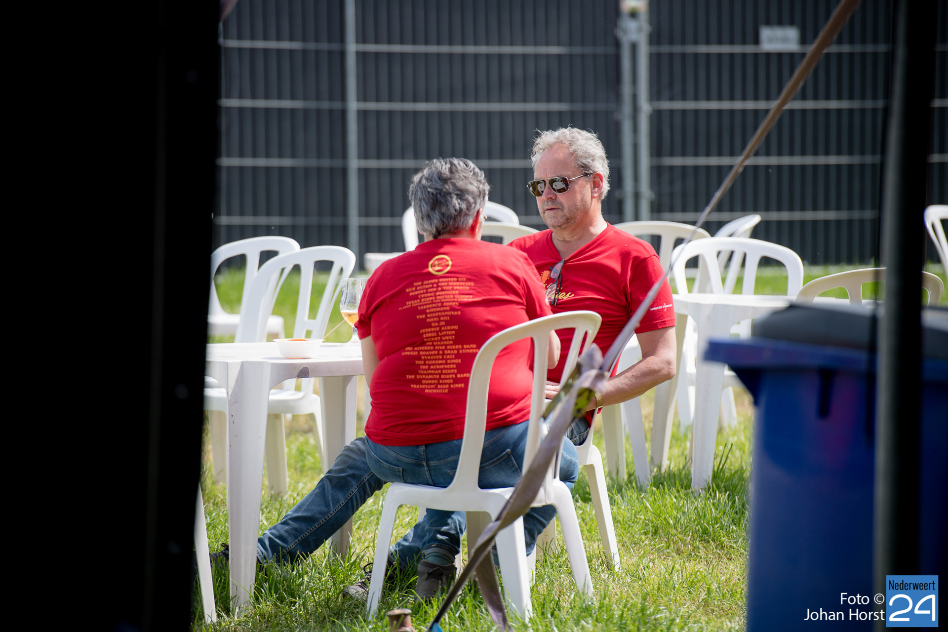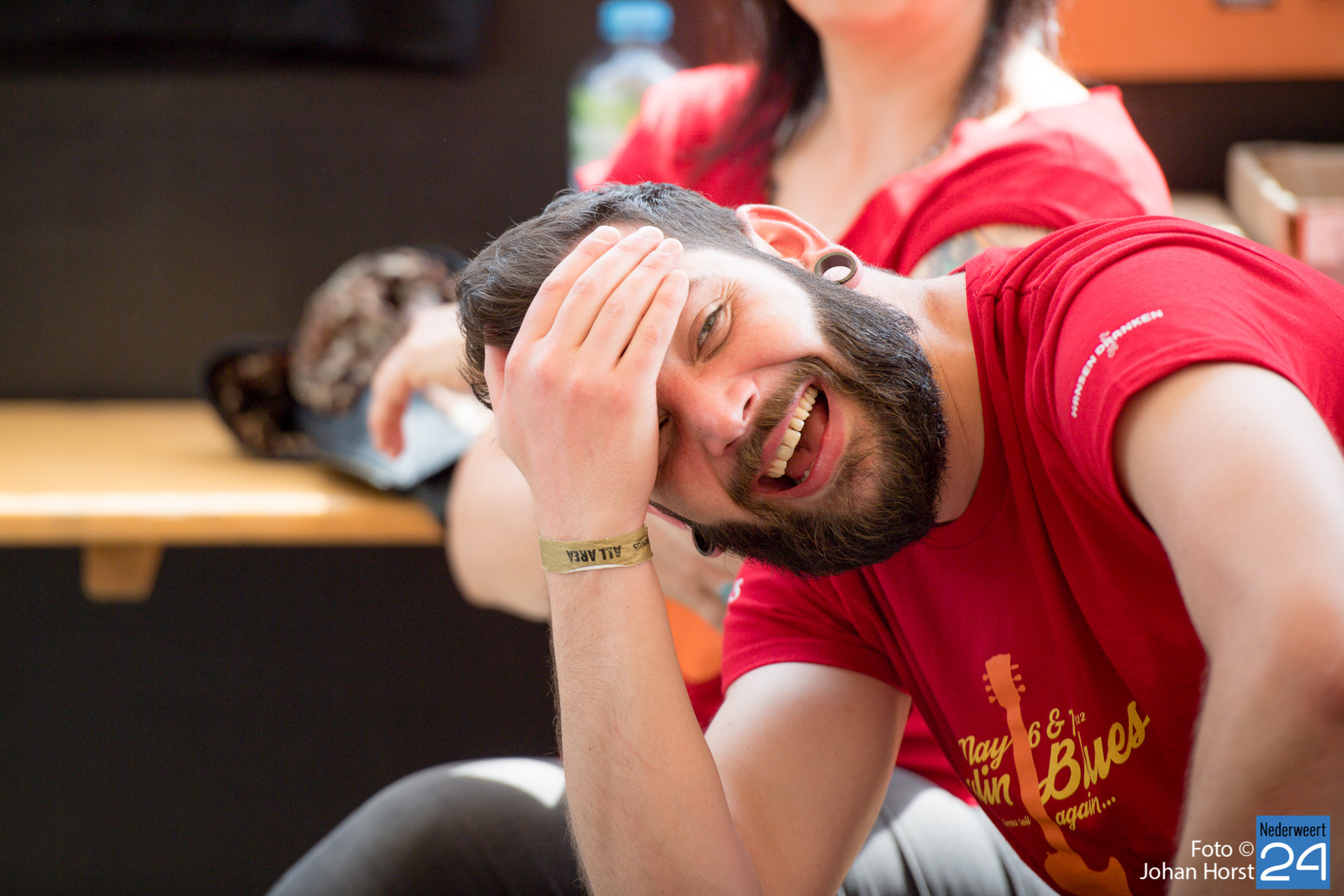 De rode shirtjes, ze zijn onmisbaar op Moulin Blues in Ospel. De vele vrijwilligers, je ziet ze werkelijk overal op het festivalterrein. Ze helpen ook dit jaar weer mee om er een fantastische editie van te maken. Ondanks het harde werk hebben de vrijwilligers natuurlijk ook een hoop plezier in de Ospelse-wei.