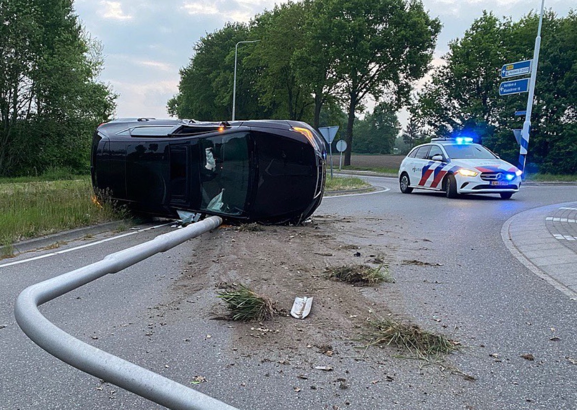 Bestuurder ramt lantaarnpalen en slaat over de kop in Roggel