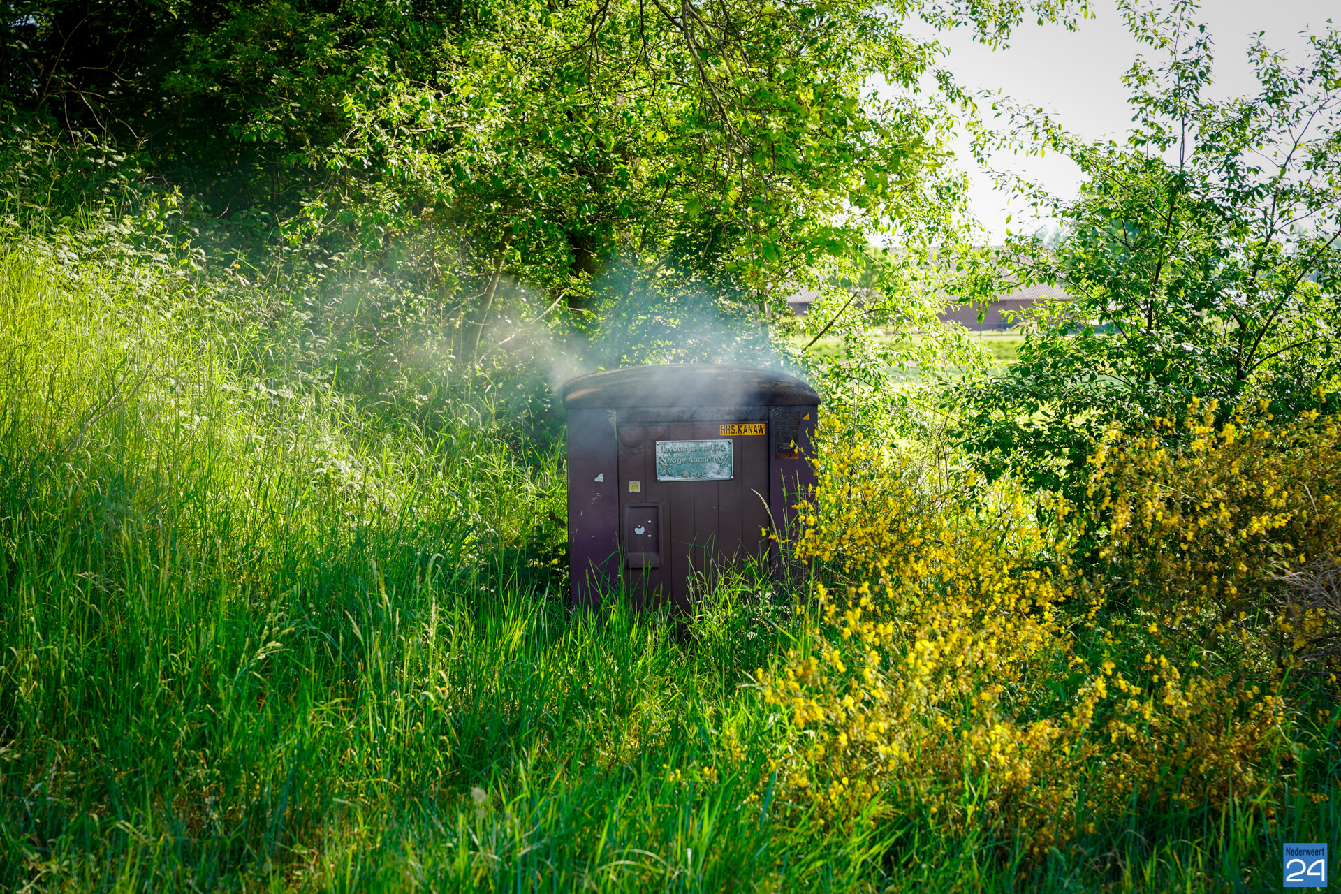 Maandagochtend is er brand ontstaan in een transformatorhuisje aan de Kanaalweg in Grathem.