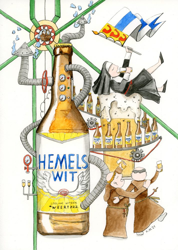 Het witbier is opnieuw gebrouwen onder begeleiding van amateurbrouwer René Janssen naar het authentiek recept uit 1838 van de franciscaanse brouwerij uit Weert. Een goed doordrinkbare, bruisende en frisse dorstlesser. Zacht moutig met een lichte zoetje, kruidigheid van vlierbloesem en koriander en met een afdronk met licht bittertje . Je proeft de hemel! Hemels Wit is een ambachtelijk gebrouwen bier en wordt gebrouwen in de stadsbrouwerij Weert. Het smaakt naar meer. Als je goed proeft, herken je het belangrijke ingrediënt dat onlosmakelijk is verbonden met de franciscanen het Zonnelied van Franciscus, dat gaat over de mooie aspecten van de schepping: broeder zon, zuster water, broeder vuur.
