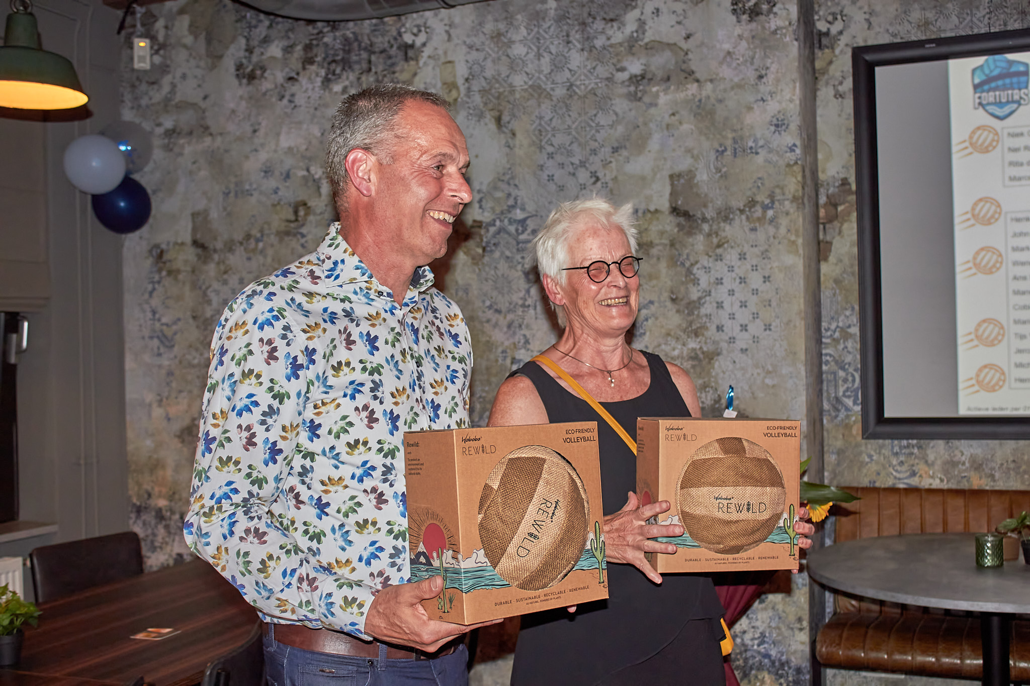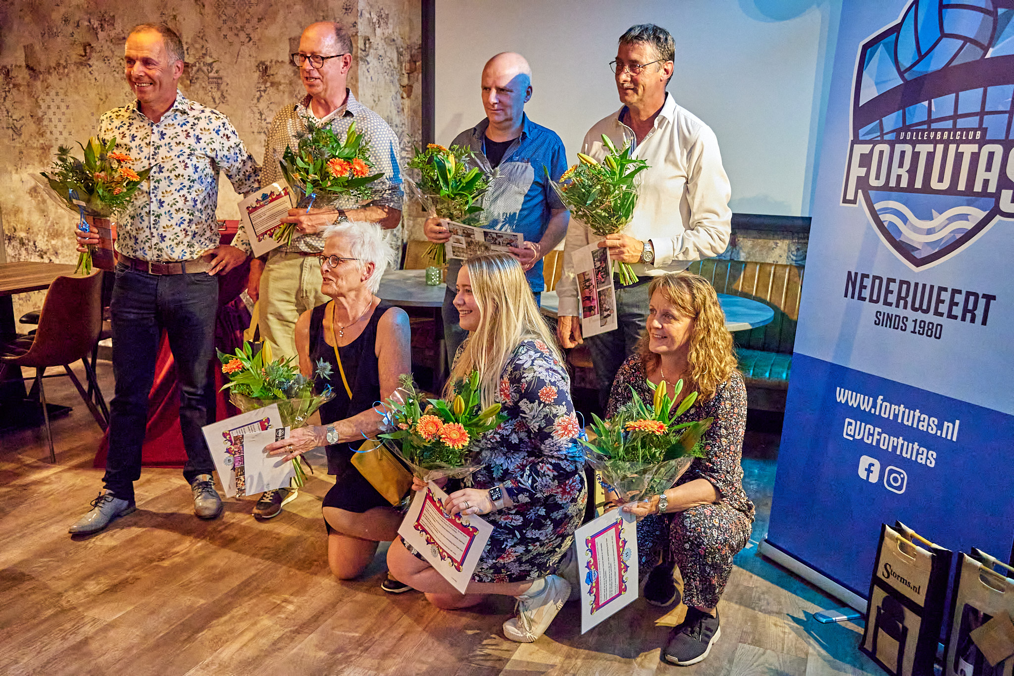 Voorzitter Niek Creemers en Ruud Bergwerff, Regiovoorzitter Zuid en Bondsbestuurslid Nevobo richten het woord tot de aanwezigen en voor elke jubilaris was een persoonlijk huldigingstekst gemaakt. Elke jubilaris kreeg een mooie attentie, een bloemetje en een oorkonde. Aan Niek en Nel werd door de Regiovoorzitter een bijzondere beachvolleybal geschonken voor hun 40 jaar lidmaatschap. De bal is duurzaam geproduceerd en kan weer hergebruikt worden. Fortutas gaat mee met zijn tijd en gaat voor gezond en gezellig volleyballen in een duurzame omgeving.