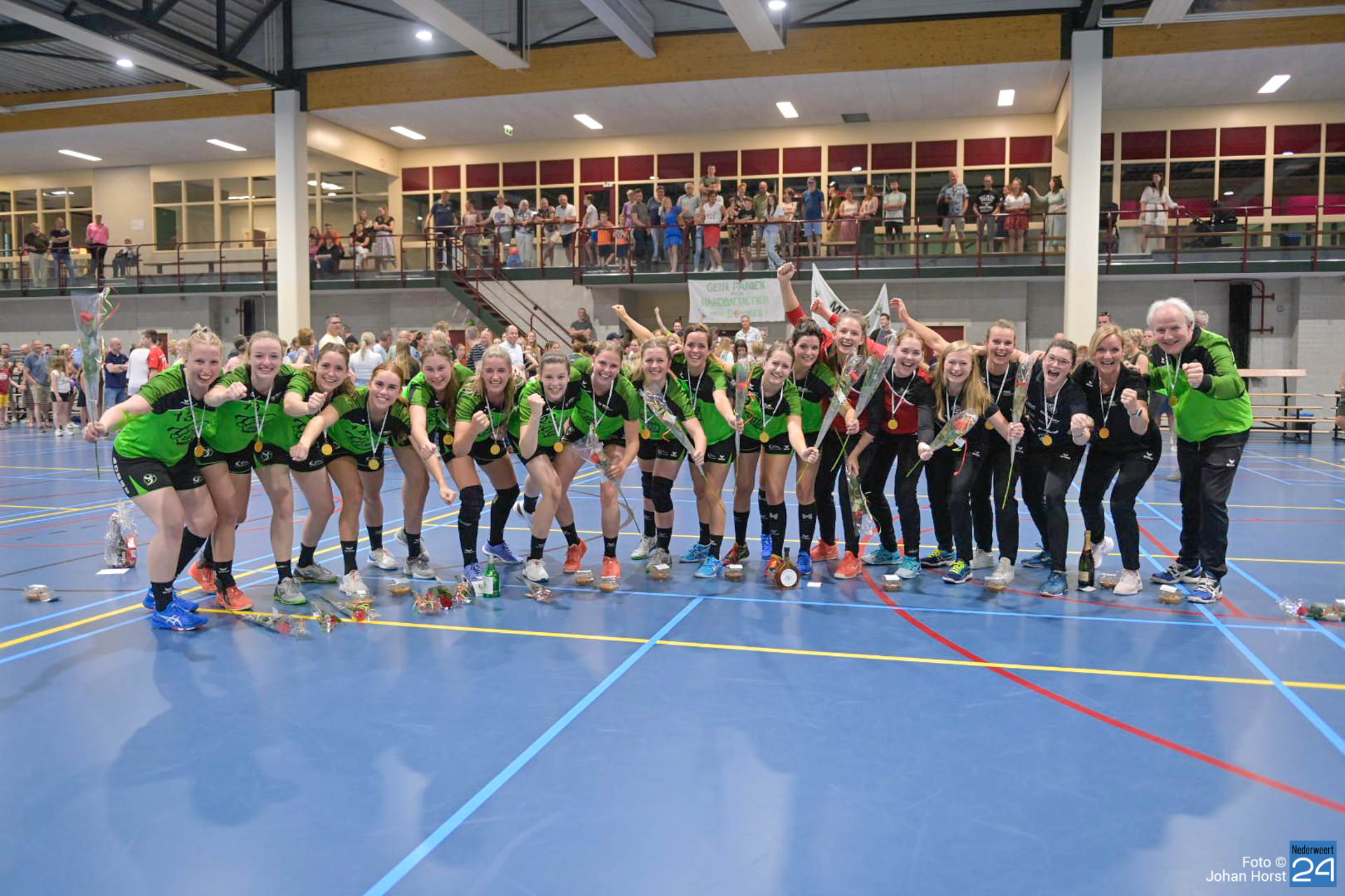 Gister werden de Dames E1 en D1 ook al kampioen. Het gaat goed met de handbalsters uit Nederweert.