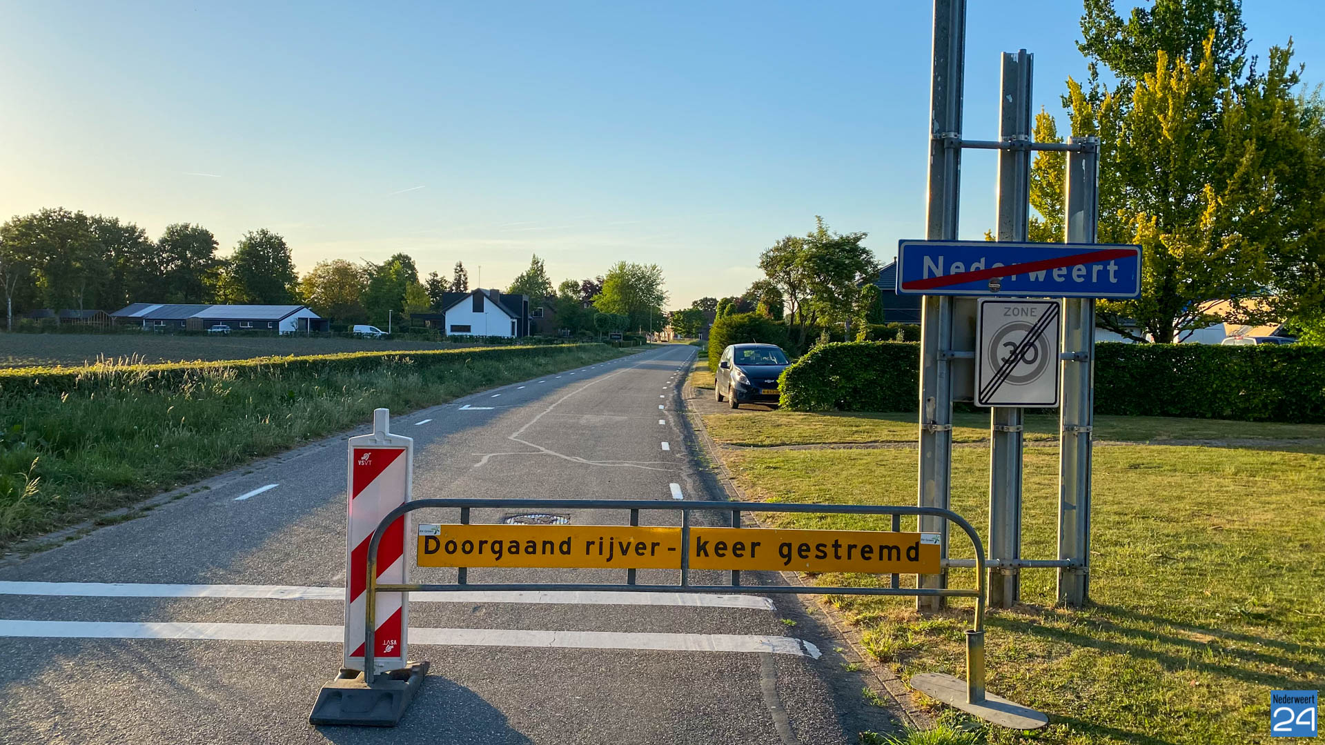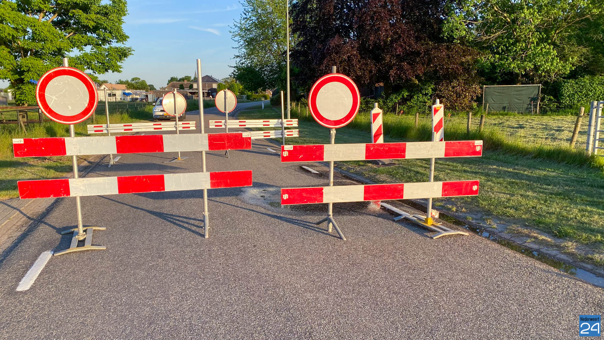 De weg Strateris in Nederweert is afgesloten voor al het verkeer tussen de Hoebensstraat en de Herstraat.