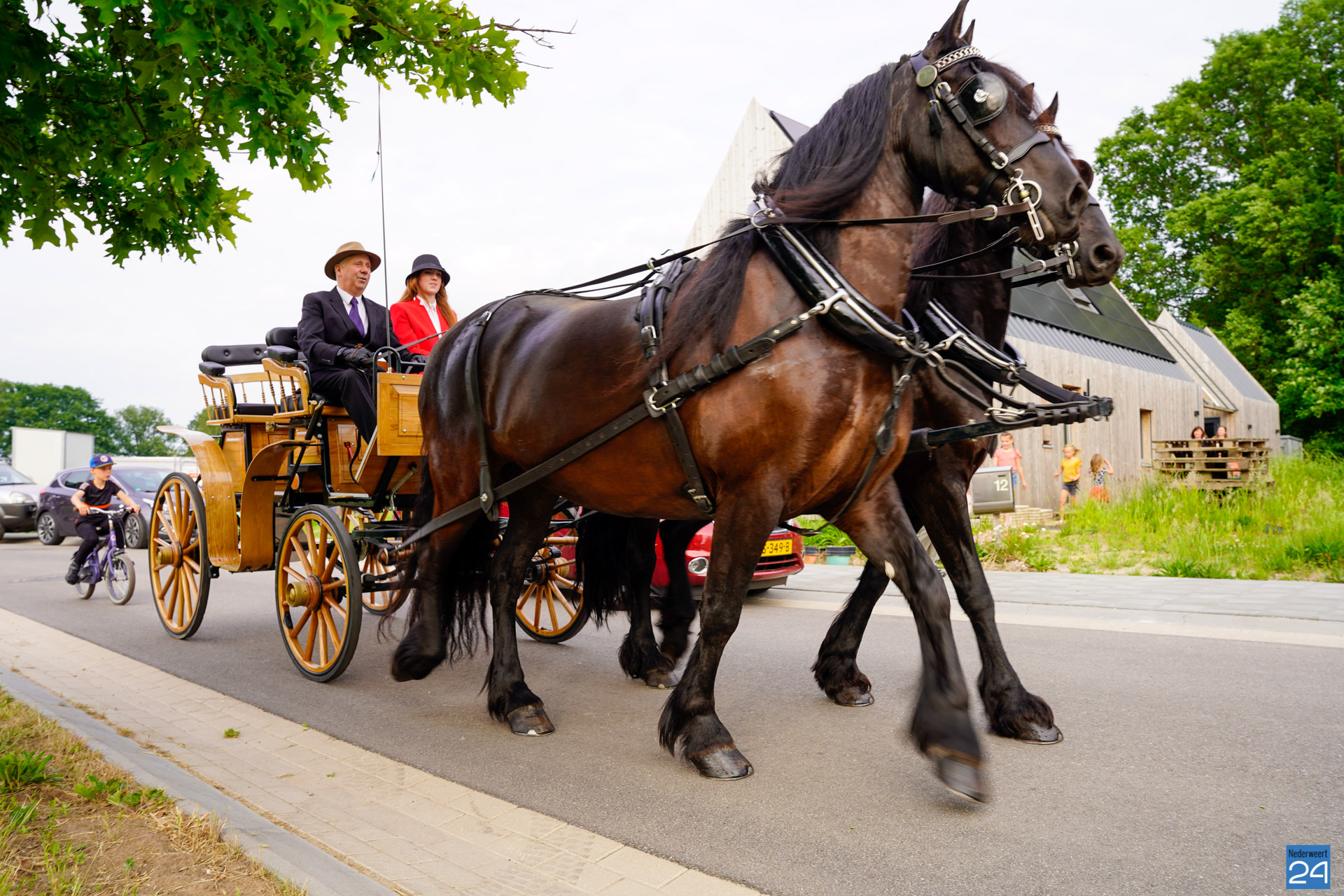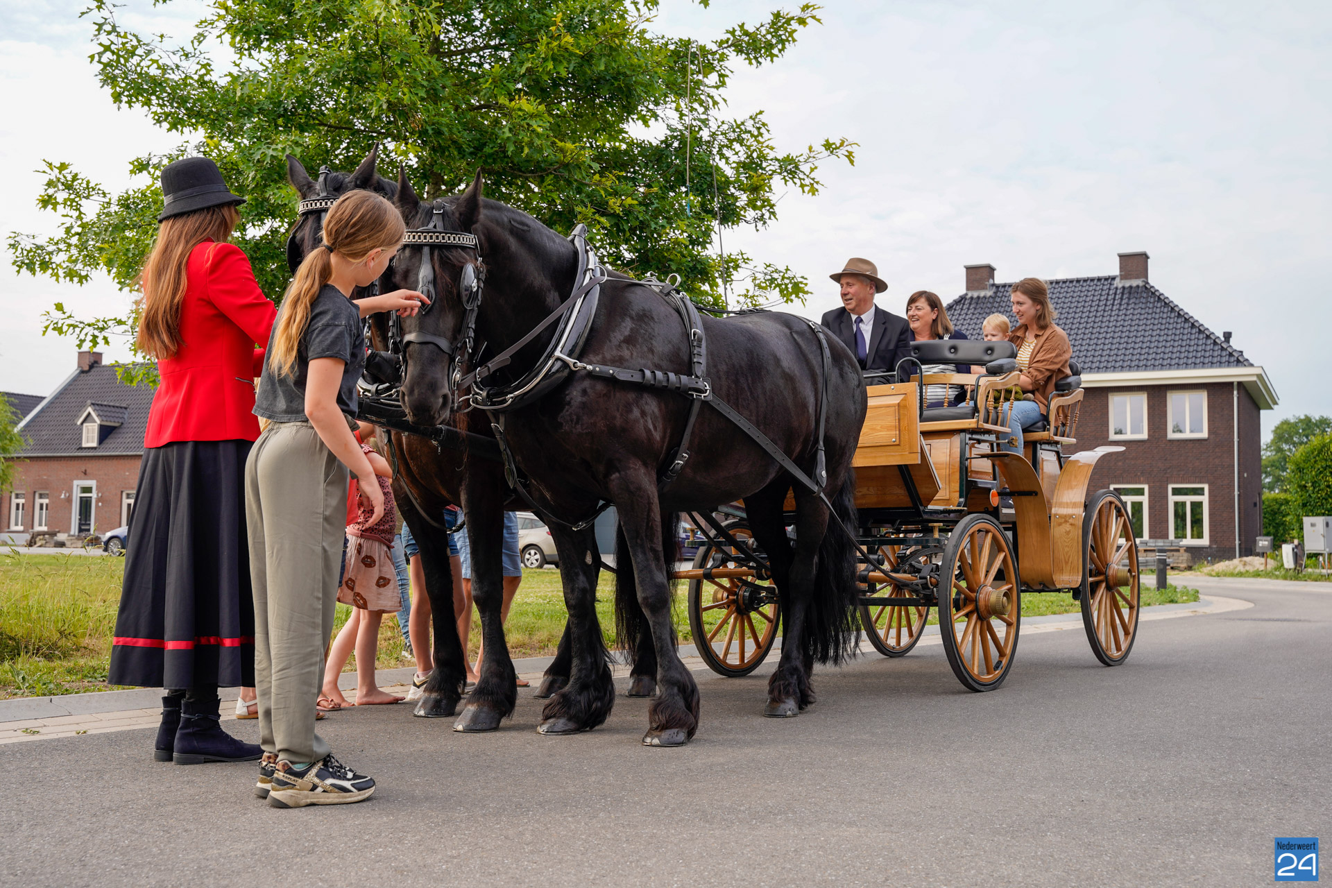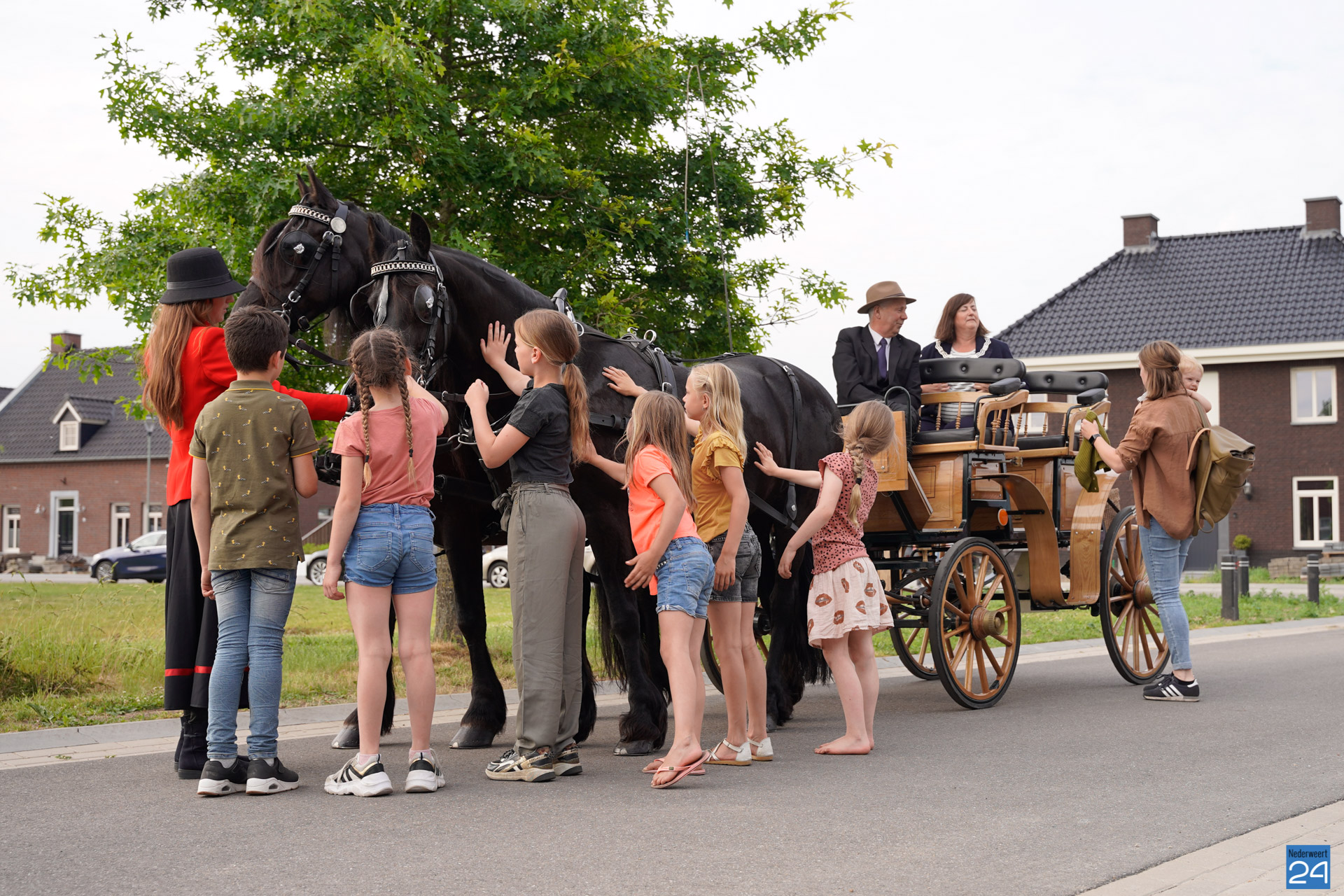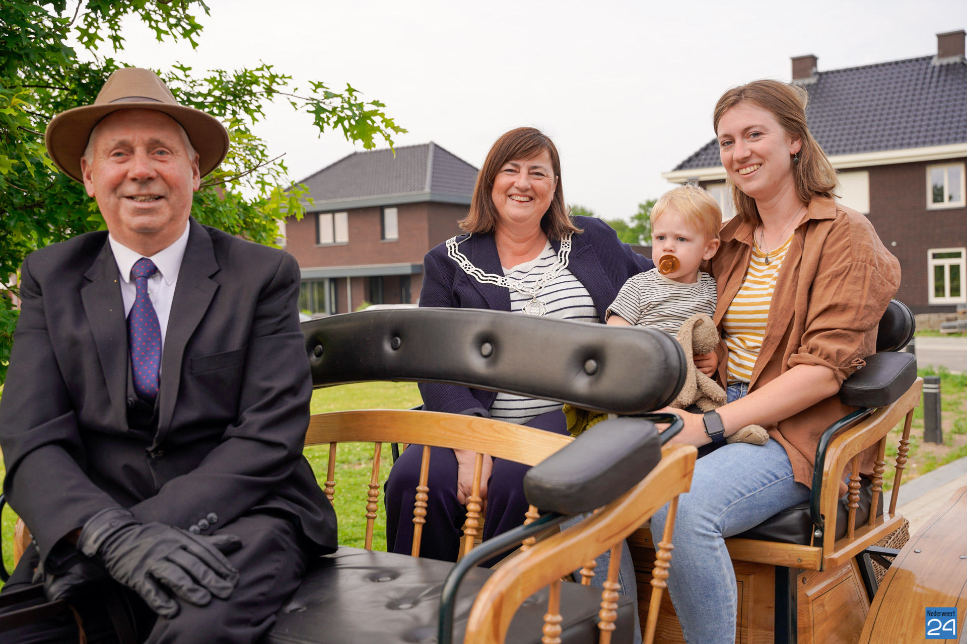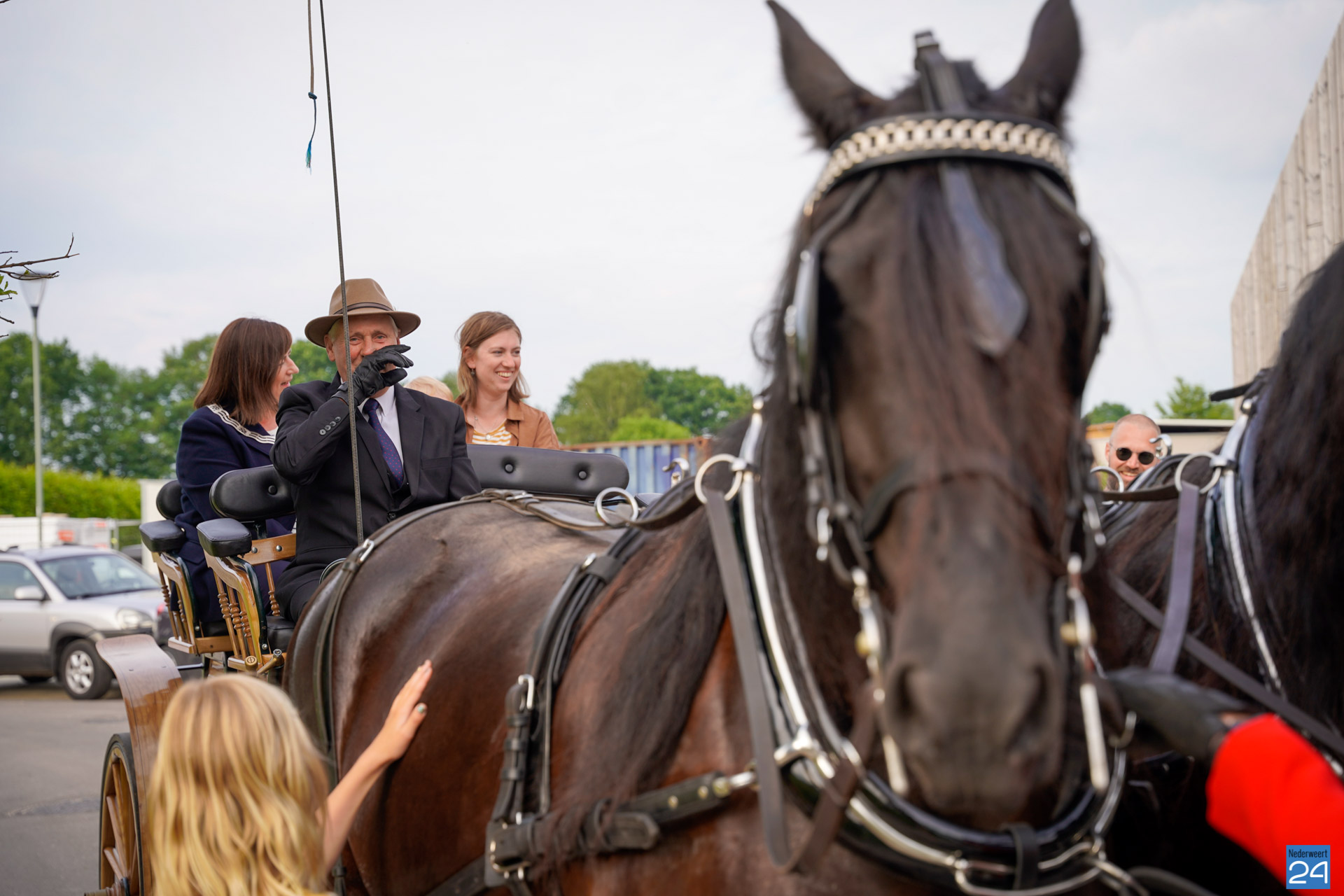 Rond de klok van zeven uur stond twee paarden met een koets voor de deur van burgemeester Op de Laak. Ook haar dochter en kleinzoon mochten mee. Op de Laak opende even later de nieuwe rijhallen van de manege aan Budschop in Nederweert.