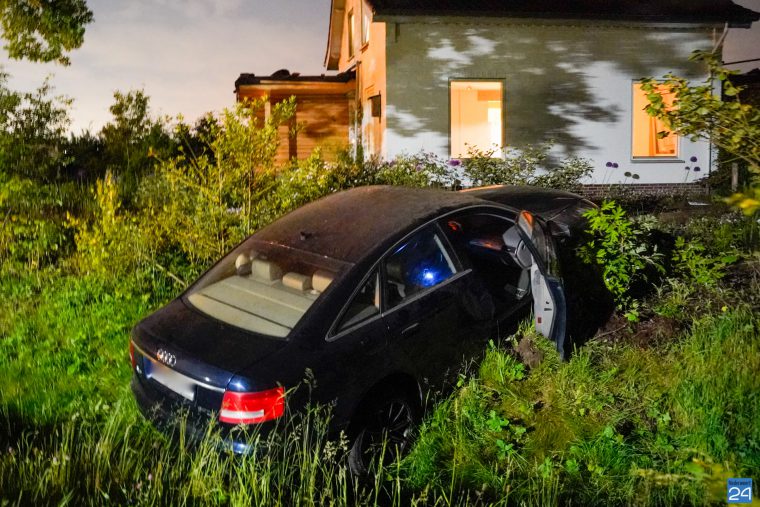 Uit voorzorg werden brandweer, politie en ook de ambulancedienst naar de plek van het ongeval gestuurd. Mogelijk kwam de auto vanuit de Geusert. Op de t-splitsing ging het mis. Het voertuig vloog over een sloot en kwam in de tuin terecht. De bestuurder probeerde nog weg te rijden, maar die poging mislukte.