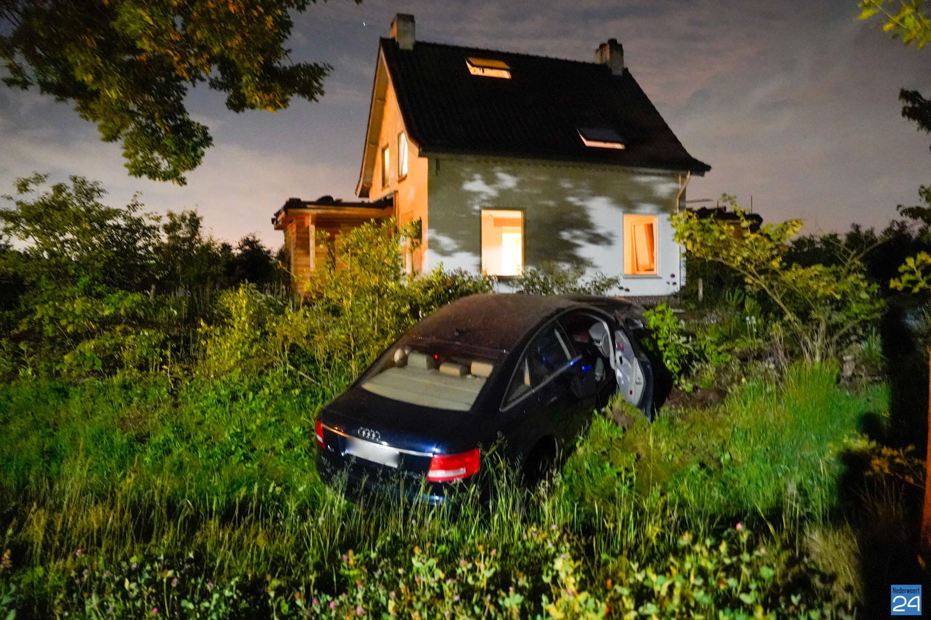 Uit voorzorg werden brandweer, politie en ook de ambulancedienst naar de plek van het ongeval gestuurd. Mogelijk kwam de auto vanuit de Geusert. Op de t-splitsing ging het mis. Het voertuig vloog over een sloot en kwam in de tuin terecht. De bestuurder probeerde nog weg te rijden, maar die poging mislukte.