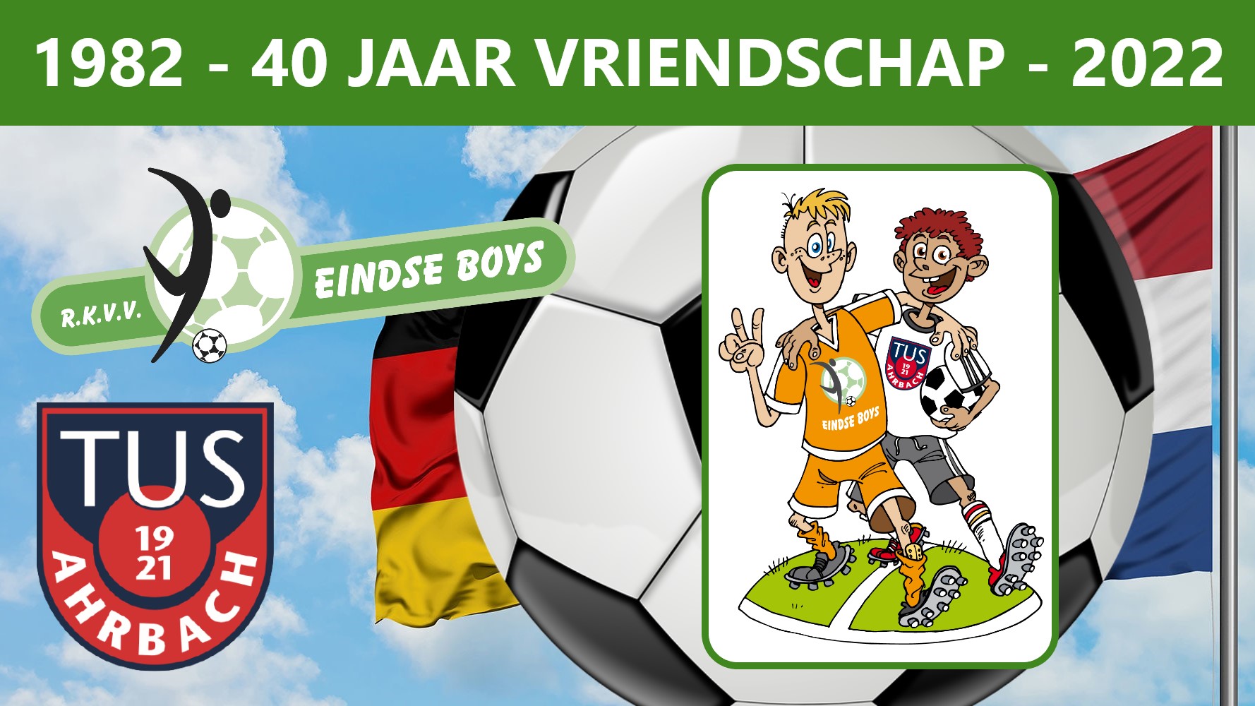 Op zaterdag 4 juni staat Eindse Boys stil bij het feit dat de vereniging al 40 jaar een zeer vriendschappelijke band heeft met TUS Ahrbach uit Ruppach-Goldhausen. In die 40 jaar heeft de vriendschap tussen Eindse Boys en TUS Ahrbach een zeer solide basis, met uitwisselingen op alle niveaus van de verenigingen. Daarom staat Sportpark op de Hooven deze Pinksterzaterdag helemaal in het teken van dit unieke jubileum.
