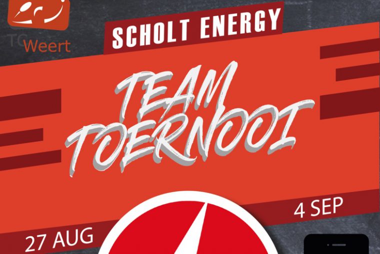 Altijd al eens met een team een toernooi willen spelen? Grijp dan nu je kans en schrijf je snel in voor het TC Weert – Scholt Energy Teamtoernooi 2022 via www.tcweert.nl. Inschrijven kan tot 1 augustus. Maar! Doe je dit uiterlijk 5 juni? Dan krijgt jouw hele team het eerste drankje van de toernooiorganisatie! En let op, vol = vol. Dus wacht niet te lang met inschrijven!