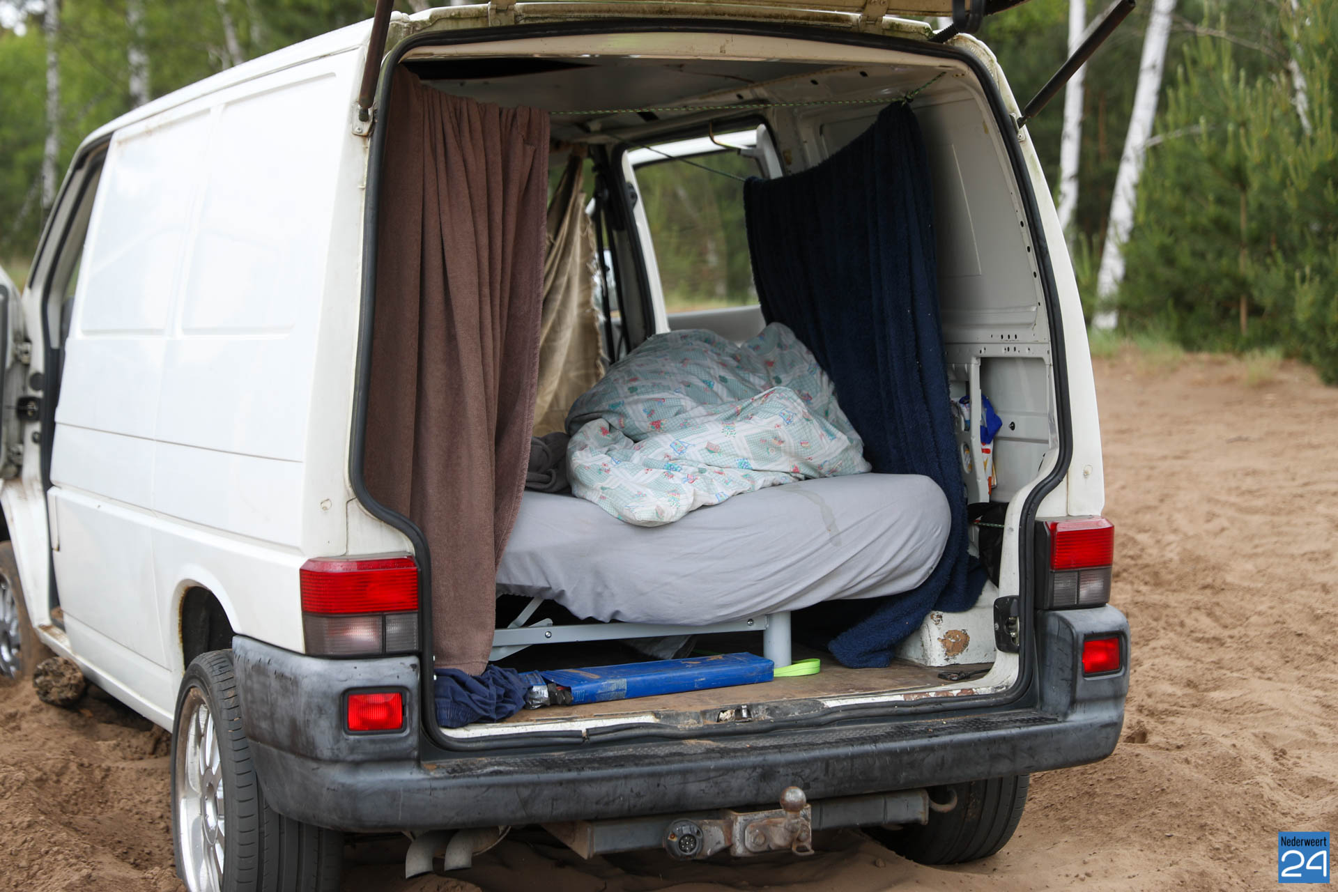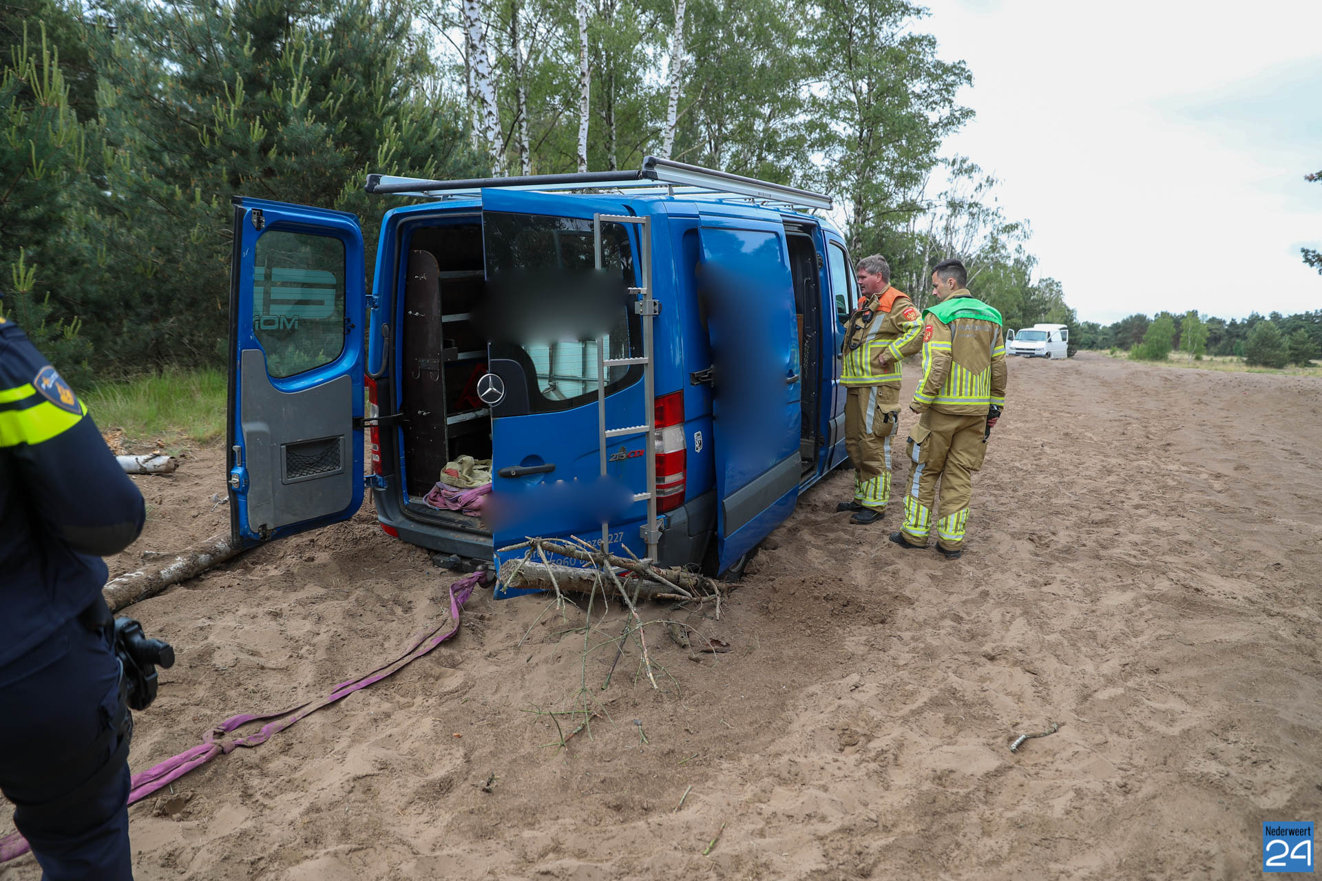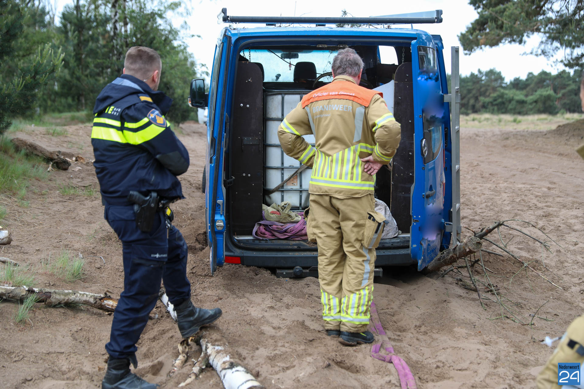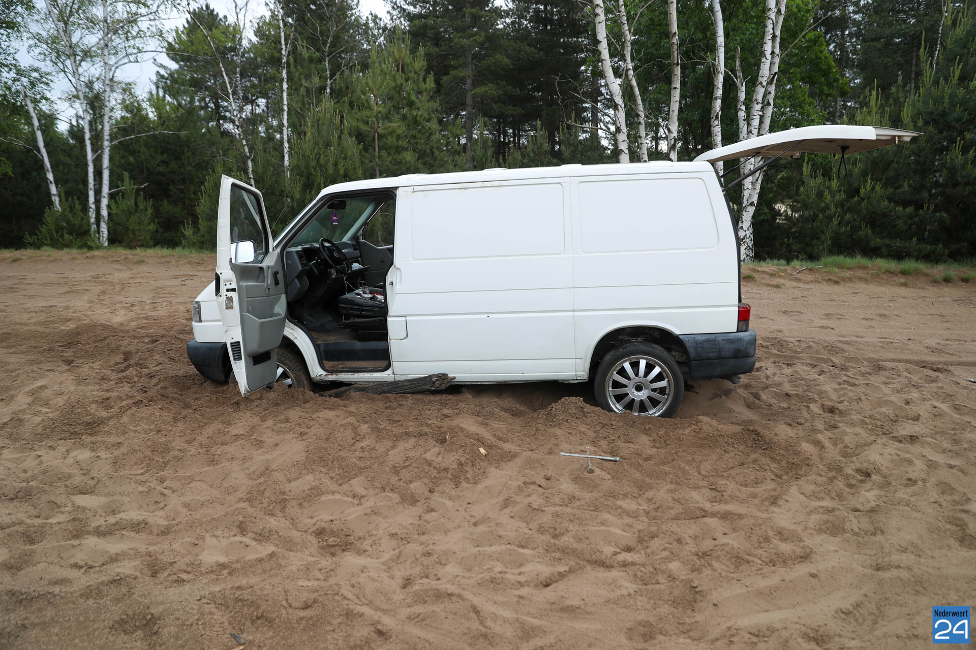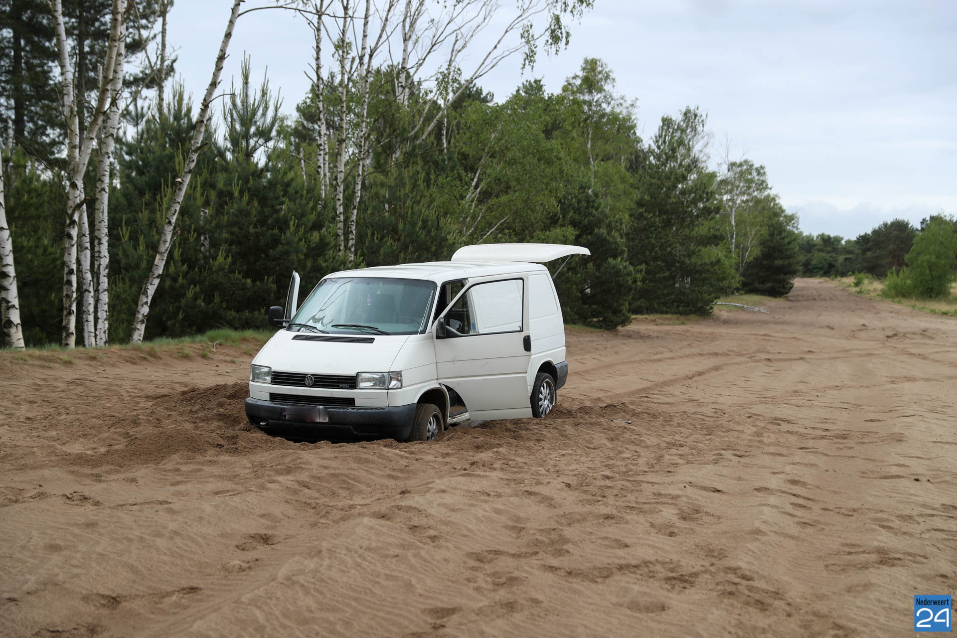 Twee bestelbusjes hebben zich zondagmorgen vast gereden in het ‘mulle zand’ van de tankbaan aan de Nieuwesteeg in de Boshoverheide in Weert.