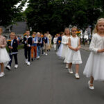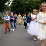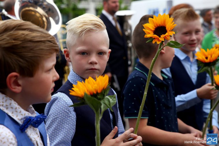 De communicanten liepen vanuit basisschool De Schrank, onder muzikale begeleiding van harmonie Melodie der Peel, vanuit school naar de kerk. Zoals elk jaar stonden er weer vele inwoners van het dorp langs de kant.