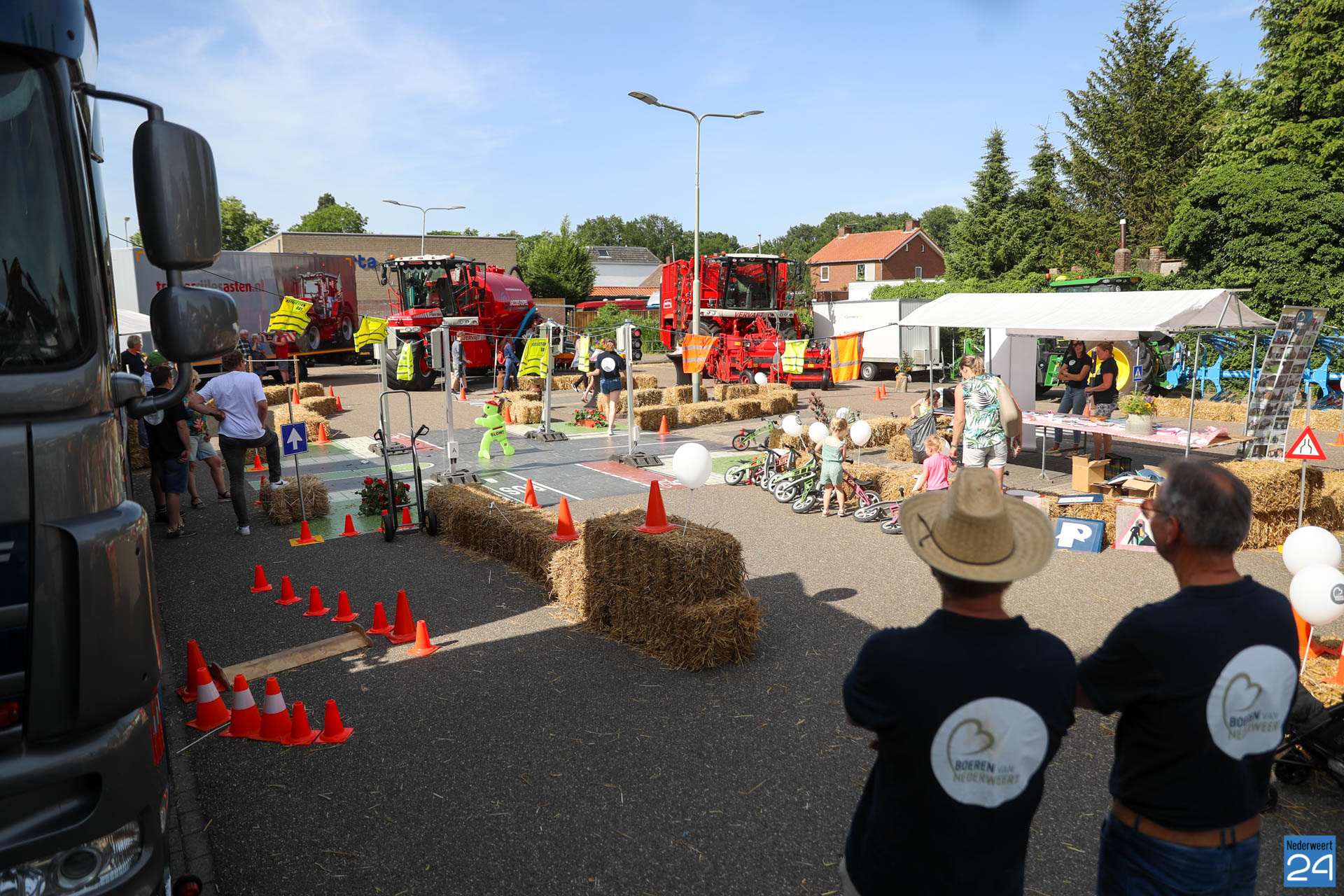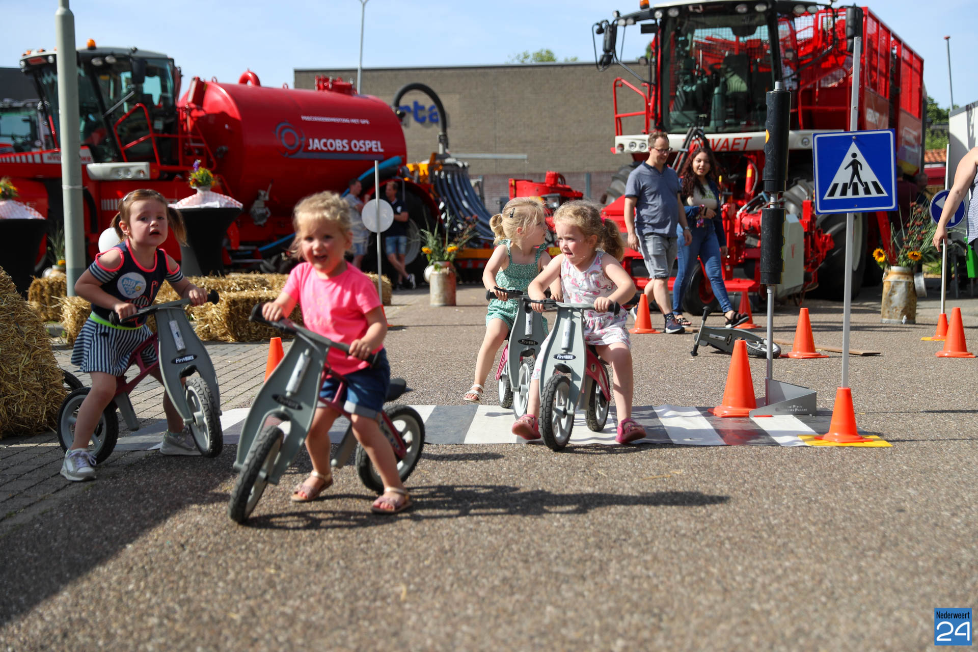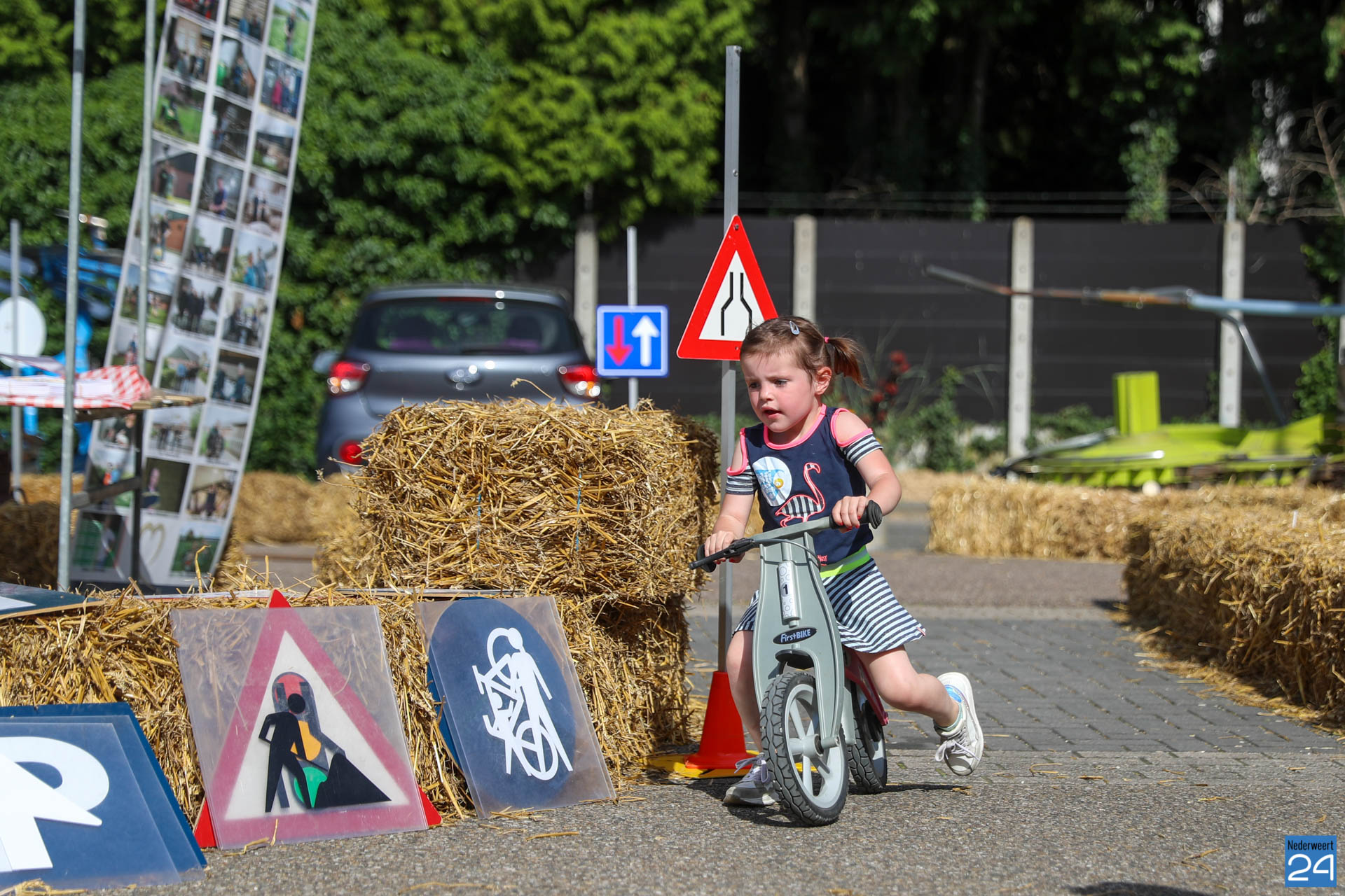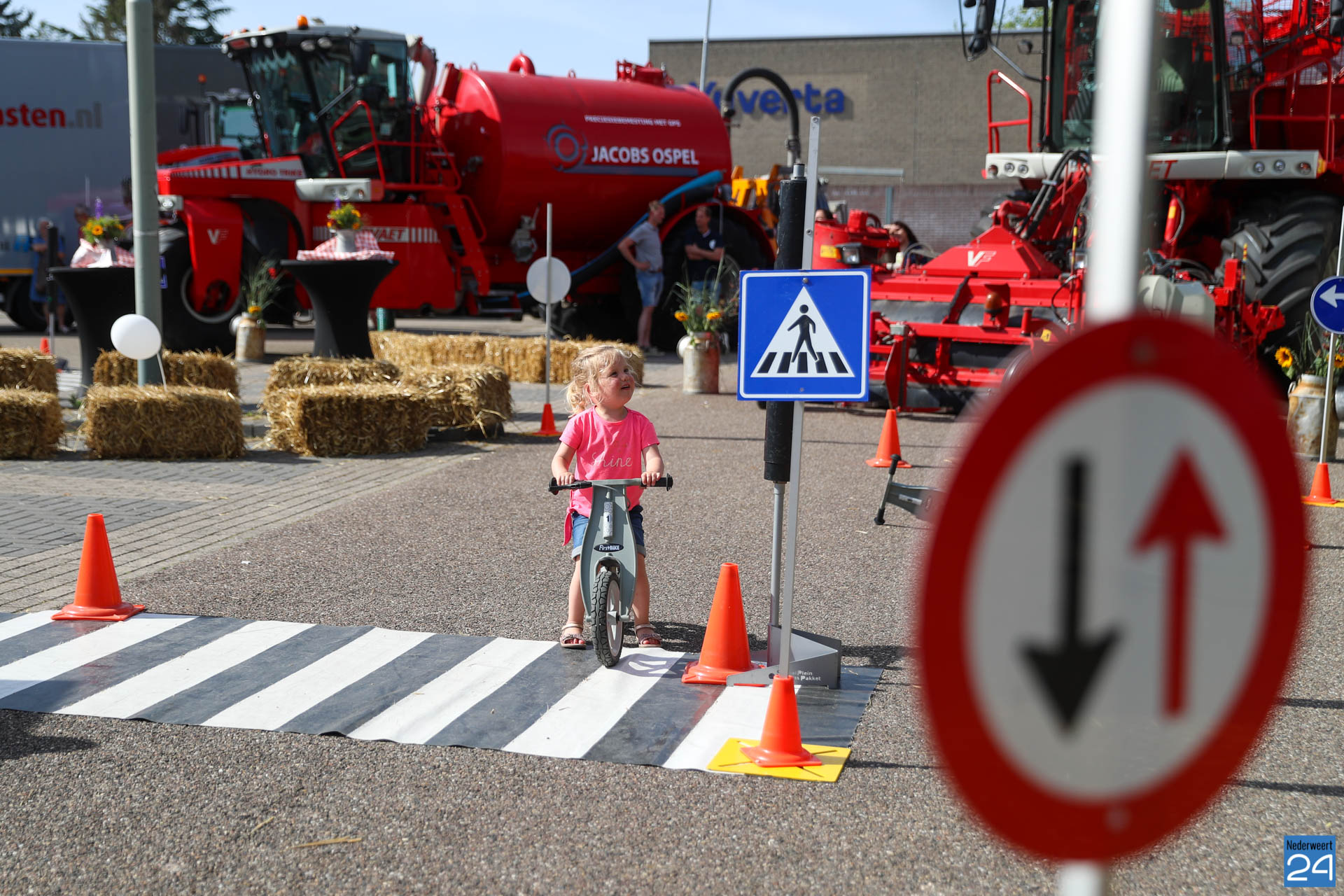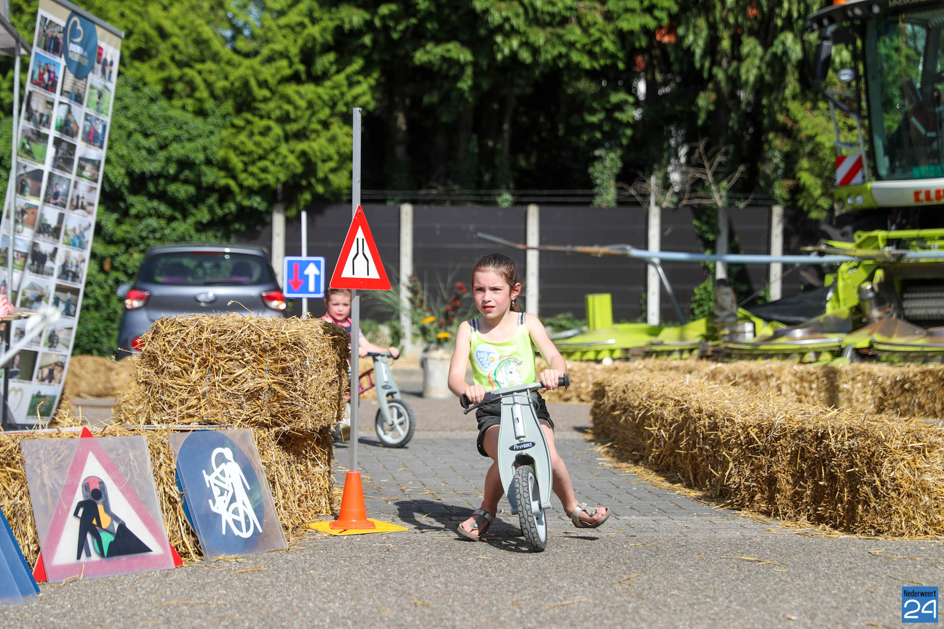 De zomerbraderie in Nederweert beleefde afgelopen vrijdag een primeur. Op initiatief van de vereniging Boeren van Nederweert was het Aldiplein achter ijssalon Florence omgetoverd in een verkeersplein met loopfietsjes, traptractoren en échte verkeerslichten. Langs het parcours van strobalen stonden grote landbouwmachines opgesteld om kinderen spelenderwijs bewust te maken van hun kwetsbaarheid in het verkeer.