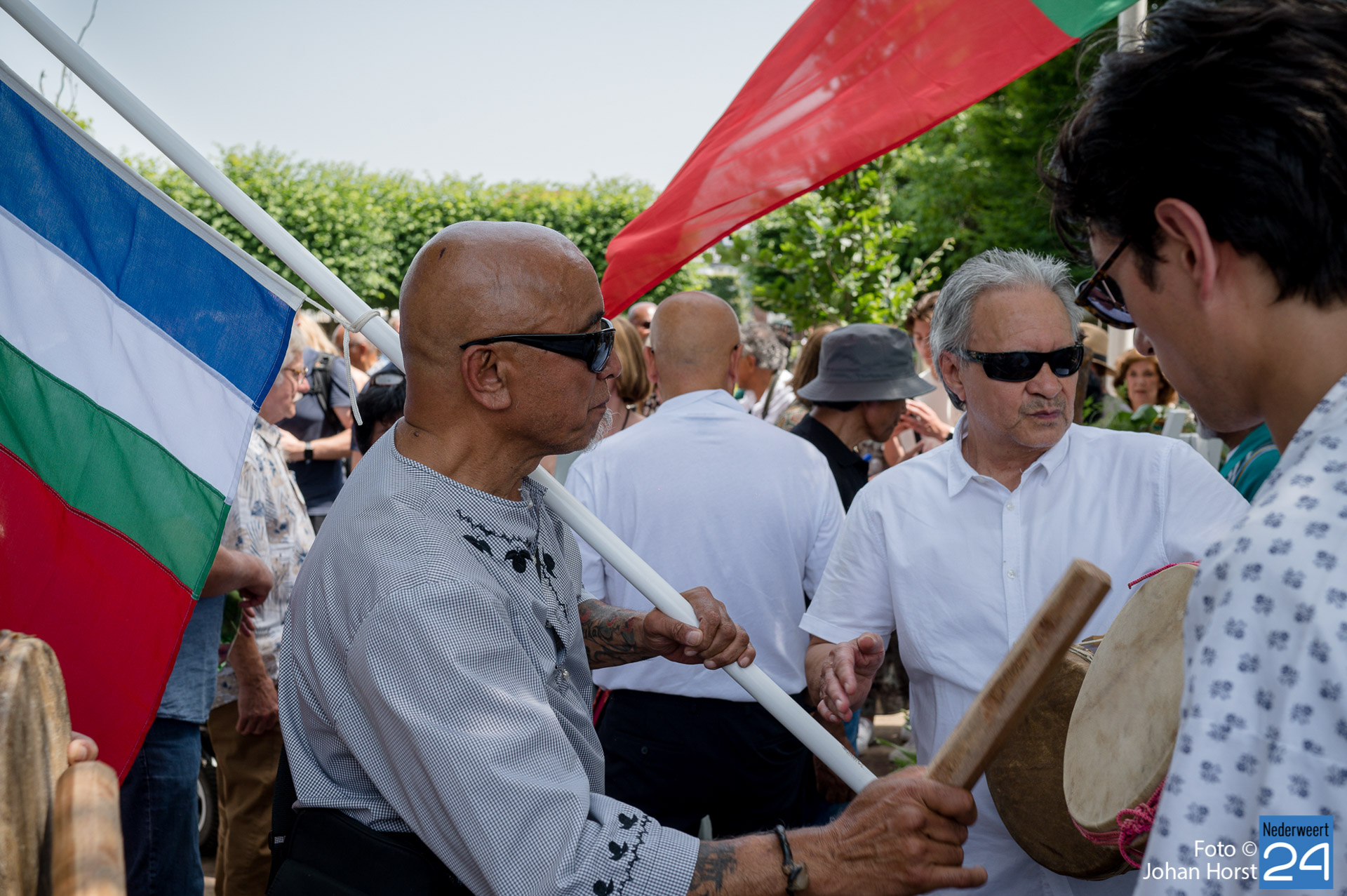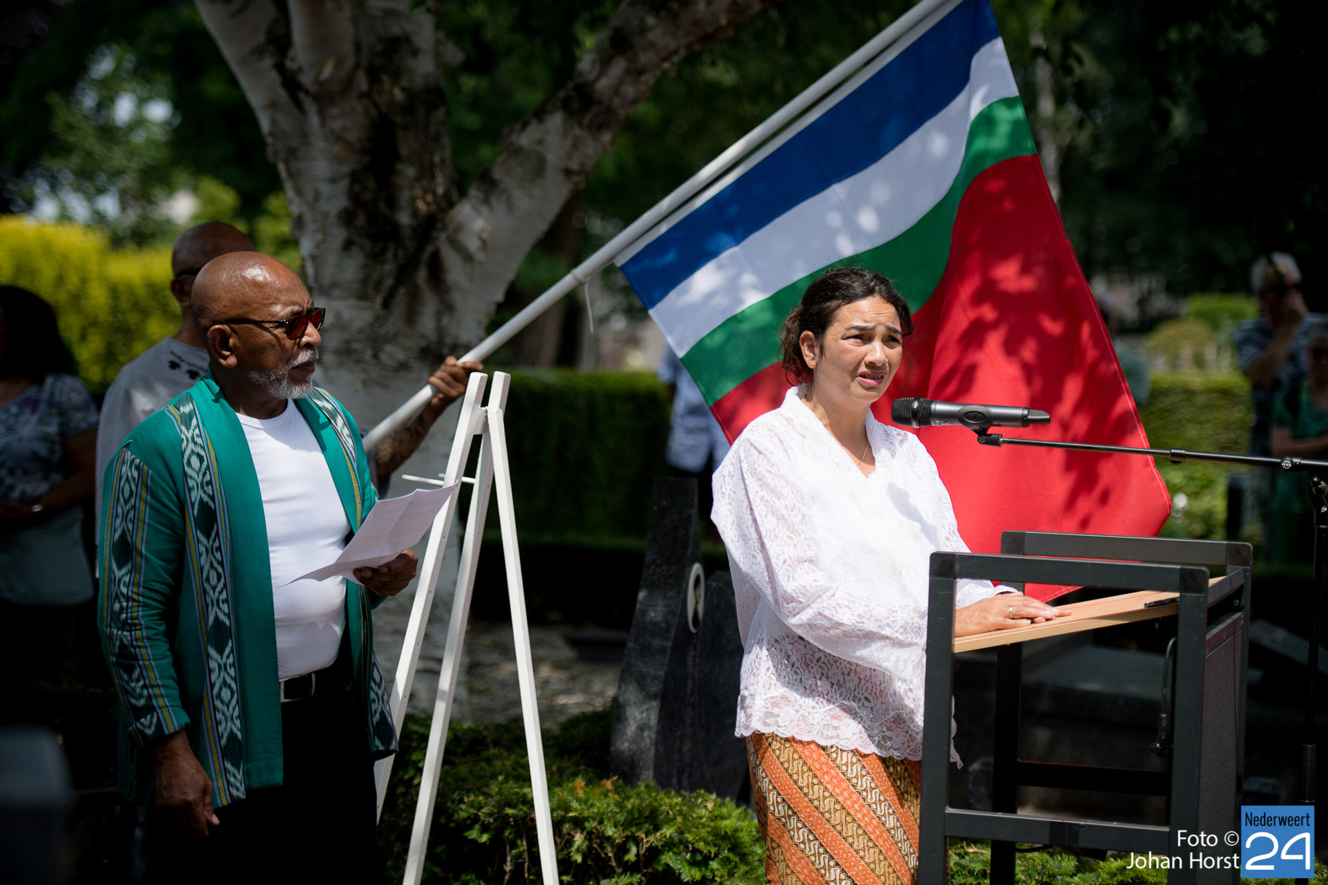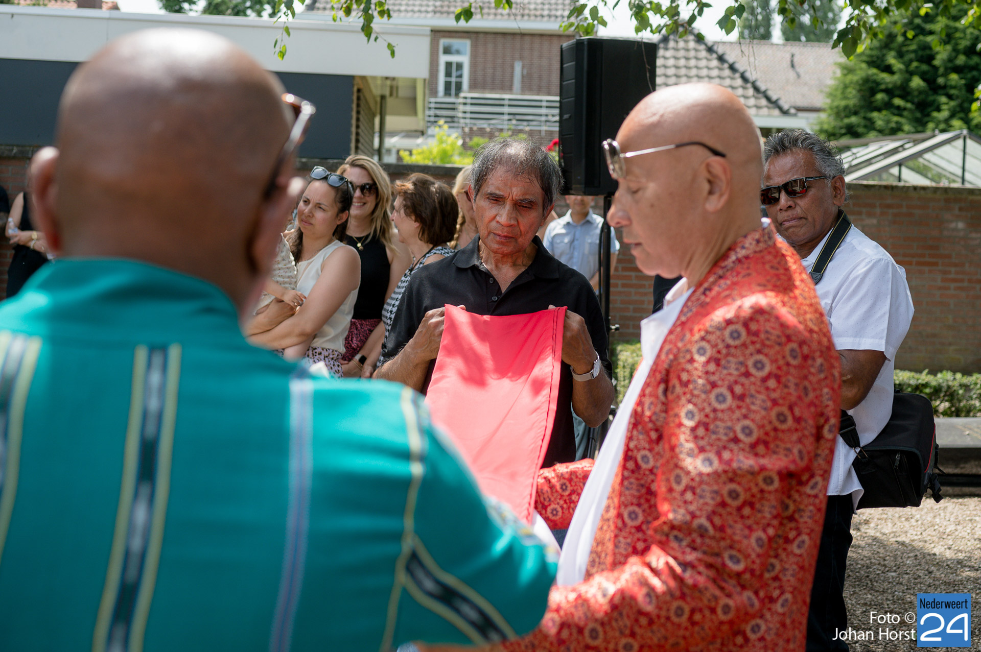 Tot slot werd als symbool één door Ruud Hehanussa ontworpen bootje/prauw, door een kleinkind c.q. achterkleinkind op het graf van haar/zijn grootouders geplaatst. Na afloop van beide plechtigheden was er in café-zaal Jonas op Leuken, voor de genodigden, nog gelegenheid om na te praten onder genot van een drankje”.