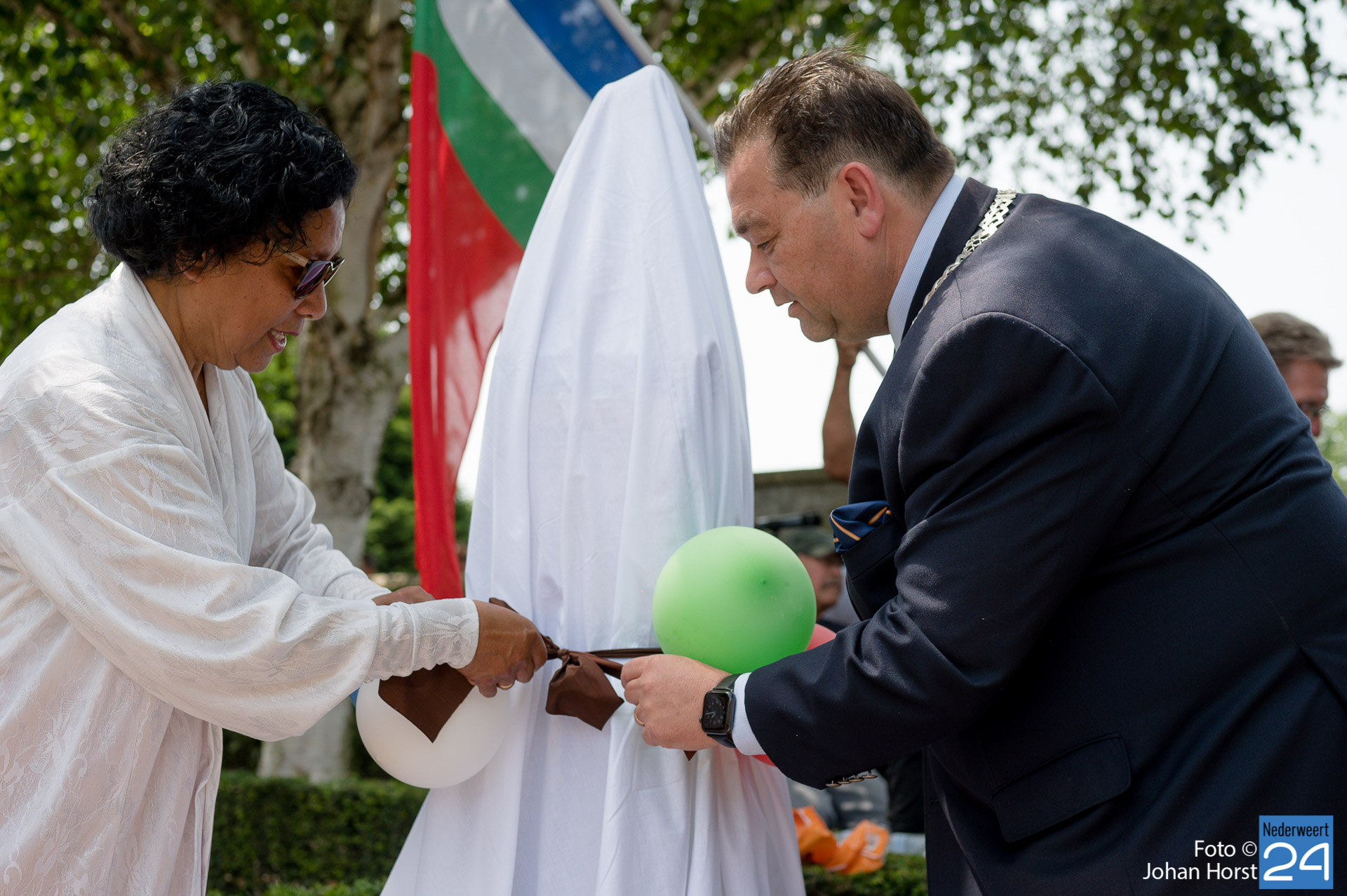 Hoogtepunt van de dag vond door leden van de werkgroep en burgemeester Vlecken de onthulling plaats van het monument ter nagedachtenis aan de overleden Weerter Molukkers. Dankzij subsidie van de Gemeente Weert heeft de Weerter kunstenaar Ruud Hehanussa een beeld gemaakt dat de komst van grote aantallen Molukkers in 1951 symboliseert: vader, moeder, kinderen en koffers. Tijdens deze plechtige onthulling waren er enkele toespraken en voordrachten en er werd een krans gelegd door twee kleinkinderen. Tevens werd er drie keer op de ‘Tahuri’ geblazen, een traditioneel Moluks blaasinstrument, gemaakt van schaaldieren.