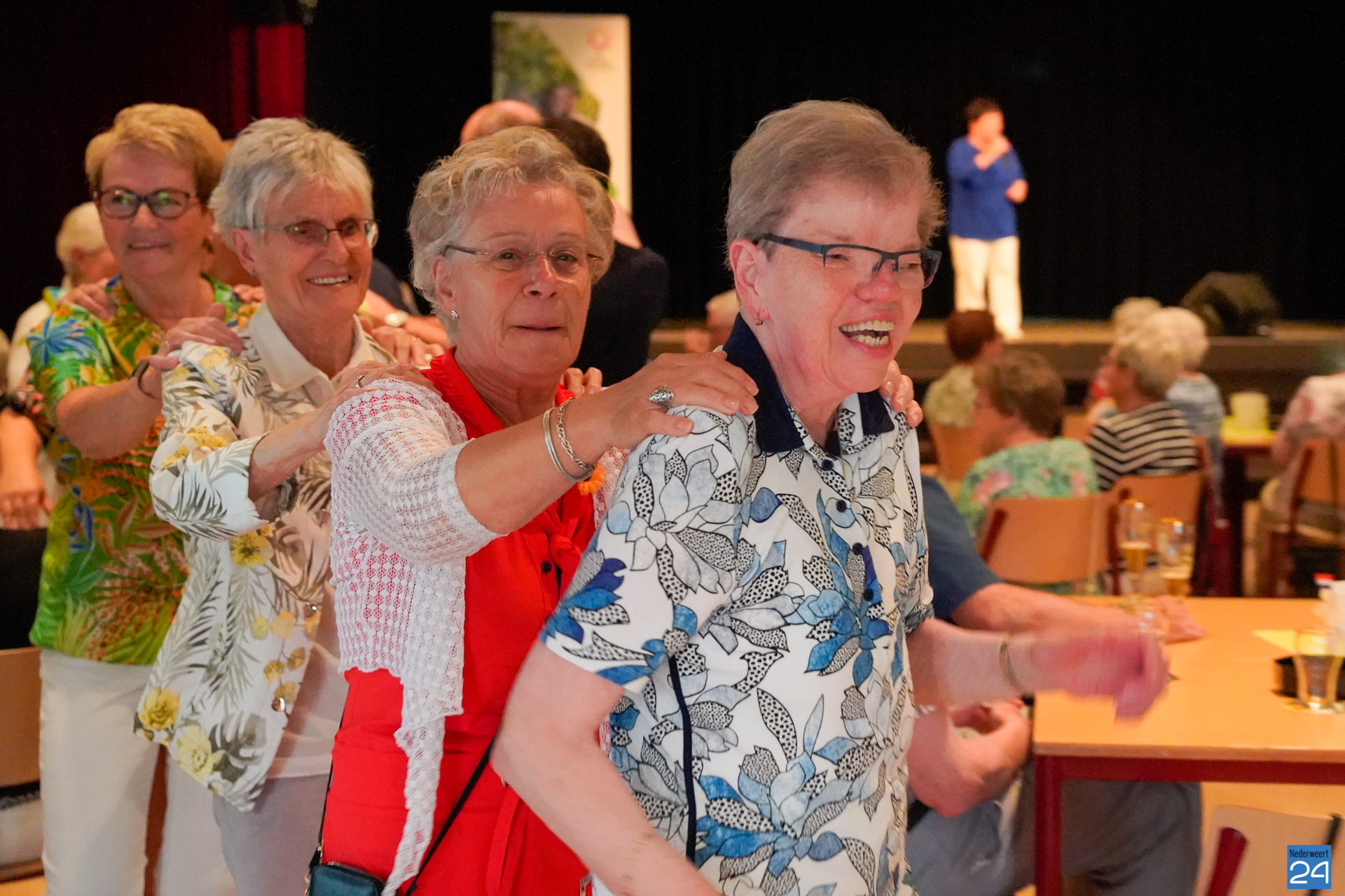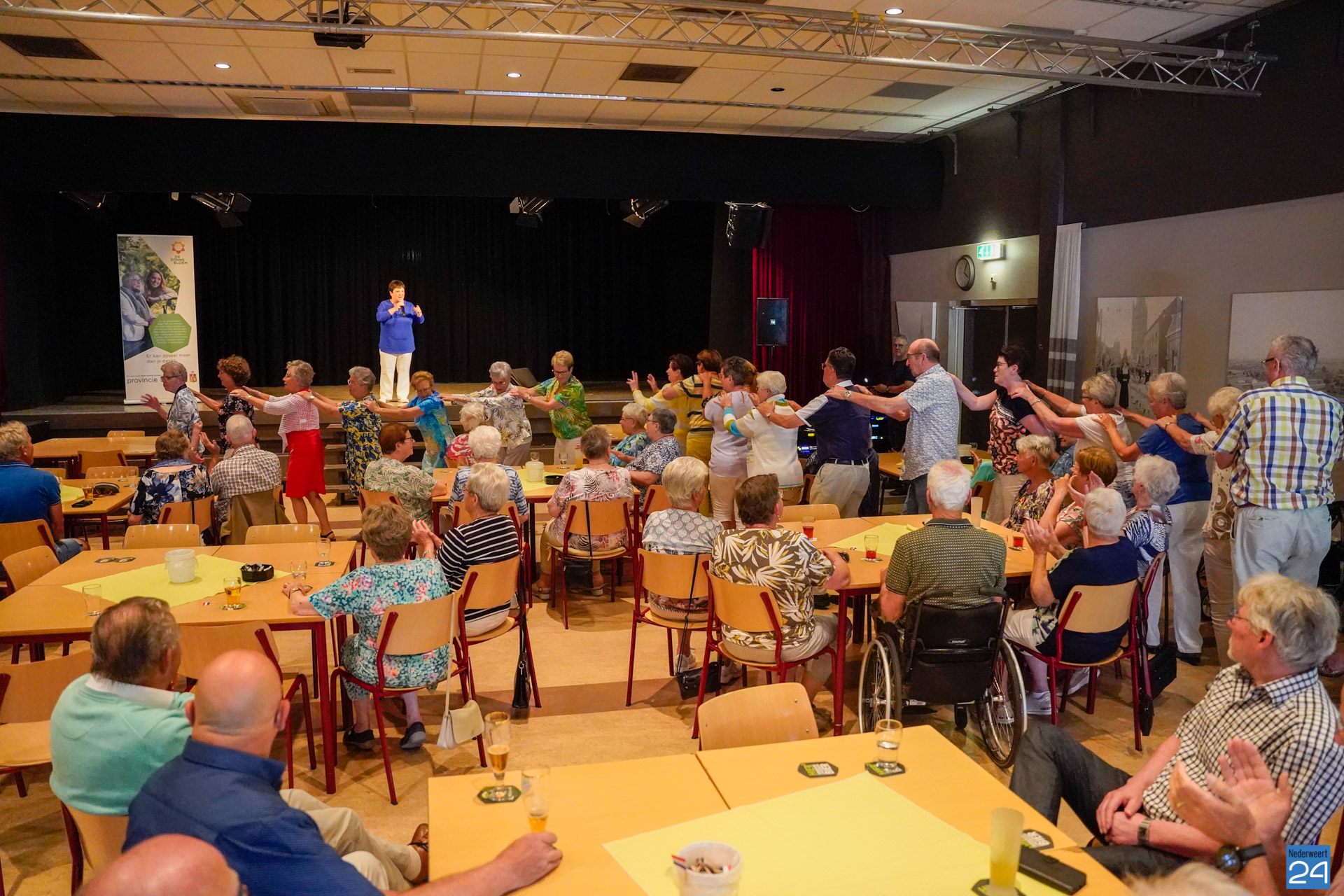 Ronald Pijls, Martin Hurken en Beppie Kraft zorgden woensdagmiddag voor een flinke dosis gezelligheid in de grote zaal van De Pinnenhof in Nederweert.