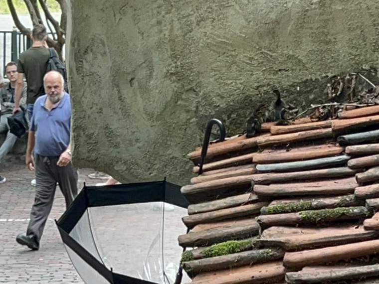 Moeder eend stond beneden met een aantal jongen en vier jongen zaten nog op het dak. In eerste instantie klom Joost in een boom naast het dak, maar daardoor gingen de eendjes de andere kant op. ”Uiteindelijk heb ik mijn kinderen, vrouw en schoonzus erbij gehaald.” Met behulp van een paraplu van een bezoeker en een baseballcap van tante Leonie én de hulp van Jurre (10 jaar) en Nova (sinds vandaag 8 jaar), zijn de eendjes, onder applaus van toeschouwers, bij de moeder teruggebracht.