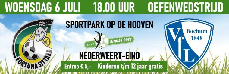 Op zaterdag 2 juli speelt Fortuna Sittard om 14.00 uur tegen Viktoria Köln uit de derde Bundesliga. De wedstrijd wordt gepeeld op Sportpark op de Hooven bij Eindse Boys in Nederweert-Eind, dit in het kader van de voorbereiding op de competitie.
