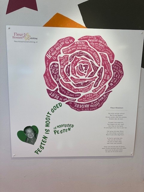 De school hoopt dat dit bord preventief werkt, dat het openingen en ondersteuning biedt tot gesprek. Het onderwerp is pesten, maar ook het omzien naar elkaar. Op het bord is een foto van Fleur te zien en de roos was haar lievelingsbloem. Het bord is gesponsord door Imbri International.