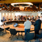 Vanwege verbouwing in het kader van de verduurzaming van het gemeentehuis zijn ook de vergaderzalen in het bestuursgedeelte weer helemaal bij de tijd gebracht. In het bijzijn van de gemeenteraad is de heringerichte raadzaal op vrijdag 1 juli opnieuw in gebruik genomen.
