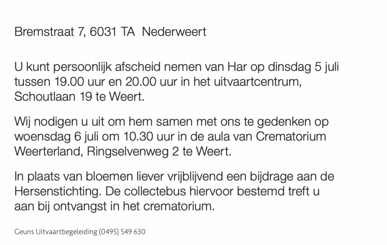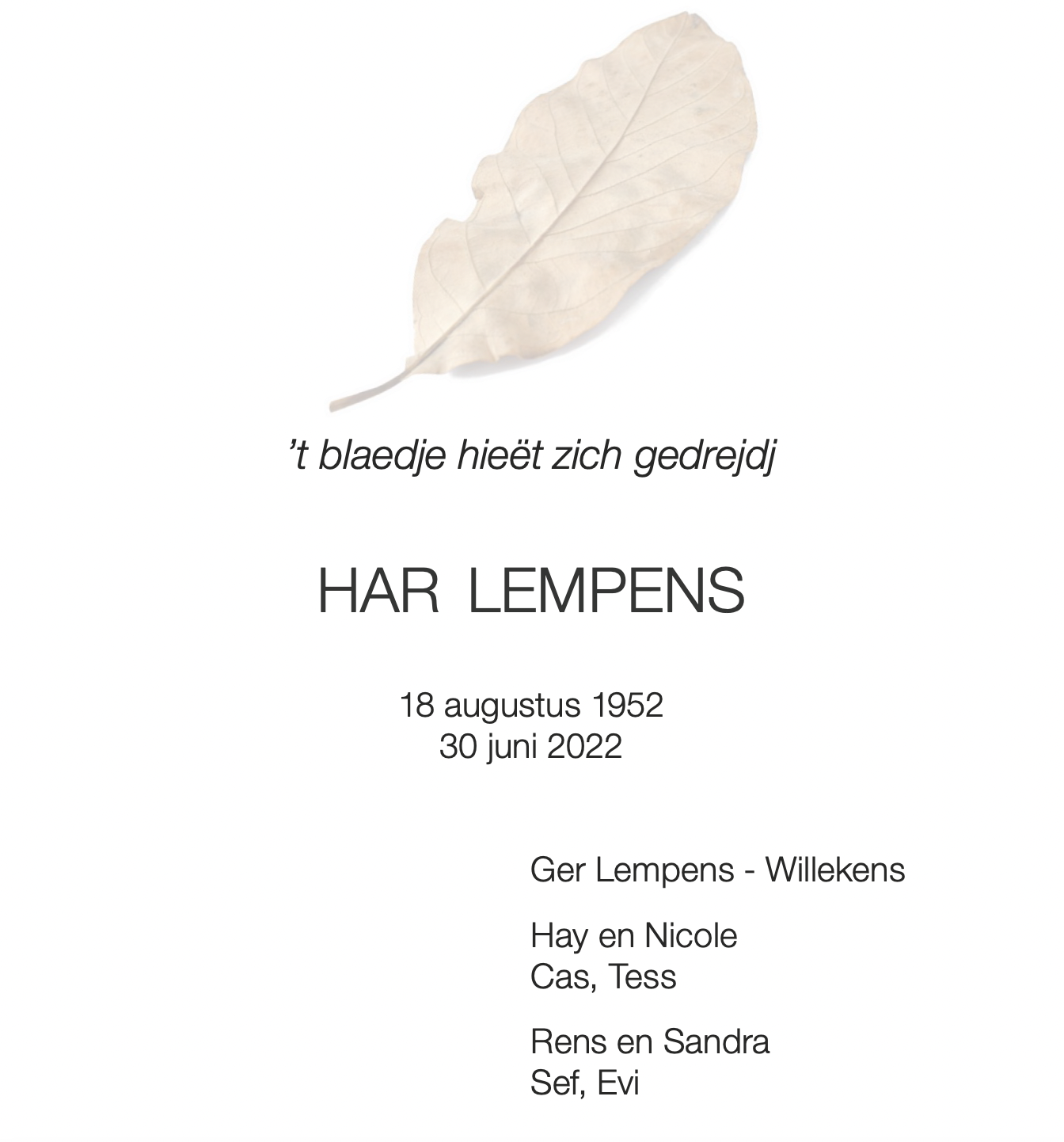 Gecondoleerd met het overlijden van Har. Heel veel sterkte samen.
