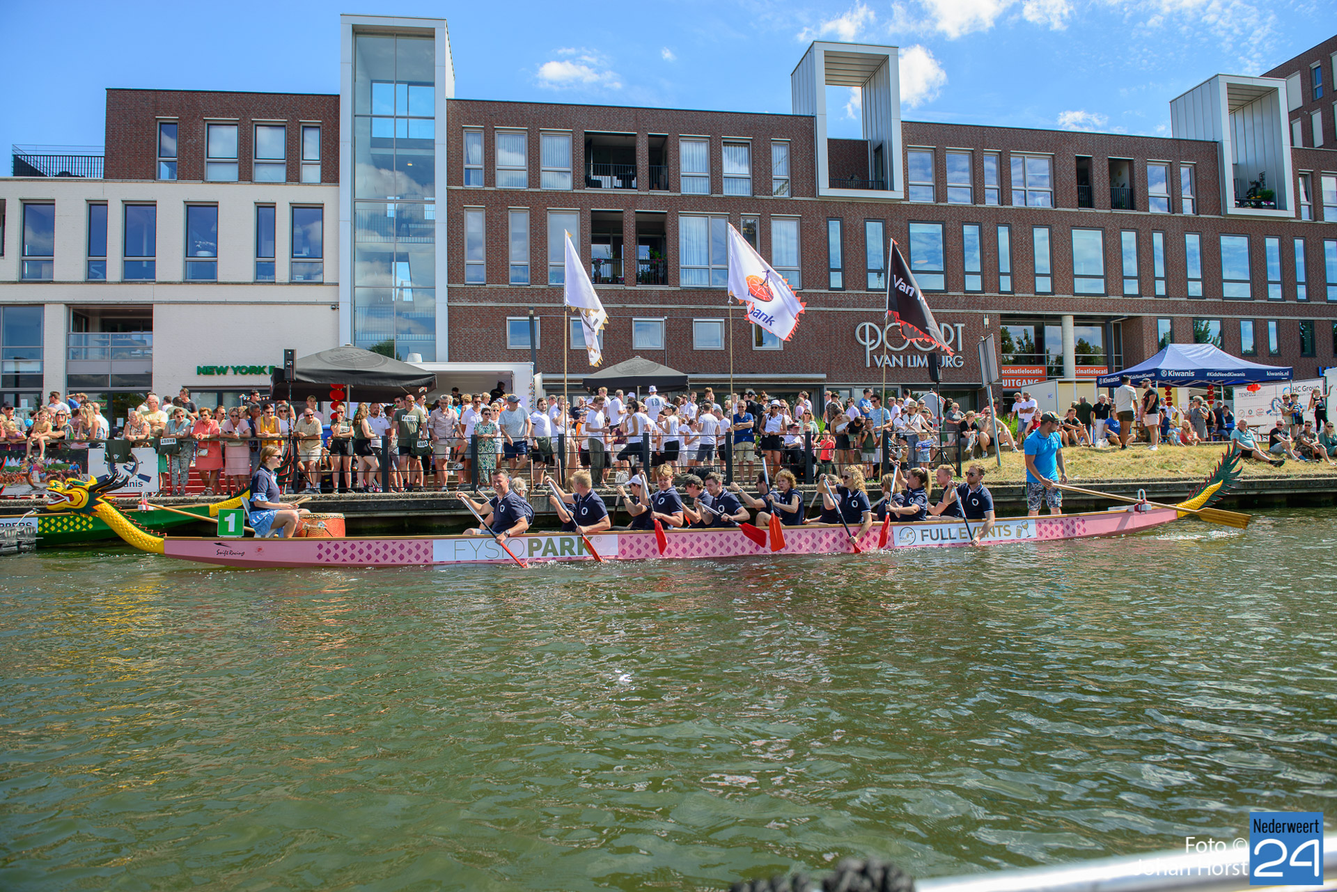 Een spetterend feestje, dat was het gisteren zeker in Weert. Kiwanis Drakenboot Festival werd namelijk weer georganiseerd.