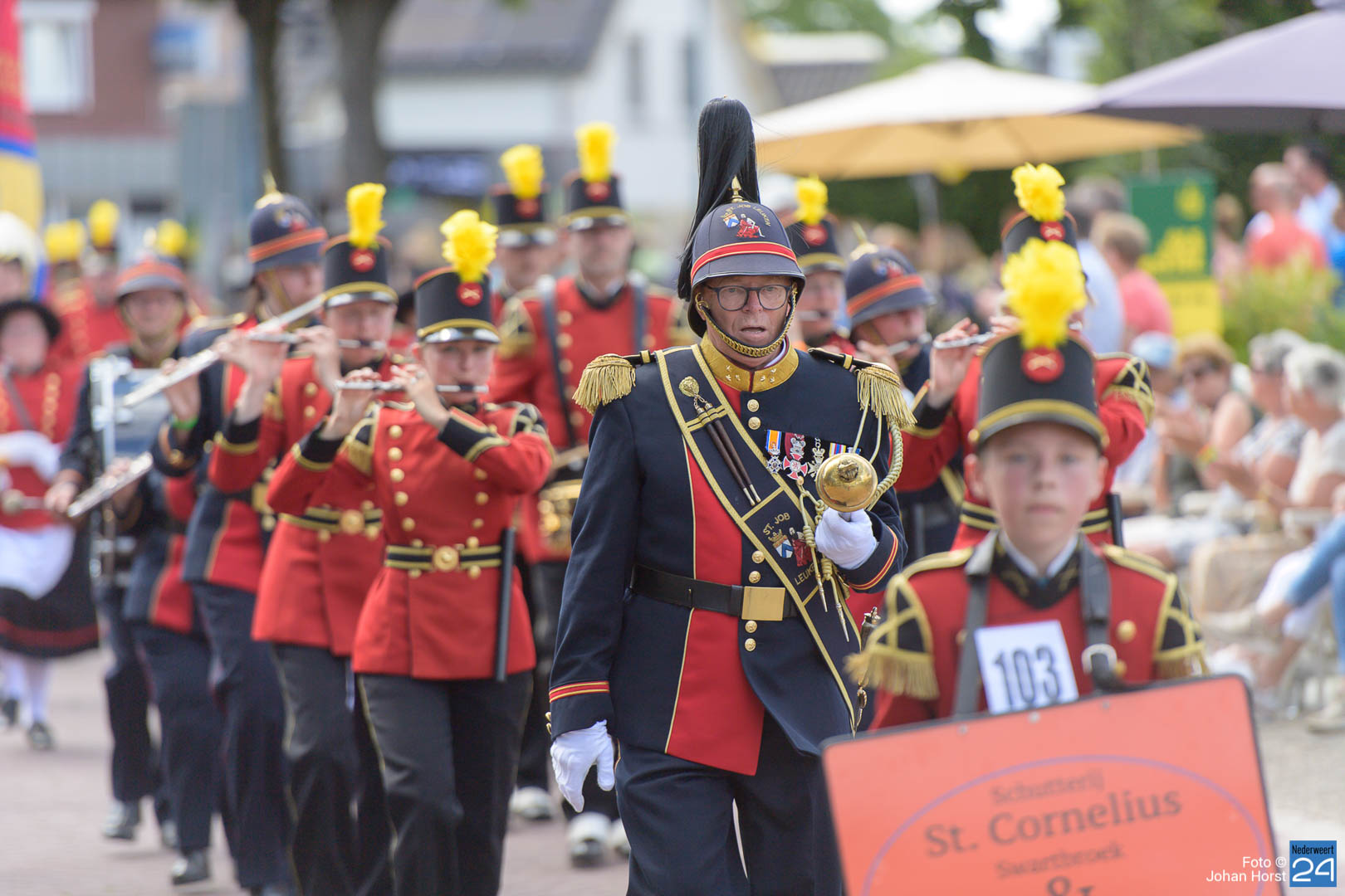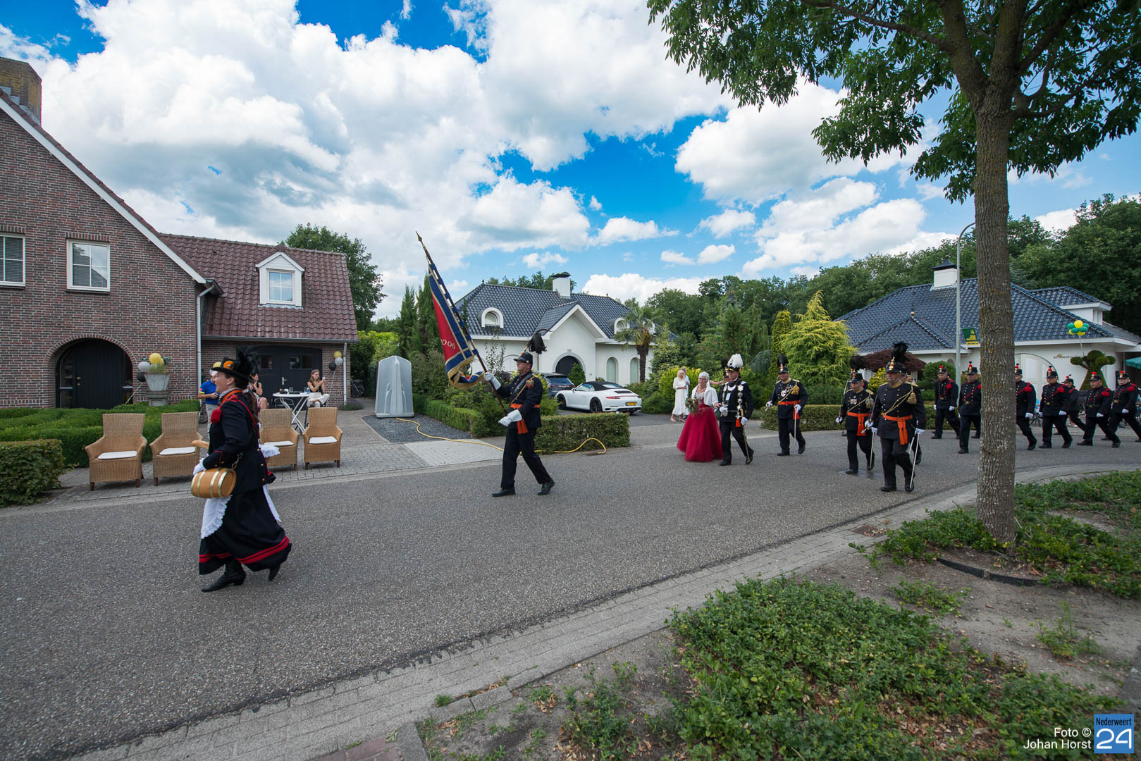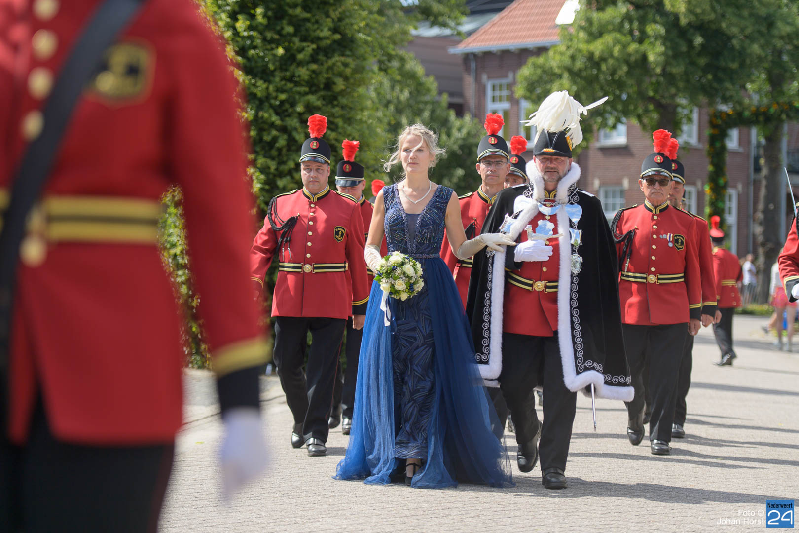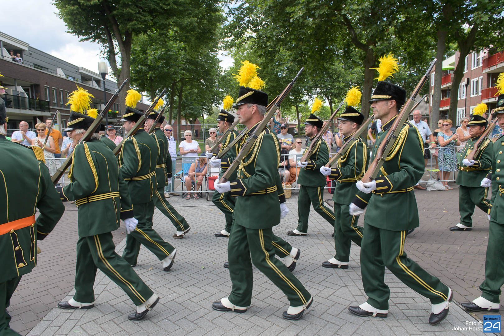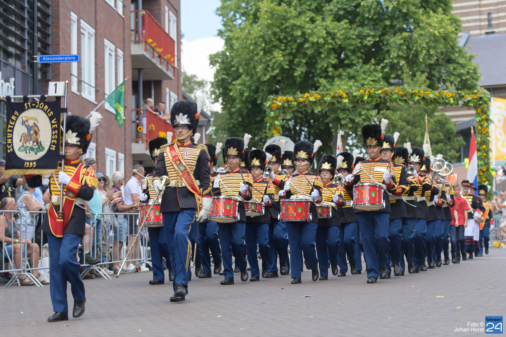 De schutterijen droegen hun militaire outfit, gilde-uniformen of fantasiekostuums. Allen met bordjesdrager, bielemannen of sappeurs, tambourmaître met drumband, marketentsters, het schutterijvaandel met daarachter de koning met zijn koningin, eventueel een keizerspaar, dan de officieren en tenslotte de geweerdragers (soldaten of fuseliers).